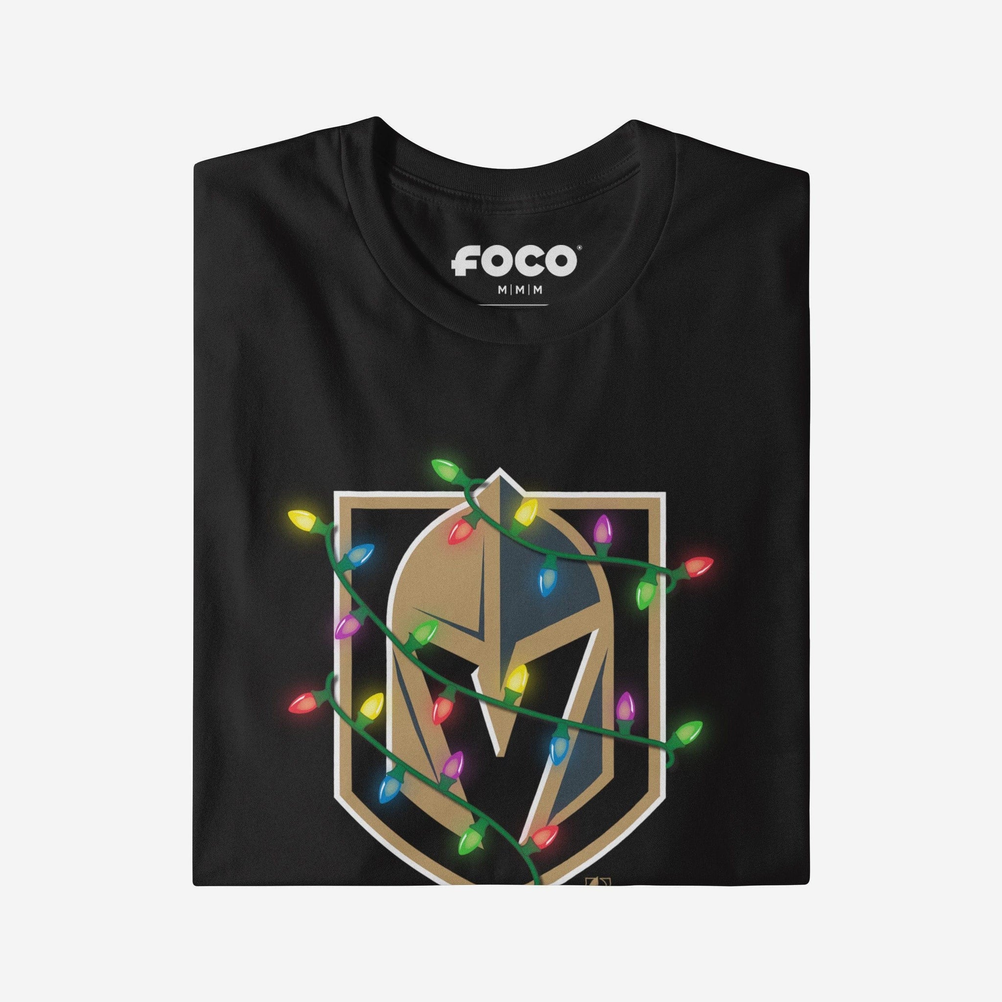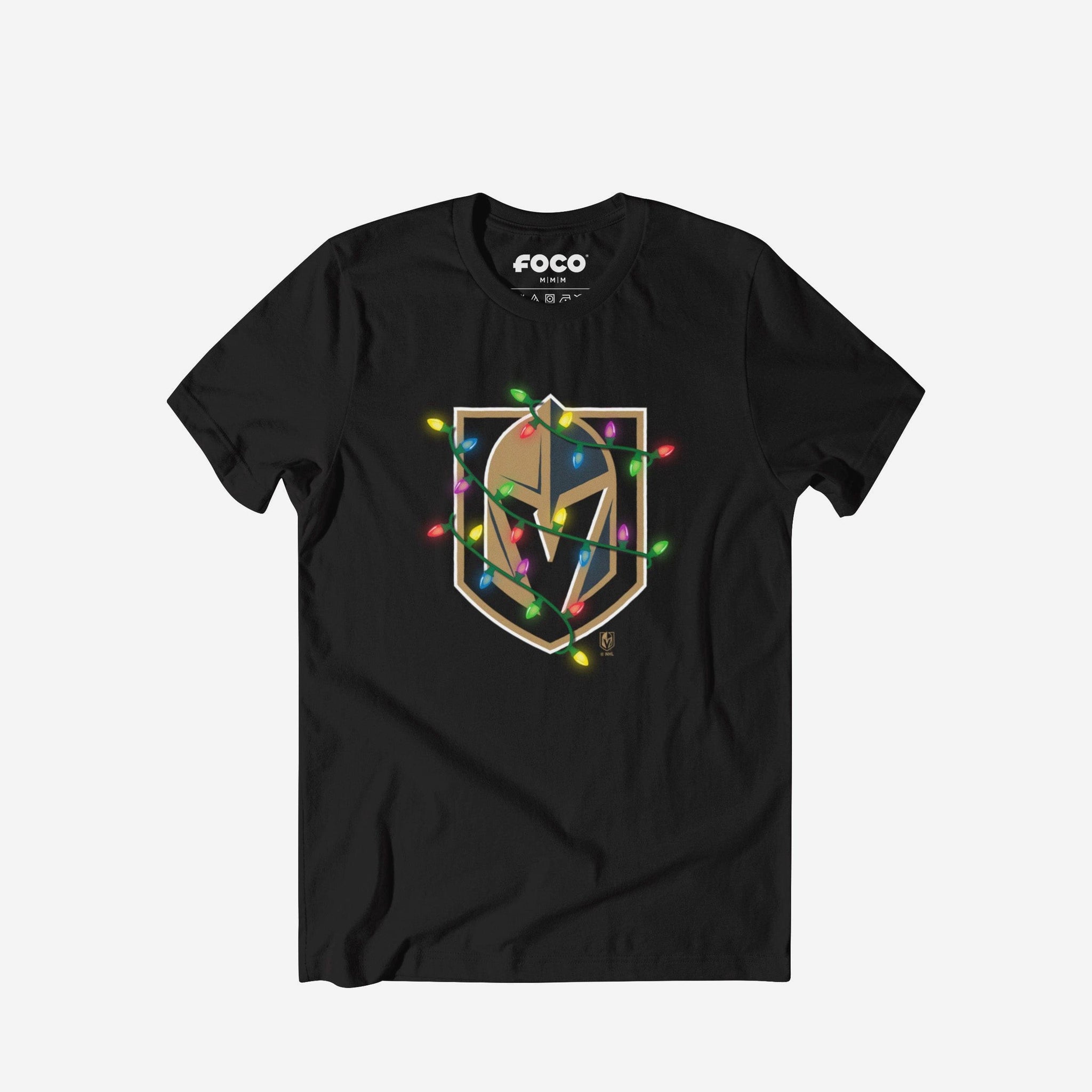 Vegas Golden Knights Primary Logo Holiday Lights T-Shirt FOCO S - FOCO.com