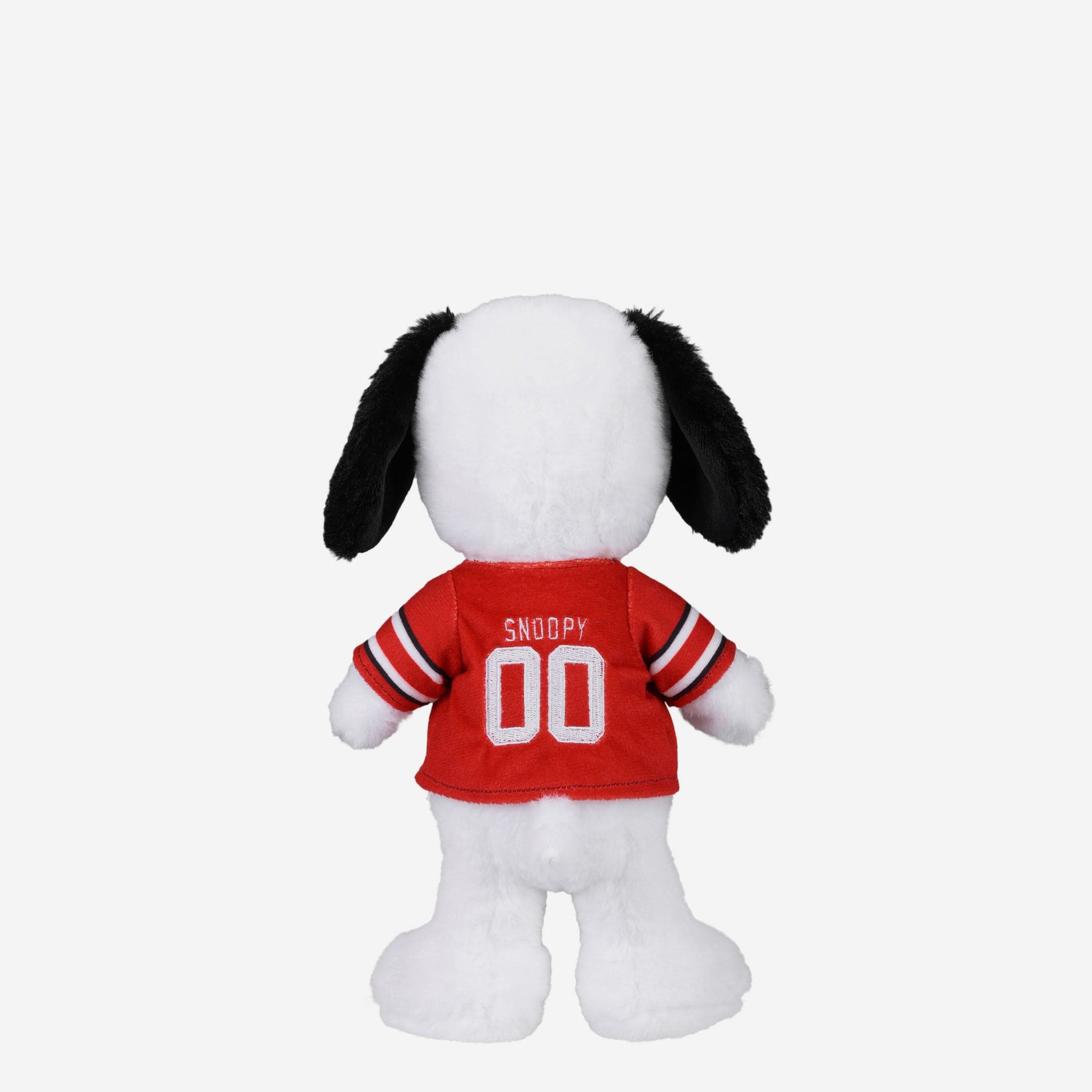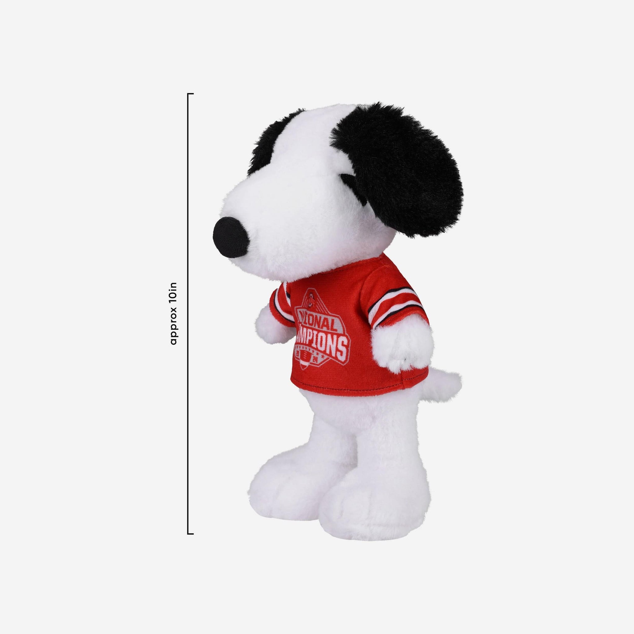 - Plush Snoopy sporting a jersey with a commemorative championship logo display