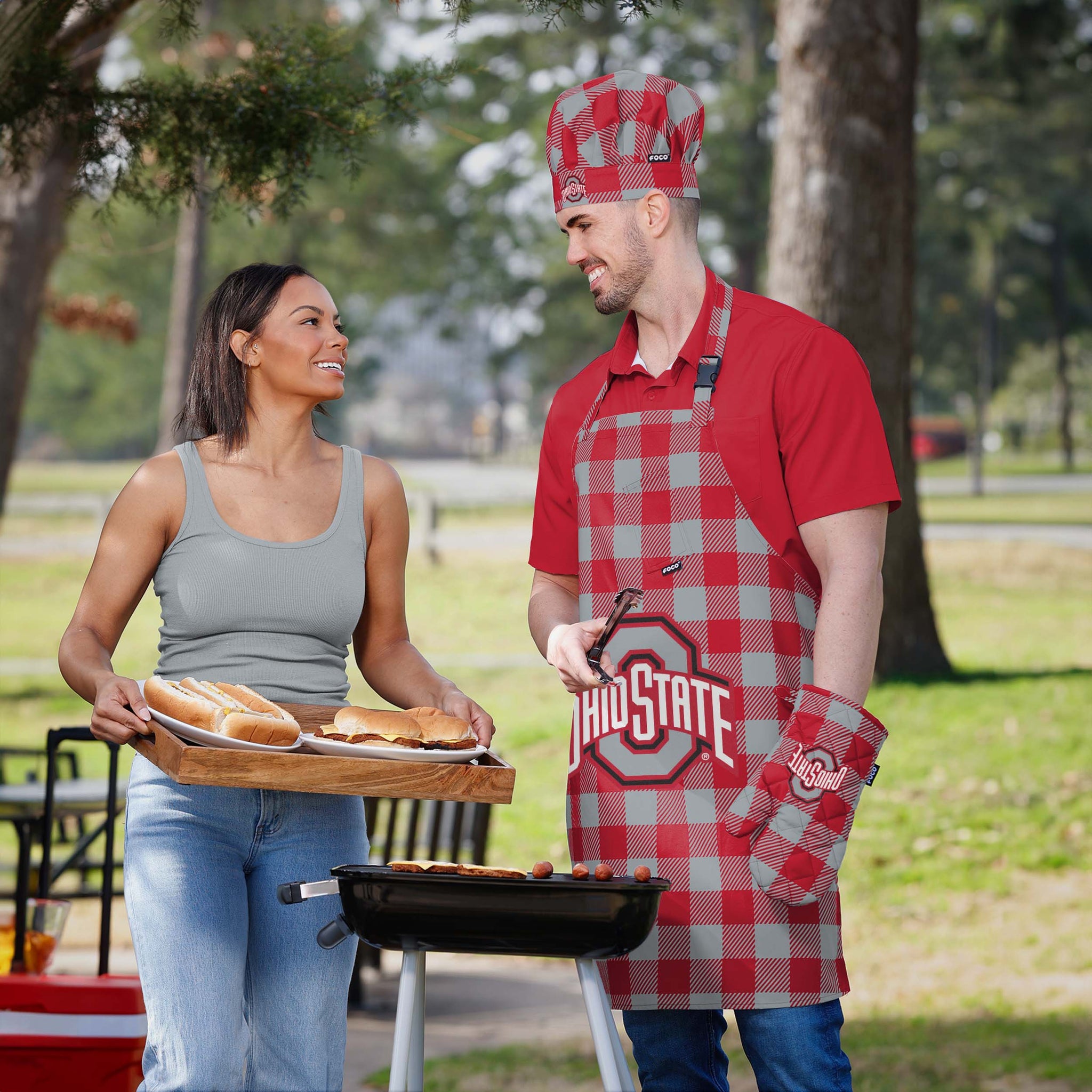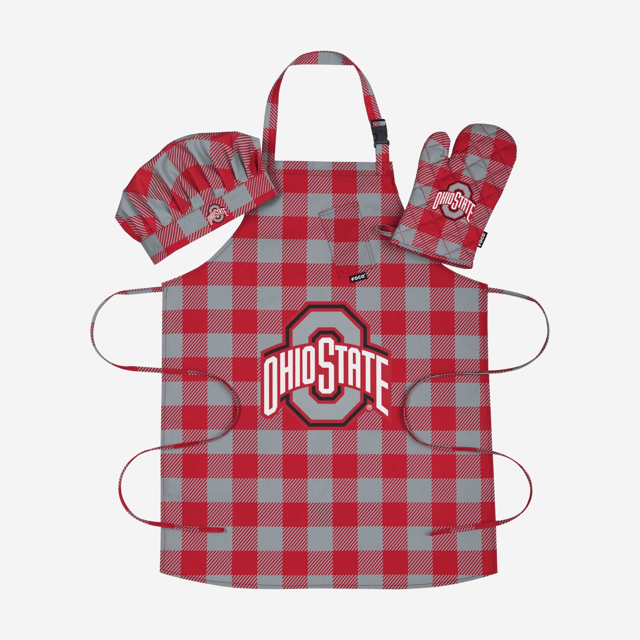 Get ready to serve up the best food in the greatest fan fit. From the kitchen, to the table, to game day, do it all in style with the Ohio State Buckeyes Plaid Chef Set.