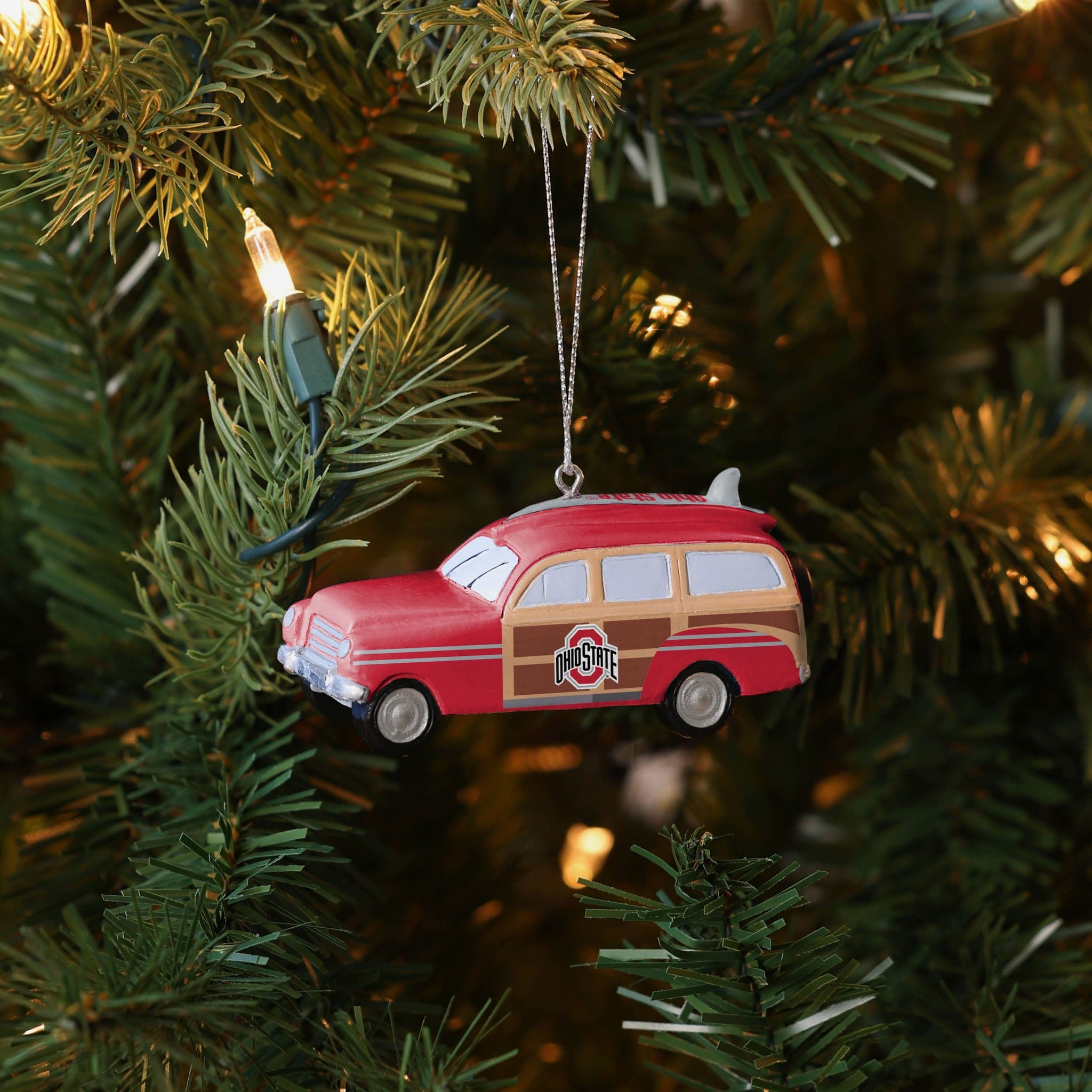 WARNING! Laying eyes on this Ohio State Buckeyes Station Wagon Ornament on your tree may result in an uncontrollable desire to embark on a road trip down the coast.