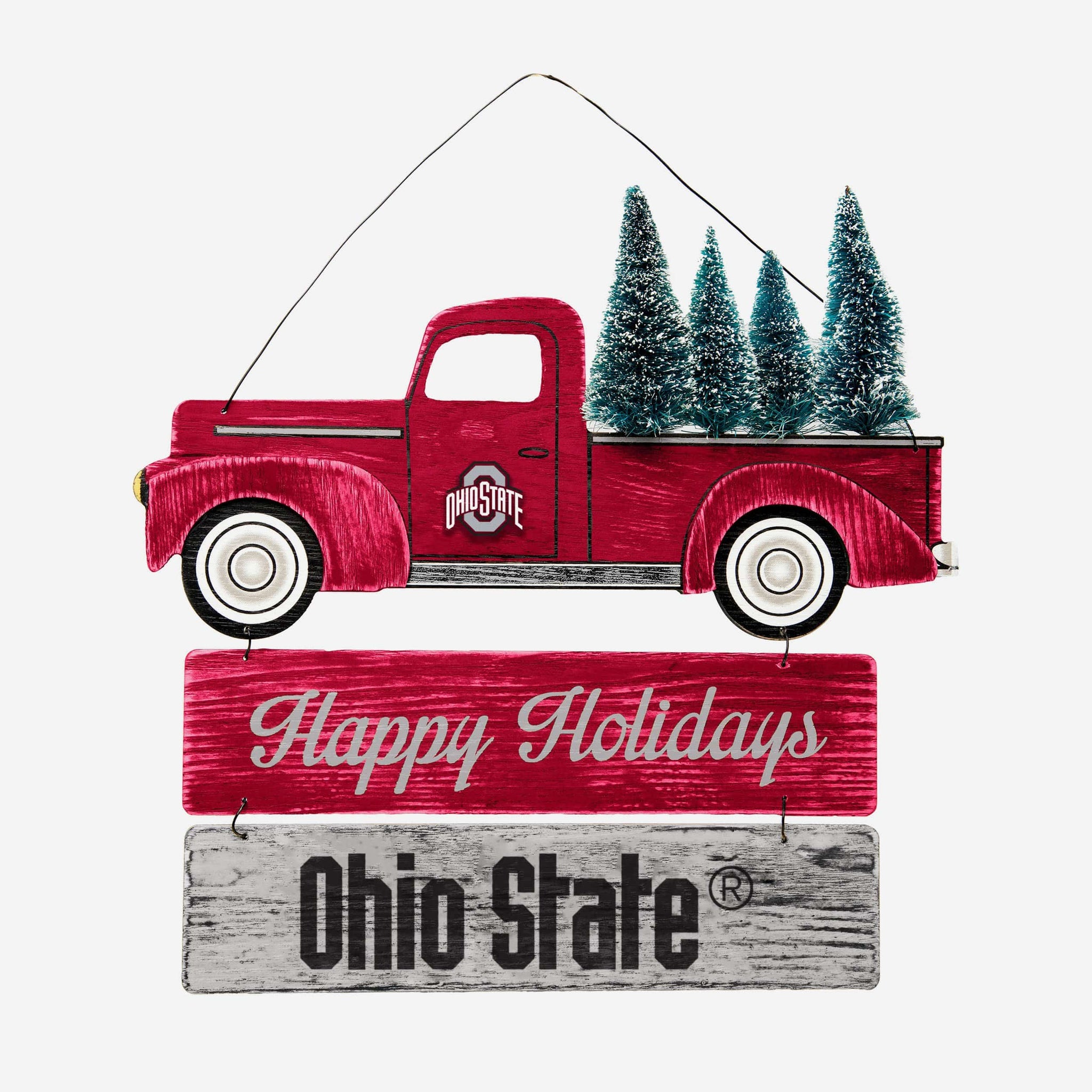 Make sure you've got the most festive fancave around this season by hanging up this Ohio State Buckeyes Wooden Truck with Tree Sign. It's perfect if you're having friends over to watch the game, or family over for the annual holiday party.