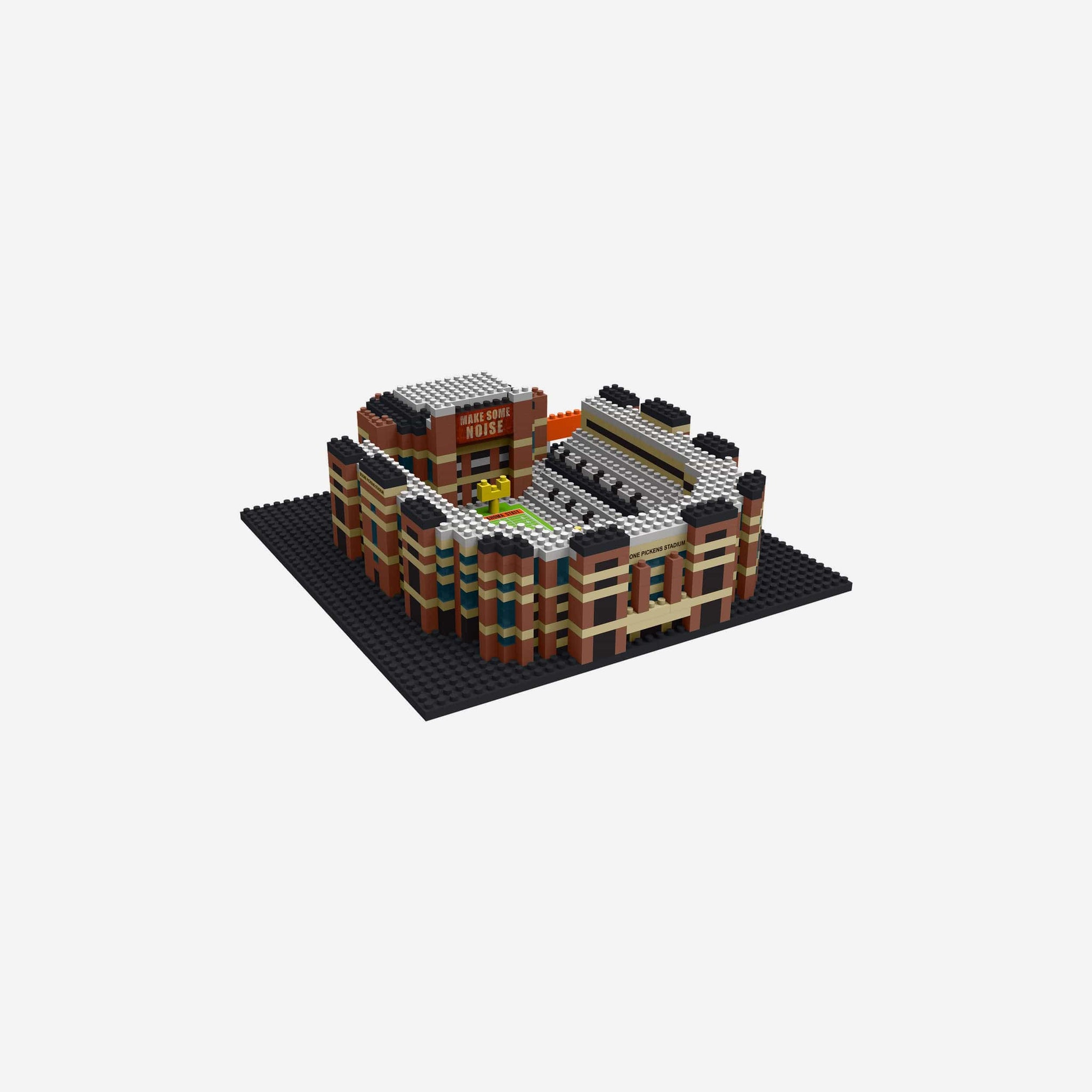 - Construction toy that assembles into miniature replica stadium that will be the centerpiece of your collection