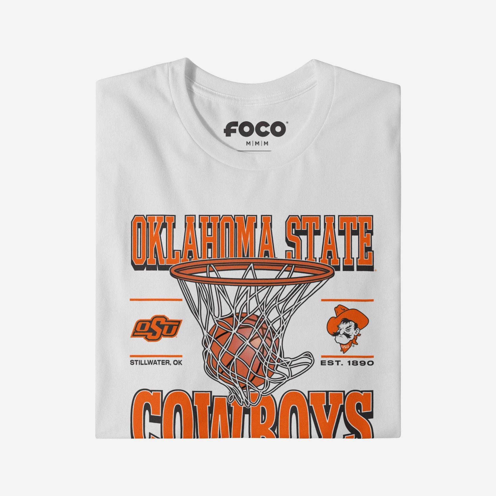 This top features a design that showcases your all-important team colors, a team logo display, a team wordmark name display, year of team establishment, and a basketball swishing through a net display meaning this t-shirt will prove your unmatched dedication to the Oklahoma State Cowboys when you're at the game or watching at home. In other words, this graphic tee is about to be your new favorite teammate.