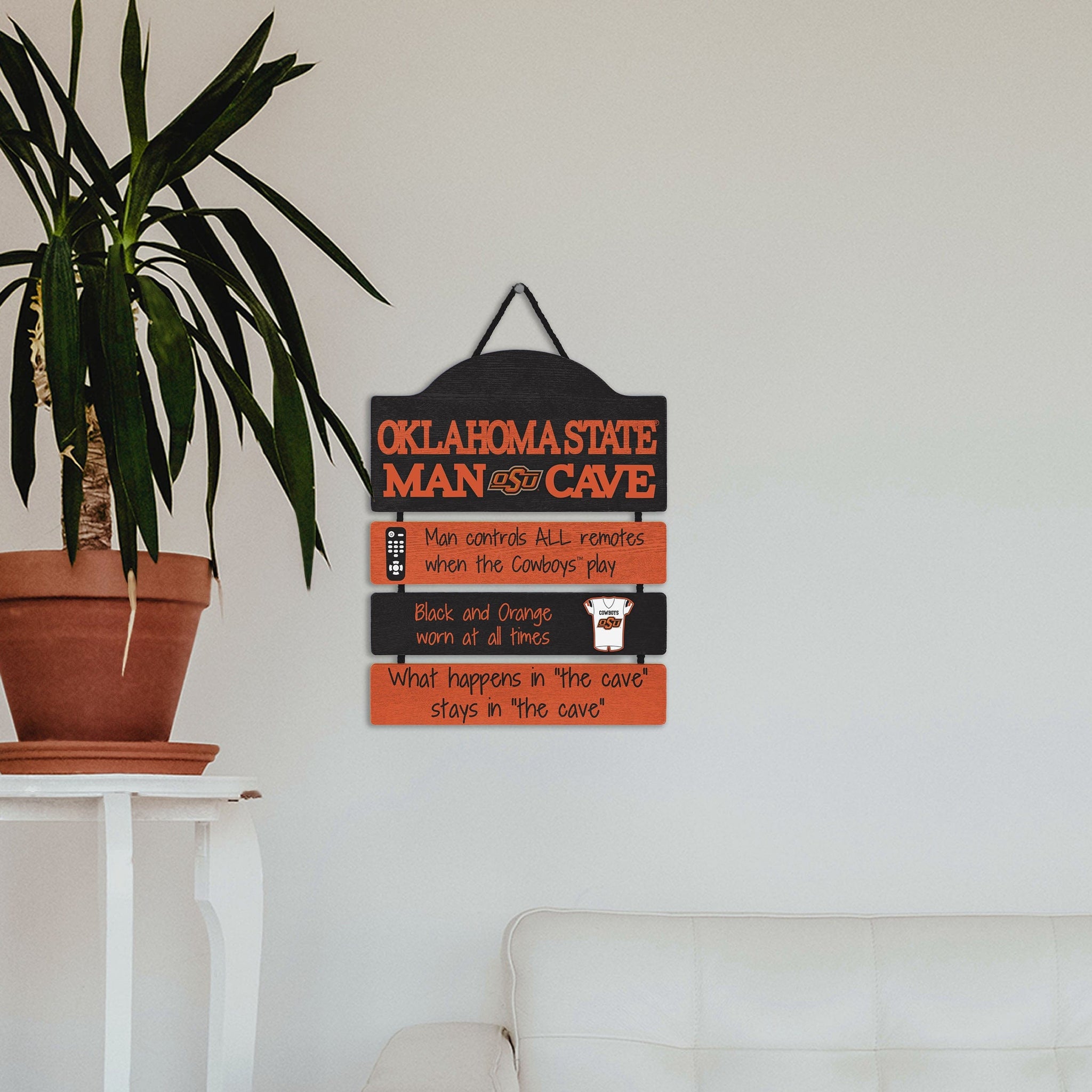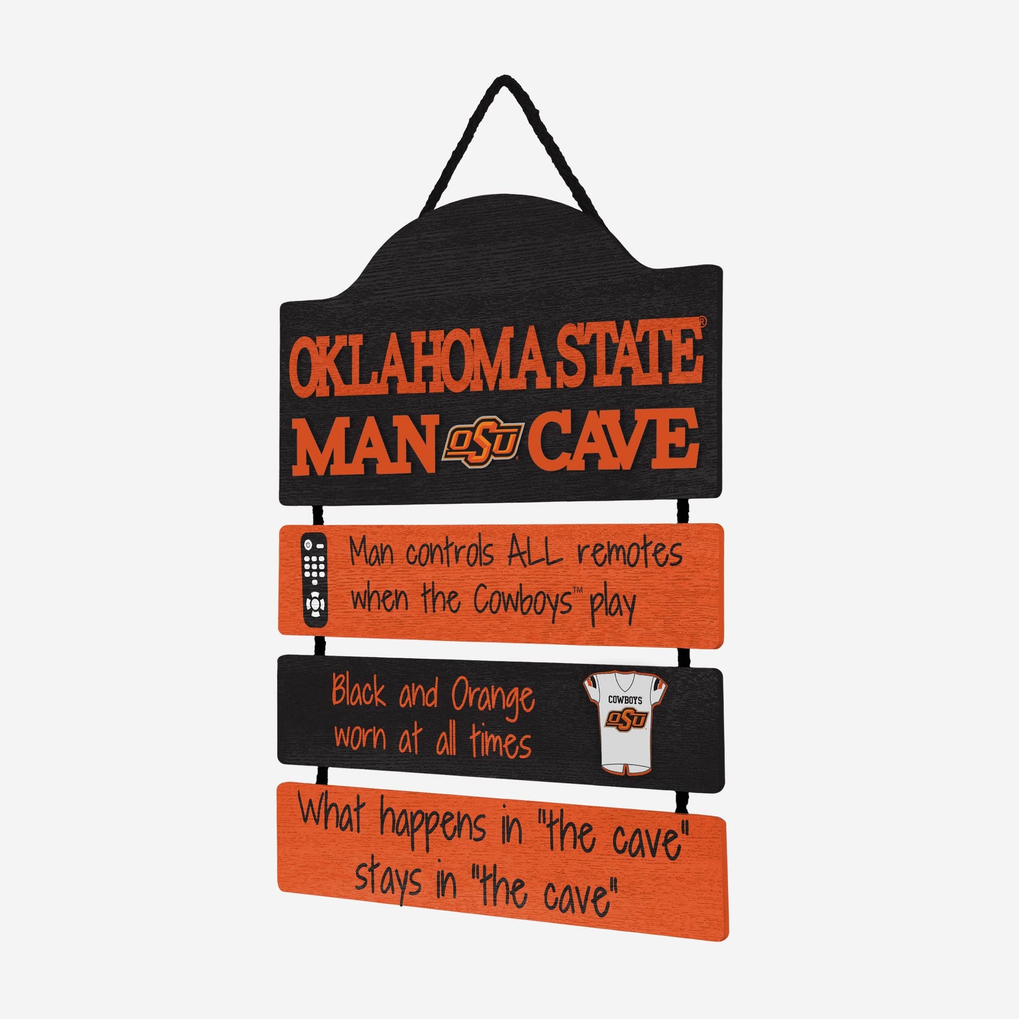 So, you're hosting the big watch party, and want to make sure you've decorated enough to impress your fellow fans. We've got you covered. This Oklahoma State Cowboys Mancave Sign lets everyone know who the fan in charge is, and gives your home field plenty of advantage.