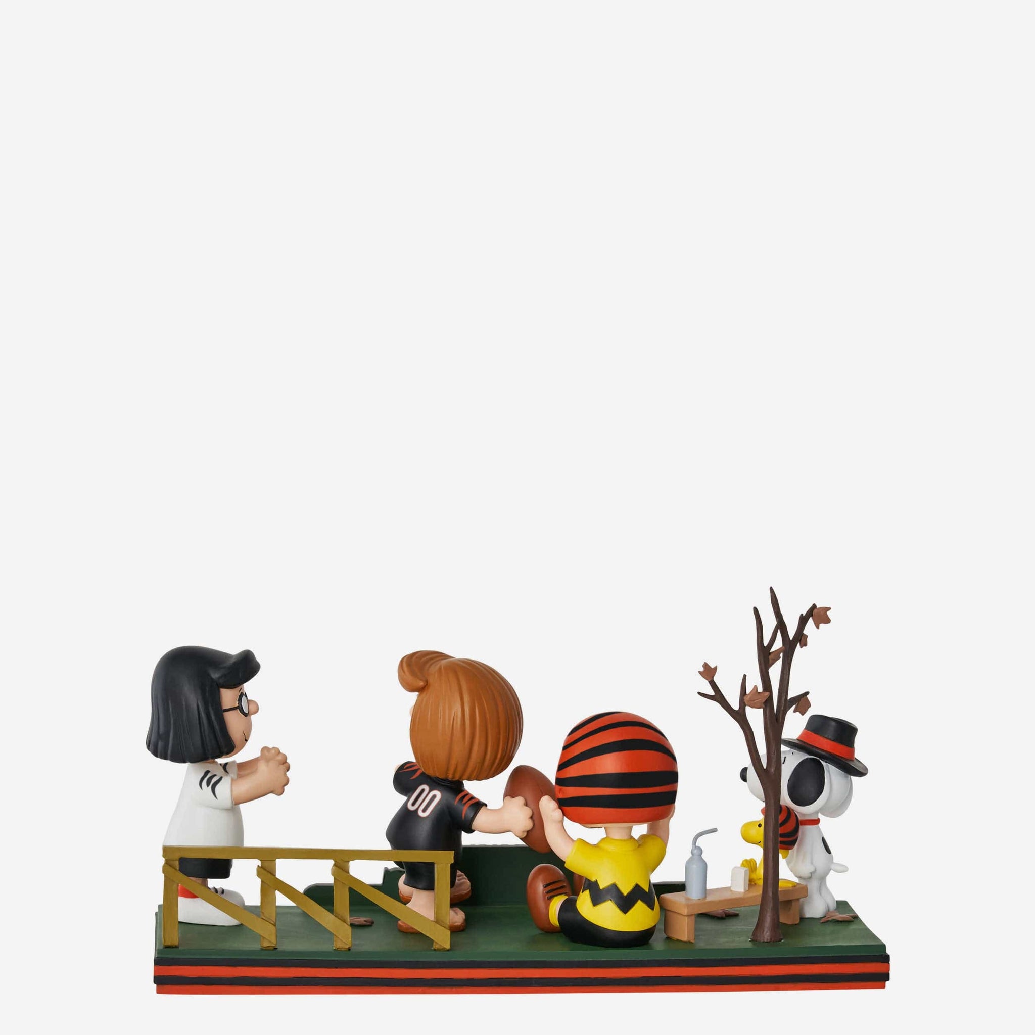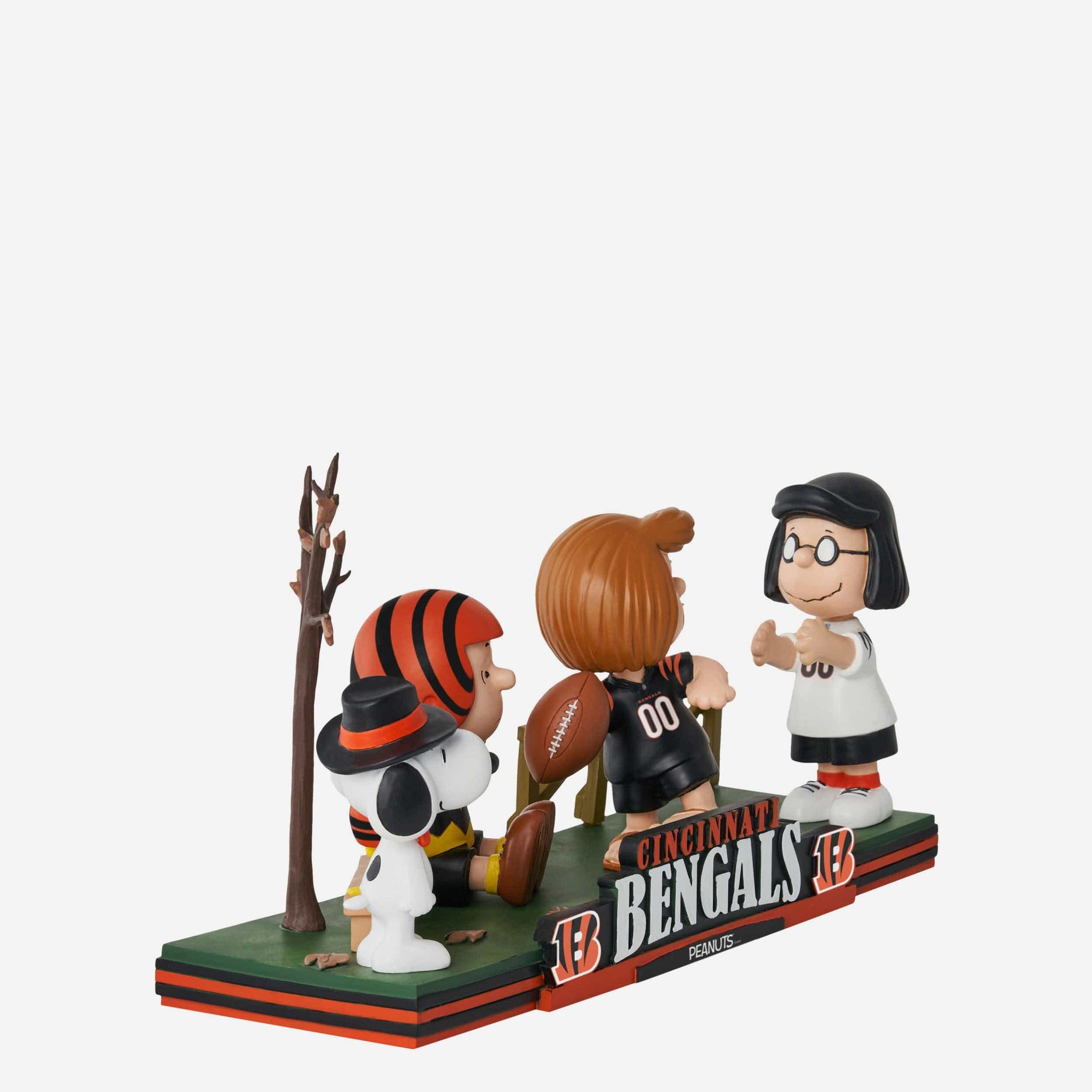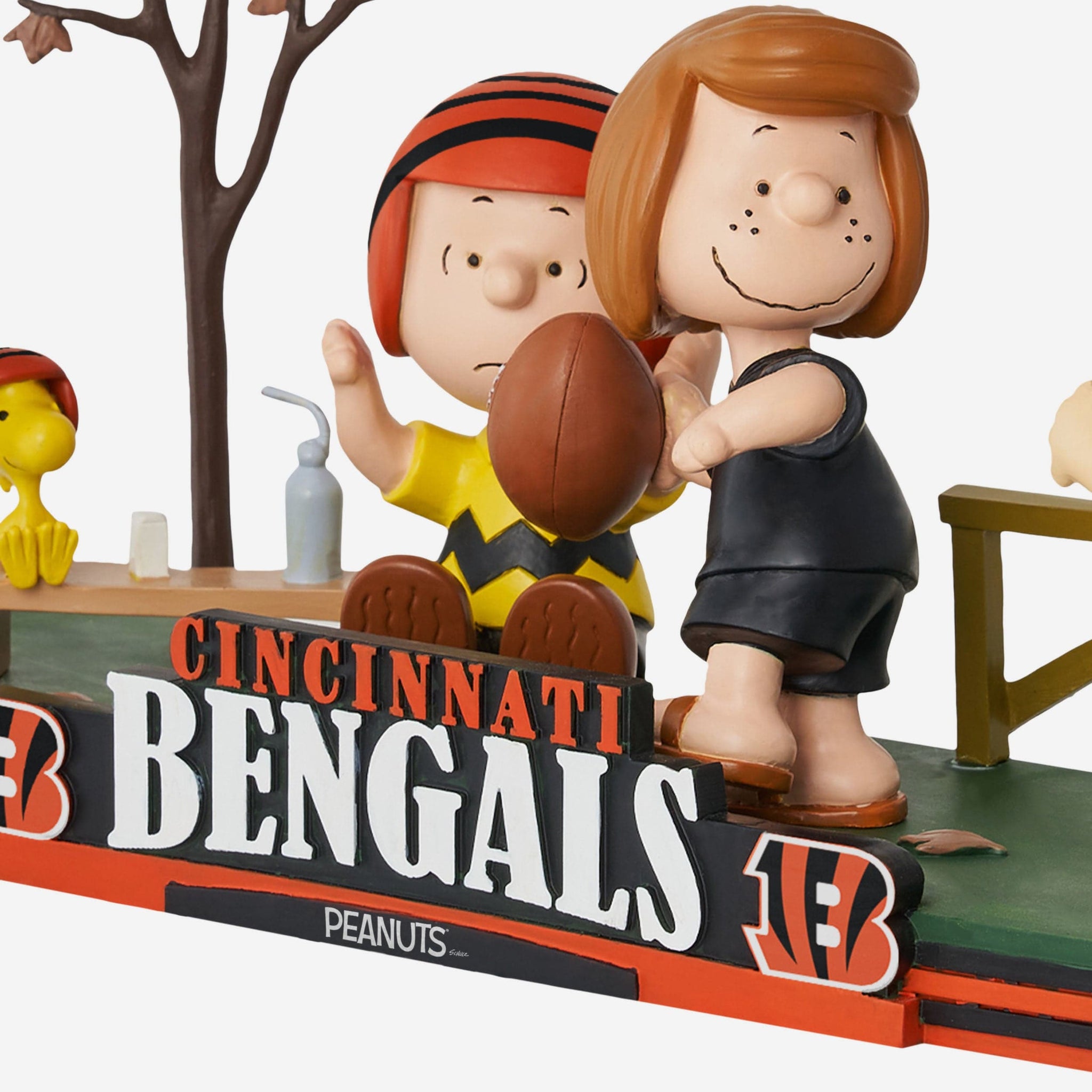 Get that touchdown dance ready. Bring all the gameday goodness to your collection and show off some superstars in your huddle with this Cincinnati Bengals Peanuts Gang Football Field Mini Bobblehead Scene.