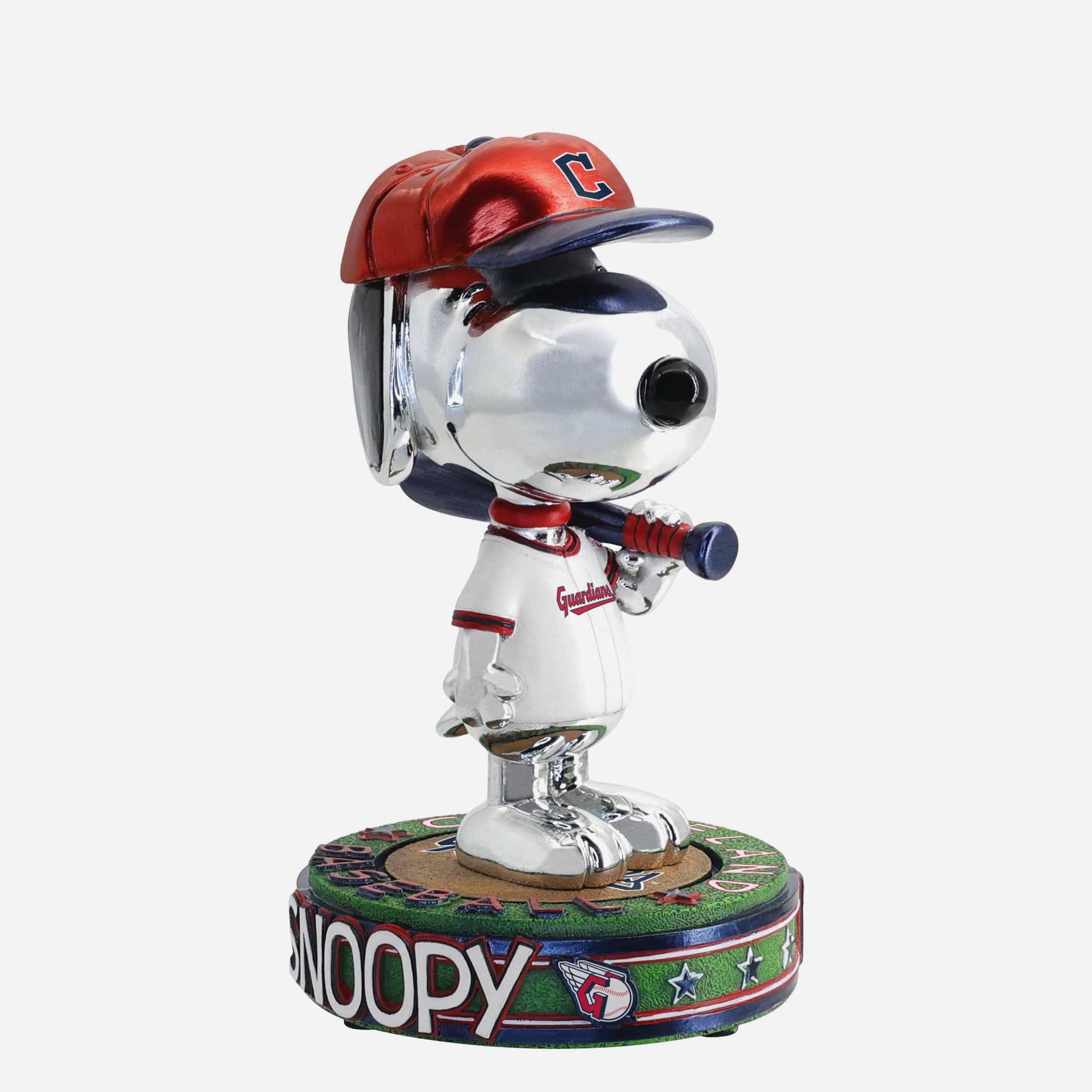 Snoopy’s taking the field, and the spotlight! Now, he can dazzle in your collection with the Cleveland Guardians Snoopy Peanuts Electroplated Bighead Bobblehead.