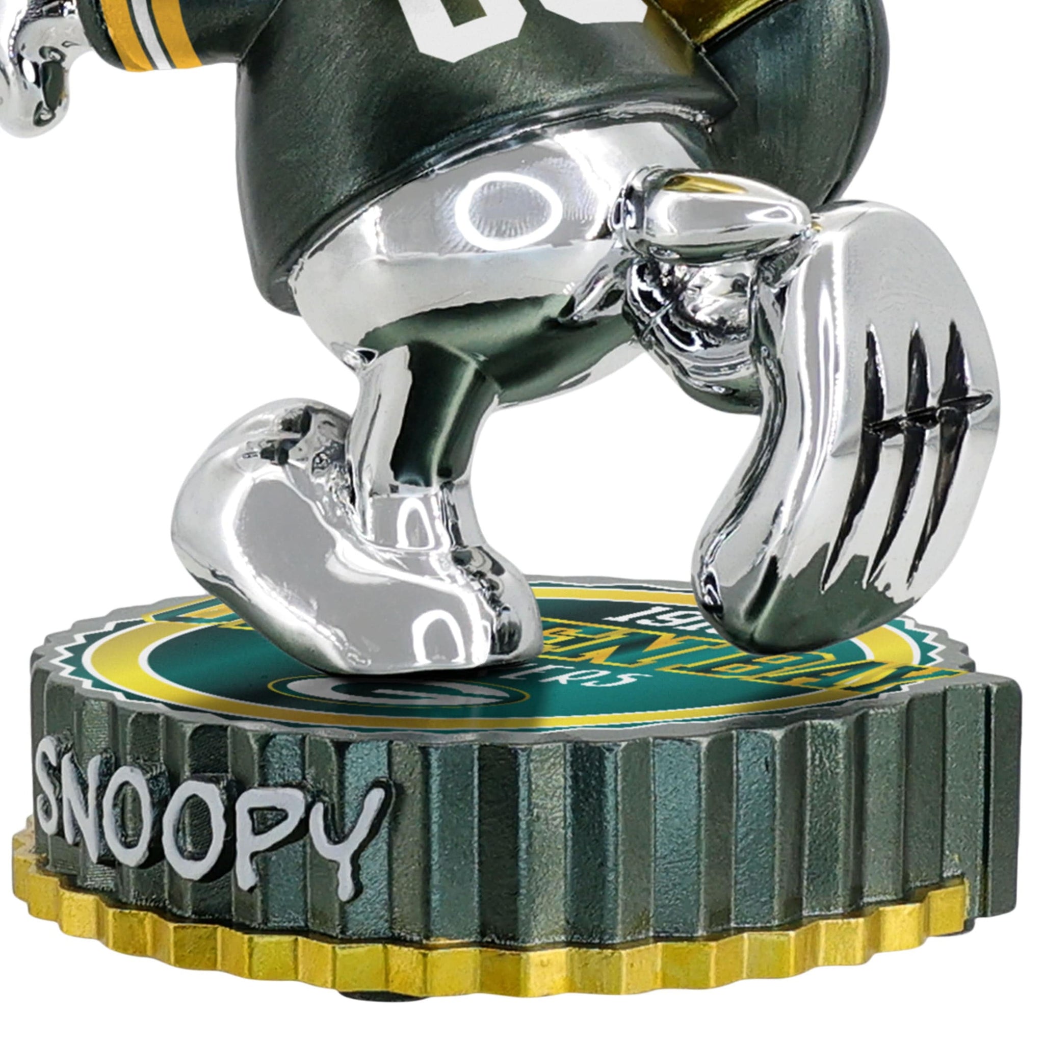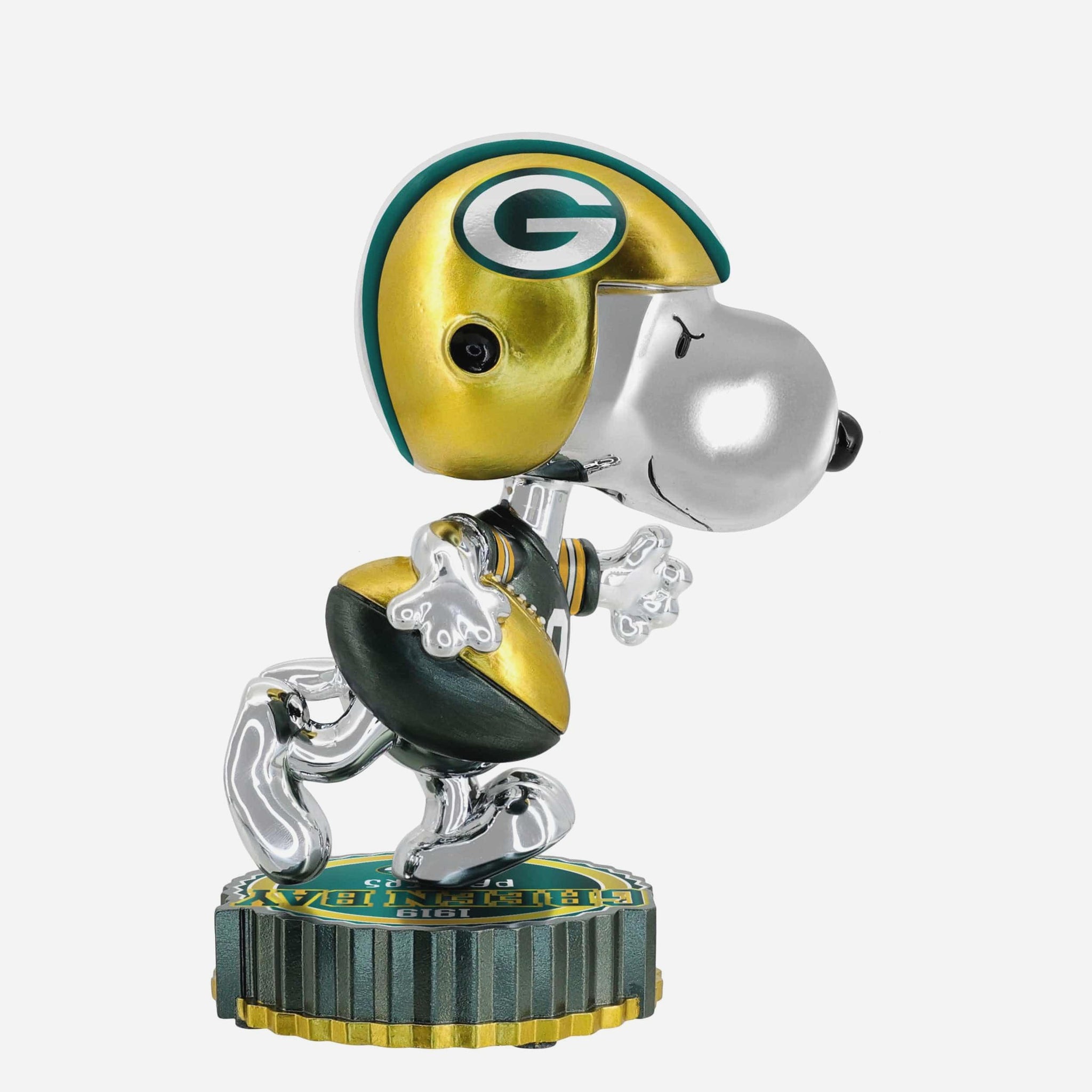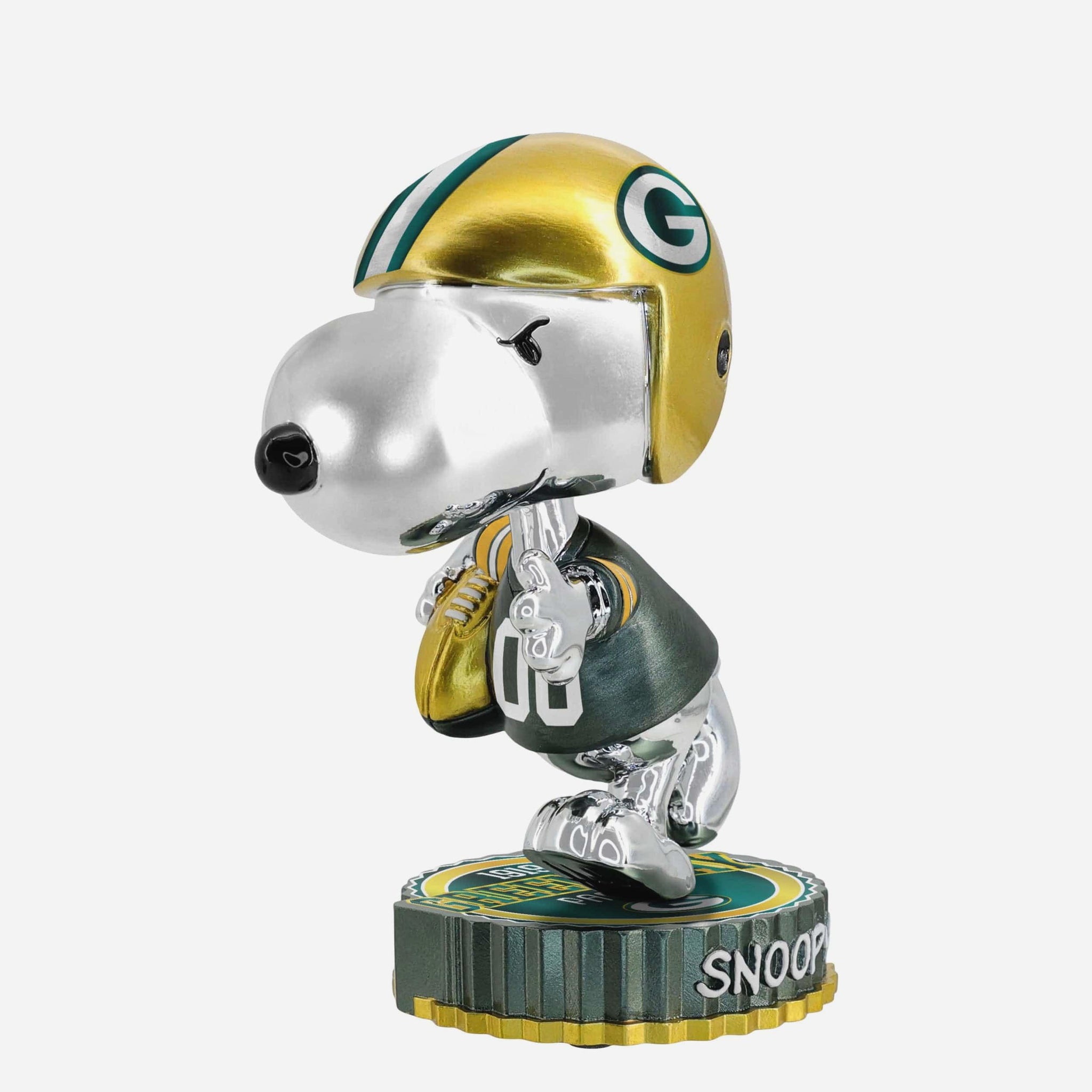 Snoopy is suiting up for game day in dazzling style! Add a little gridiron glow to your collection with this Green Bay Packers Snoopy Peanuts Electroplated Medium Bighead Bobblehead.
