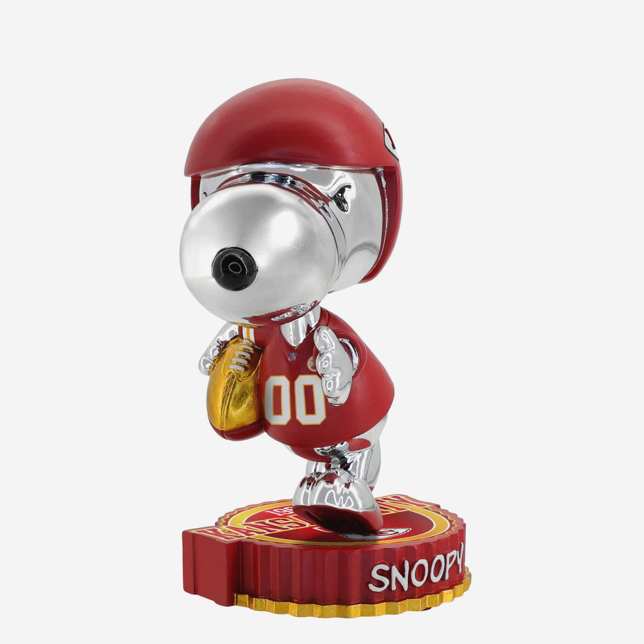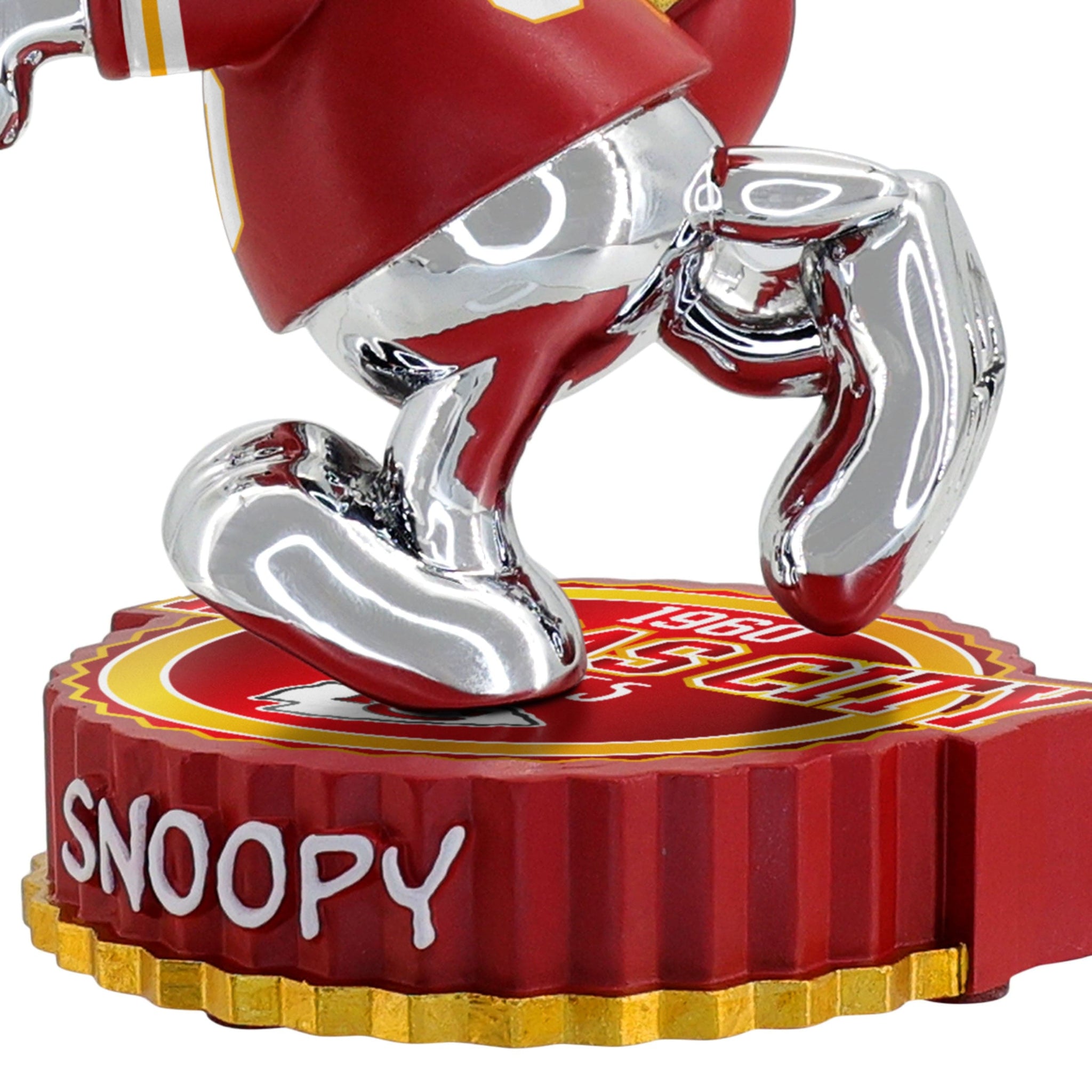 Snoopy is suiting up for game day in dazzling style! Add a little gridiron glow to your collection with this Kansas City Chiefs Snoopy Peanuts Electroplated Medium Bighead Bobblehead.