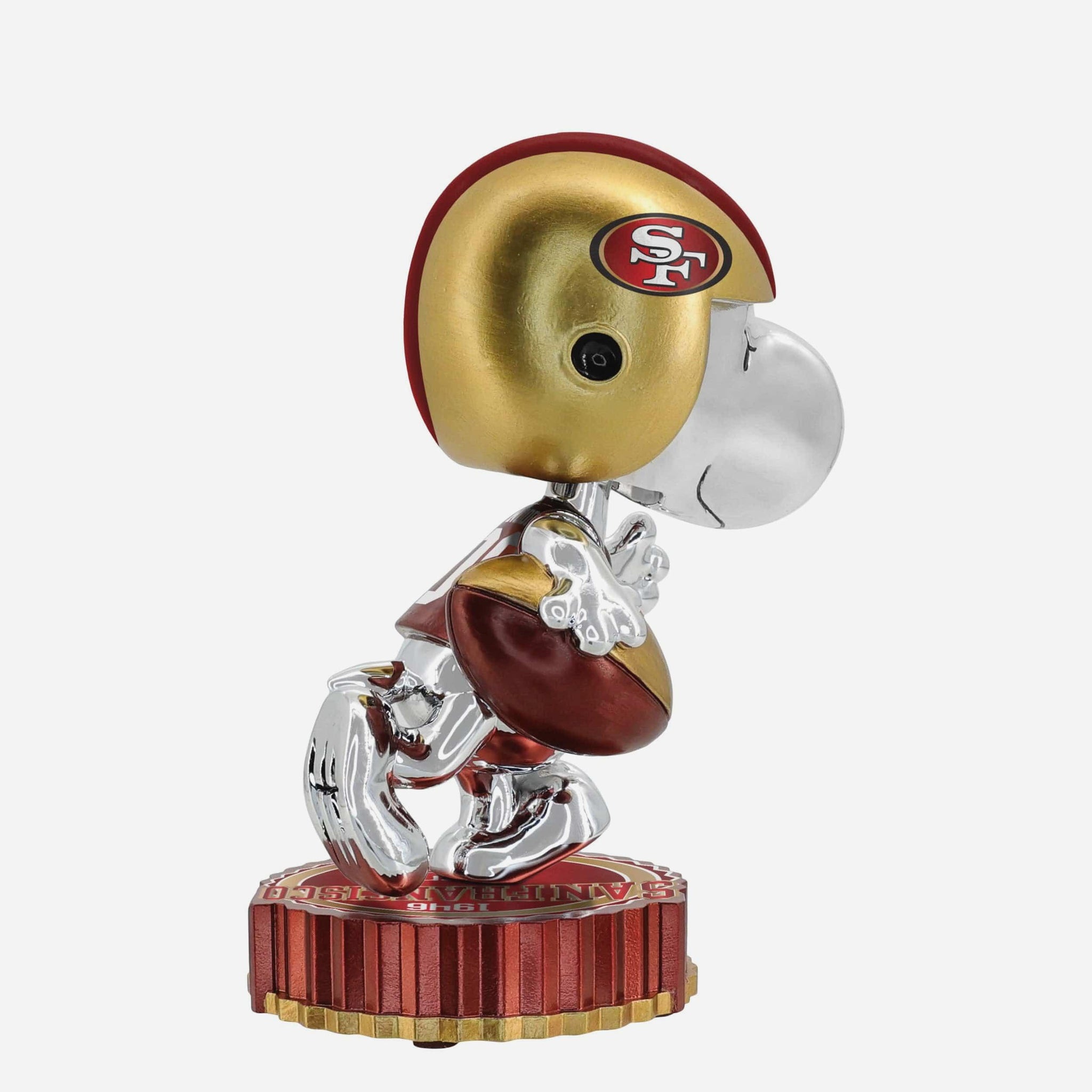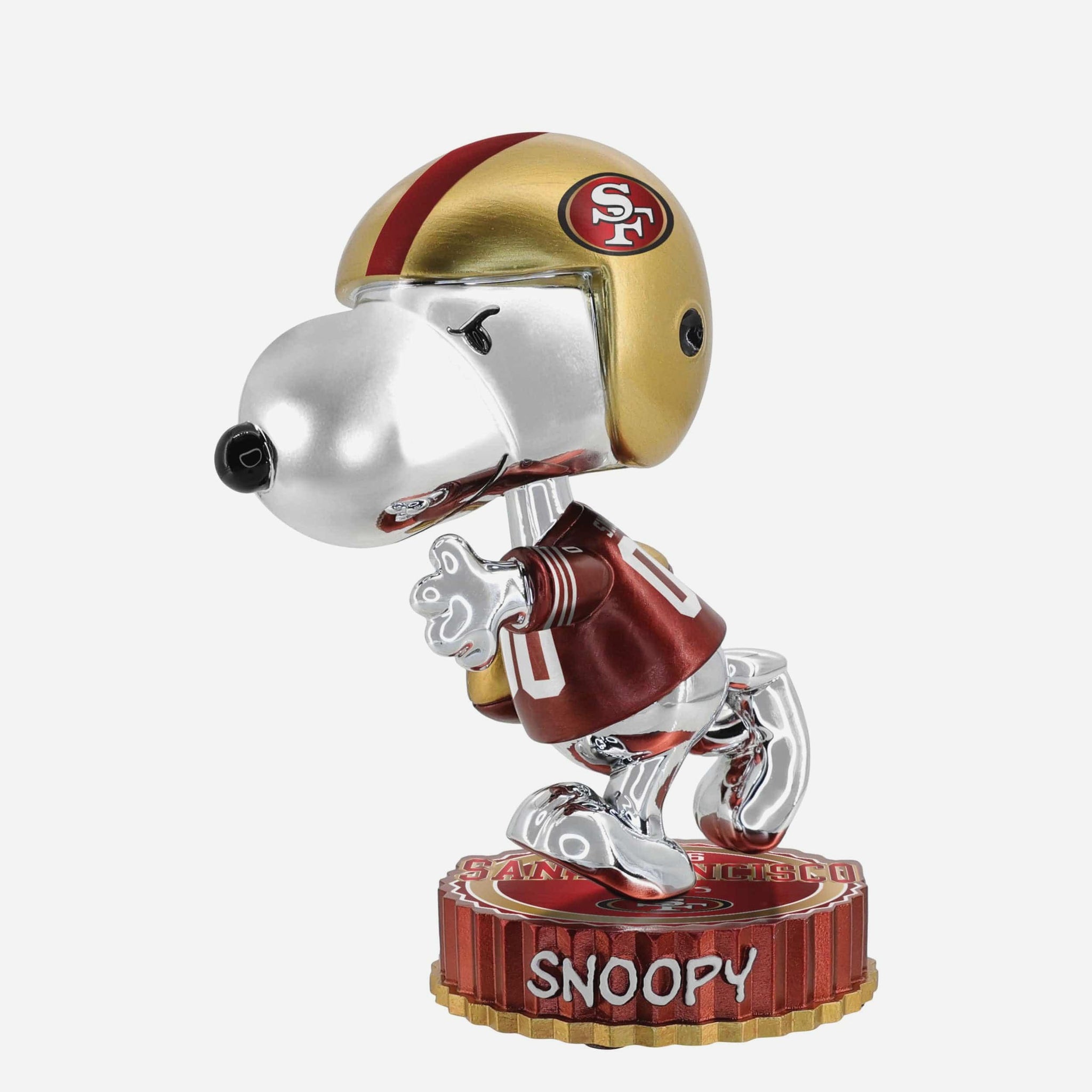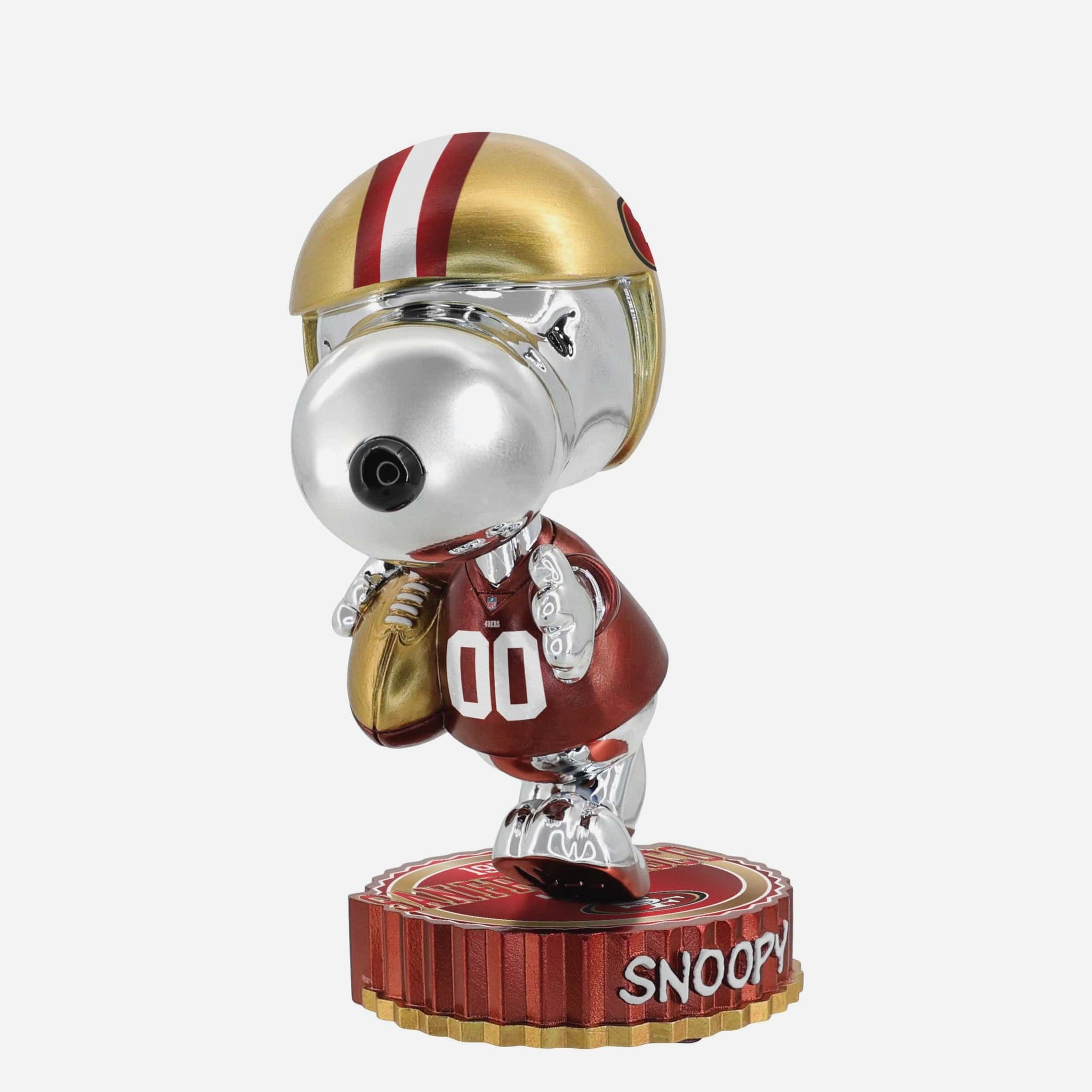 Snoopy is suiting up for game day in dazzling style! Add a little gridiron glow to your collection with this San Francisco 49ers Snoopy Peanuts Electroplated Medium Bighead Bobblehead.