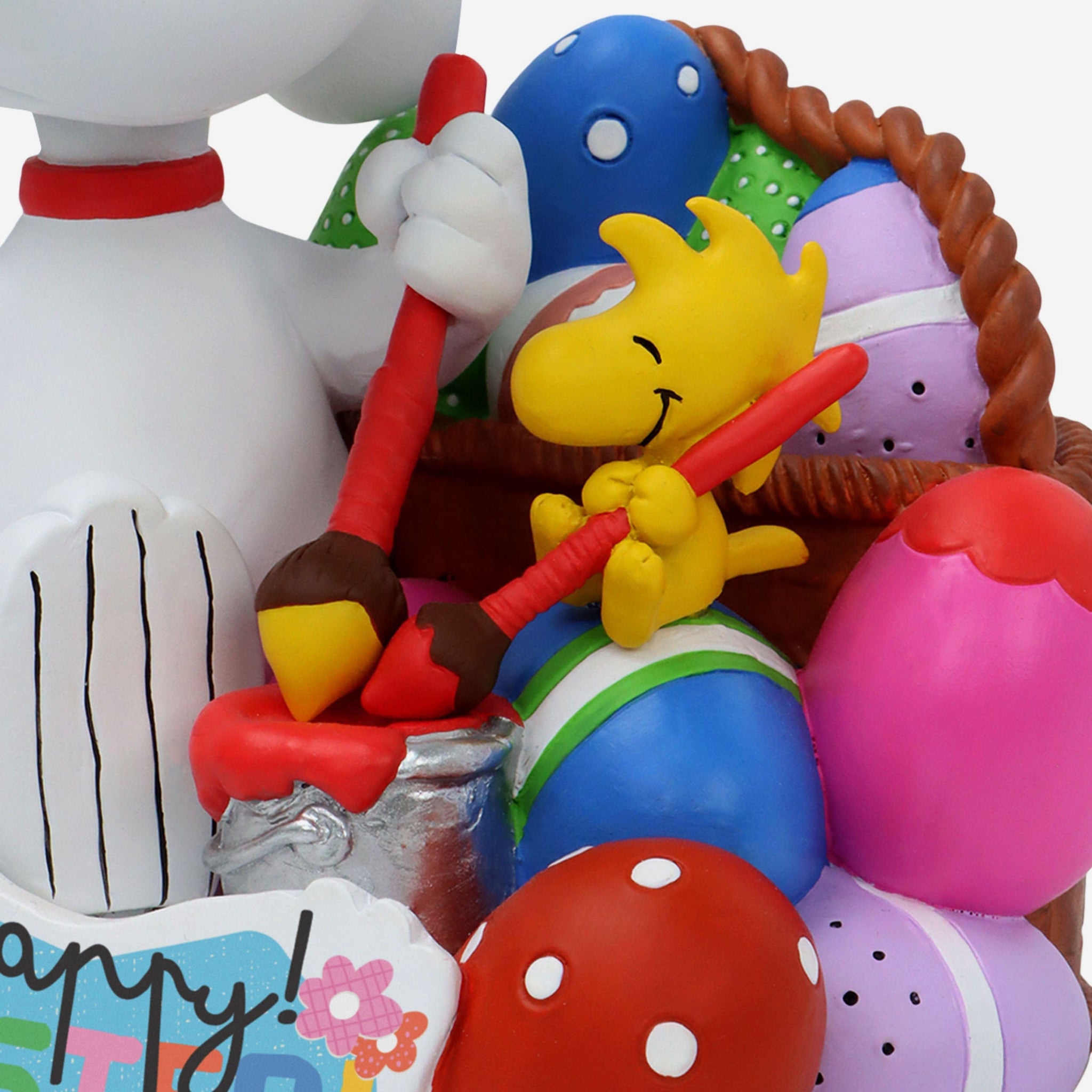 • Portrays Snoopy and Woodstock seated and holding paintbrushes, ready to paint their Easter masterpiece on eggshells