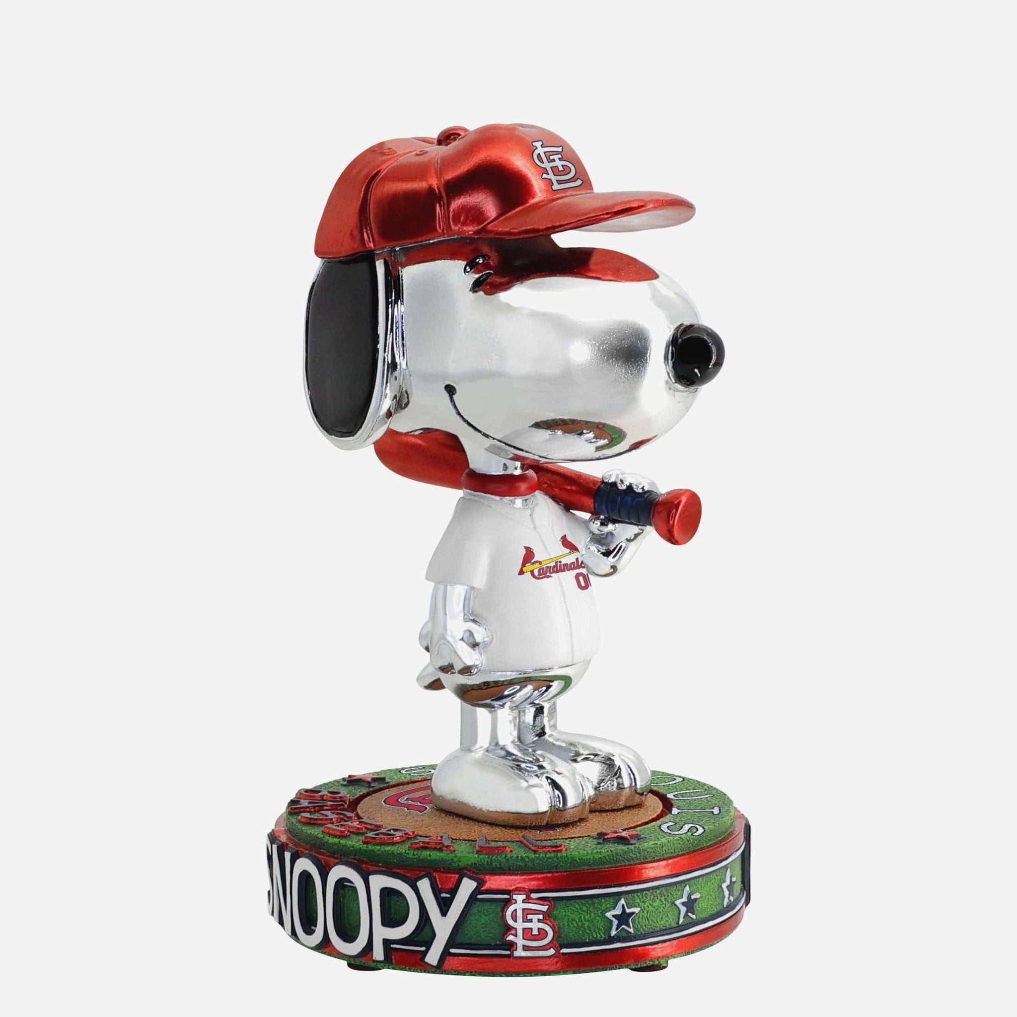 Snoopy’s taking the field, and the spotlight! Now, he can dazzle in your collection with the St. Louis Cardinals Snoopy Peanuts Electroplated Bighead Bobblehead.