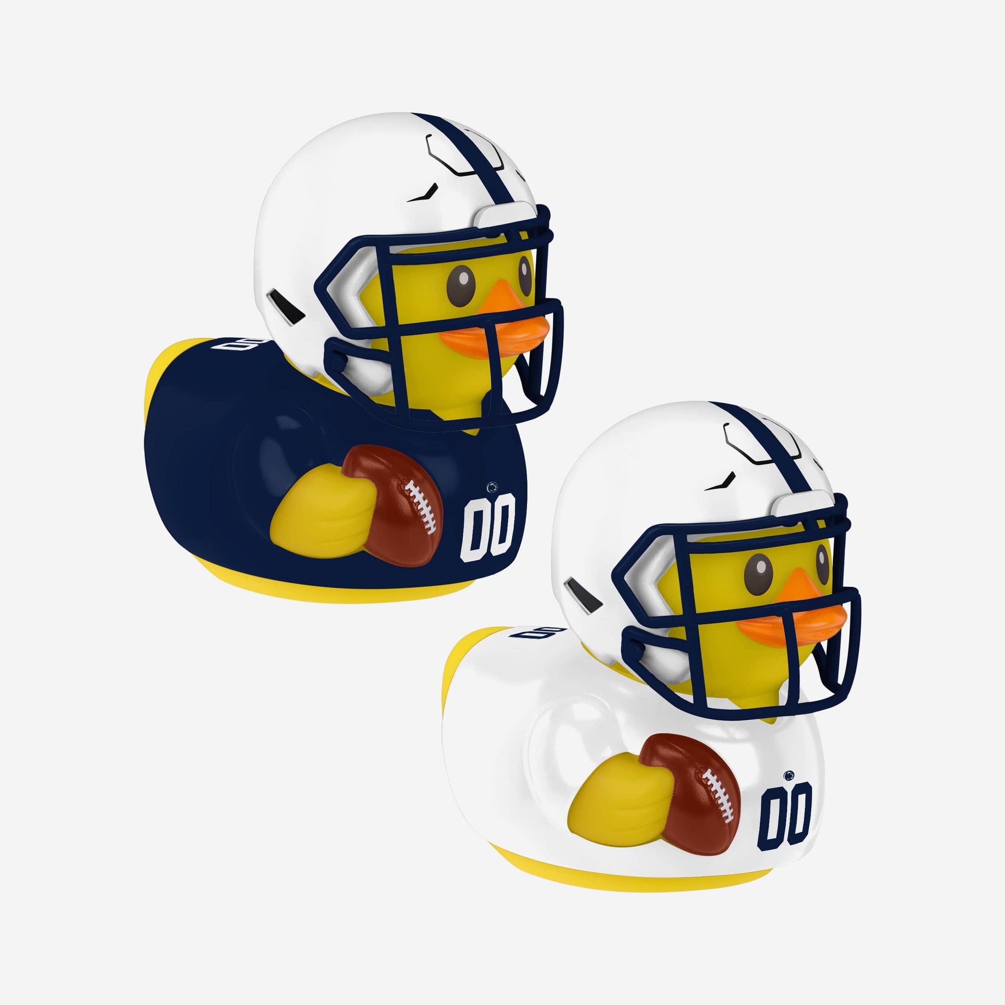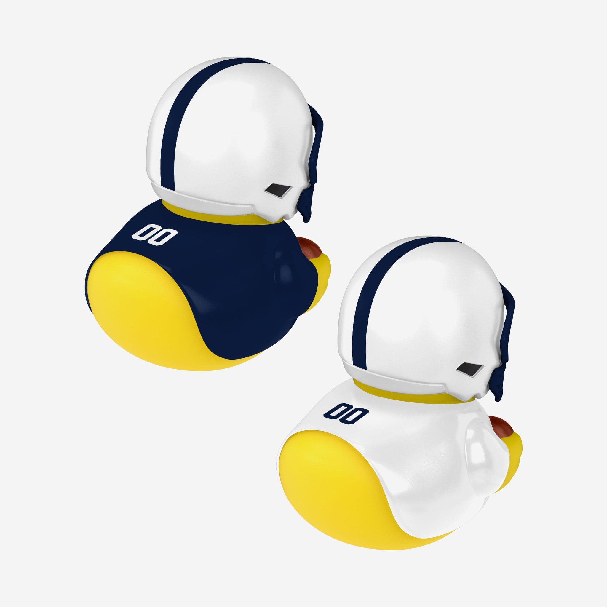 • Two-pack of yellow rubber ducks wearing home and away gameday uniforms for a double dose of greatness