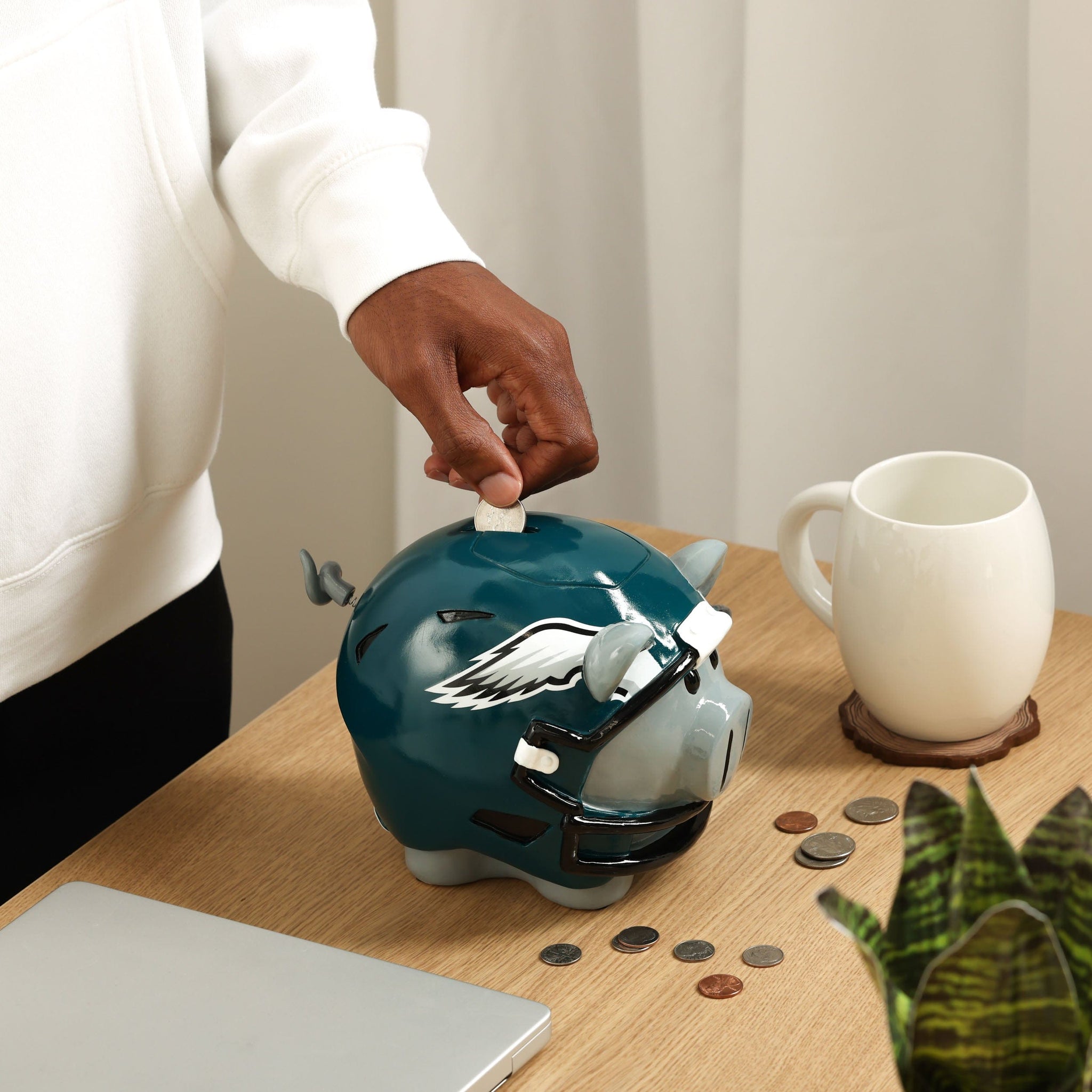 This piggy doesn't just carry the team spirit - This pig carries your change, too. Don't get what we're saying? It'll make "cents" when you've got this Philadelphia Eagles Helmet Piggy Bank in your collection.