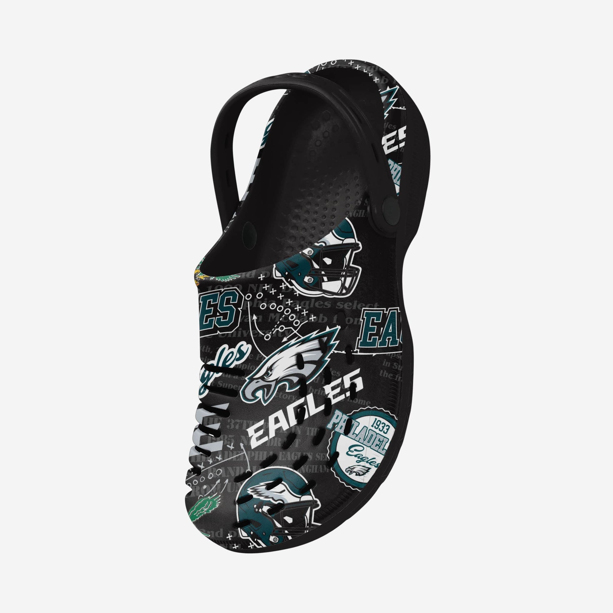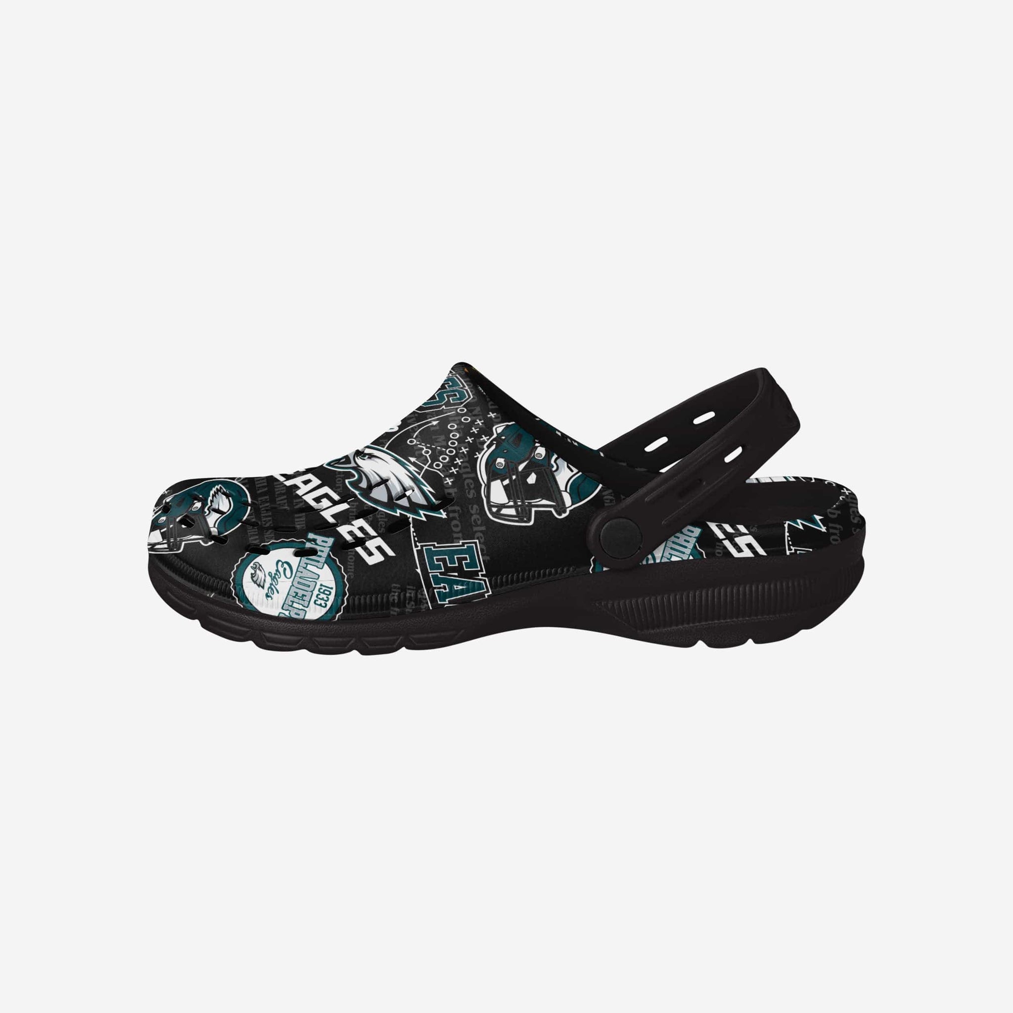 The Philadelphia Eagles Historic Print Clogs with Straps are here to help you take a step into the time machine and celebrate your franchise's glorious history.