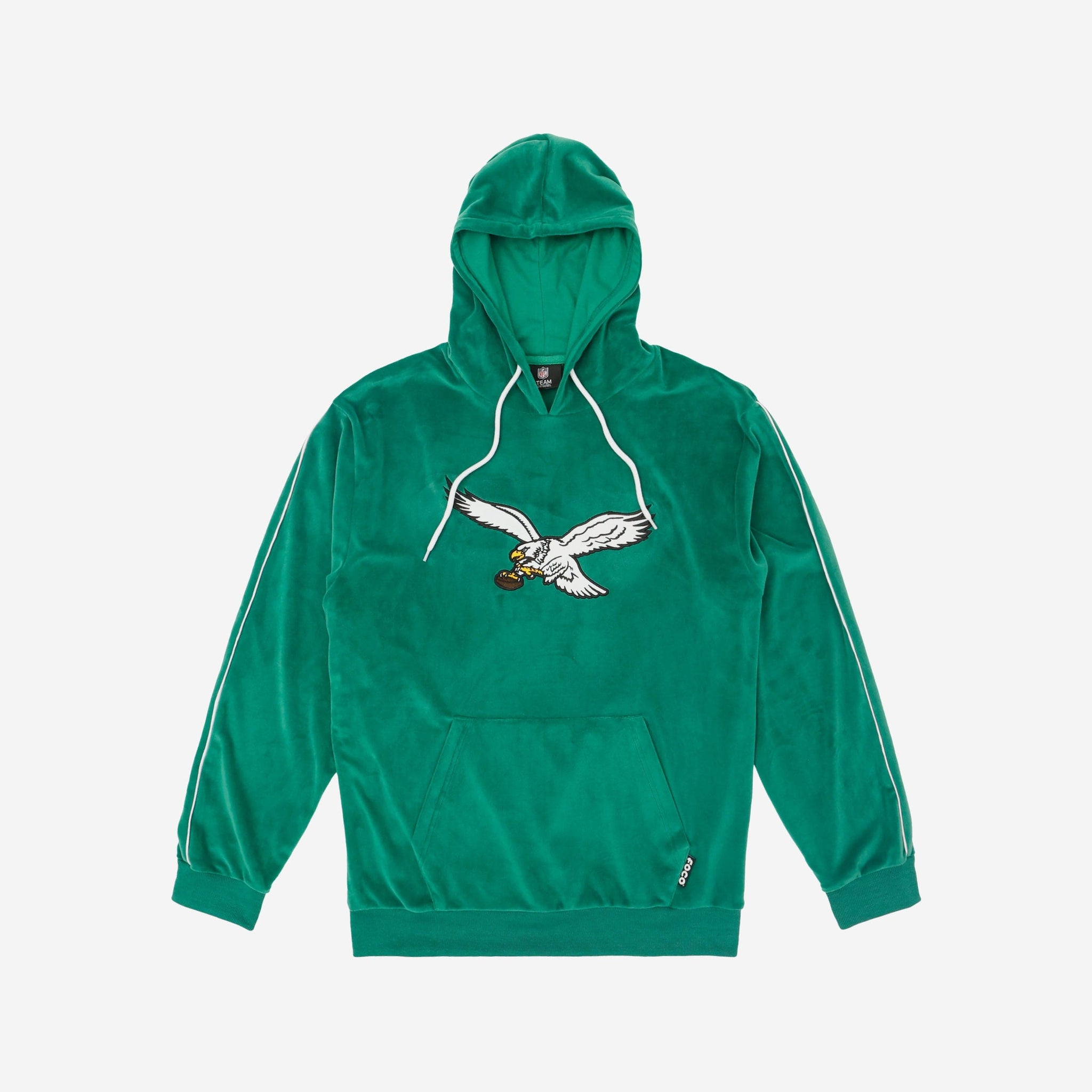 Need a fresh, sporty look for the next tailgate? Bundle up and step up your style game with this Philadelphia Eagles Kelly Green Retro Velour Hooded Sweatshirt.