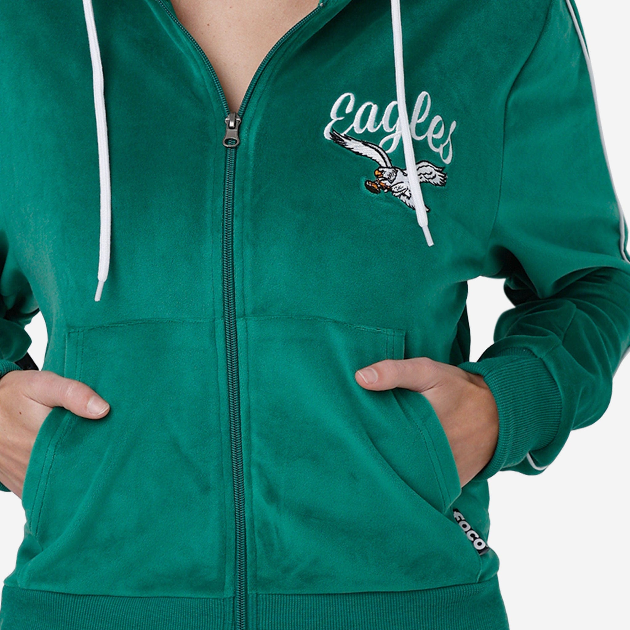 Philadelphia Eagles Womens Kelly Green Velour Zip Up Top