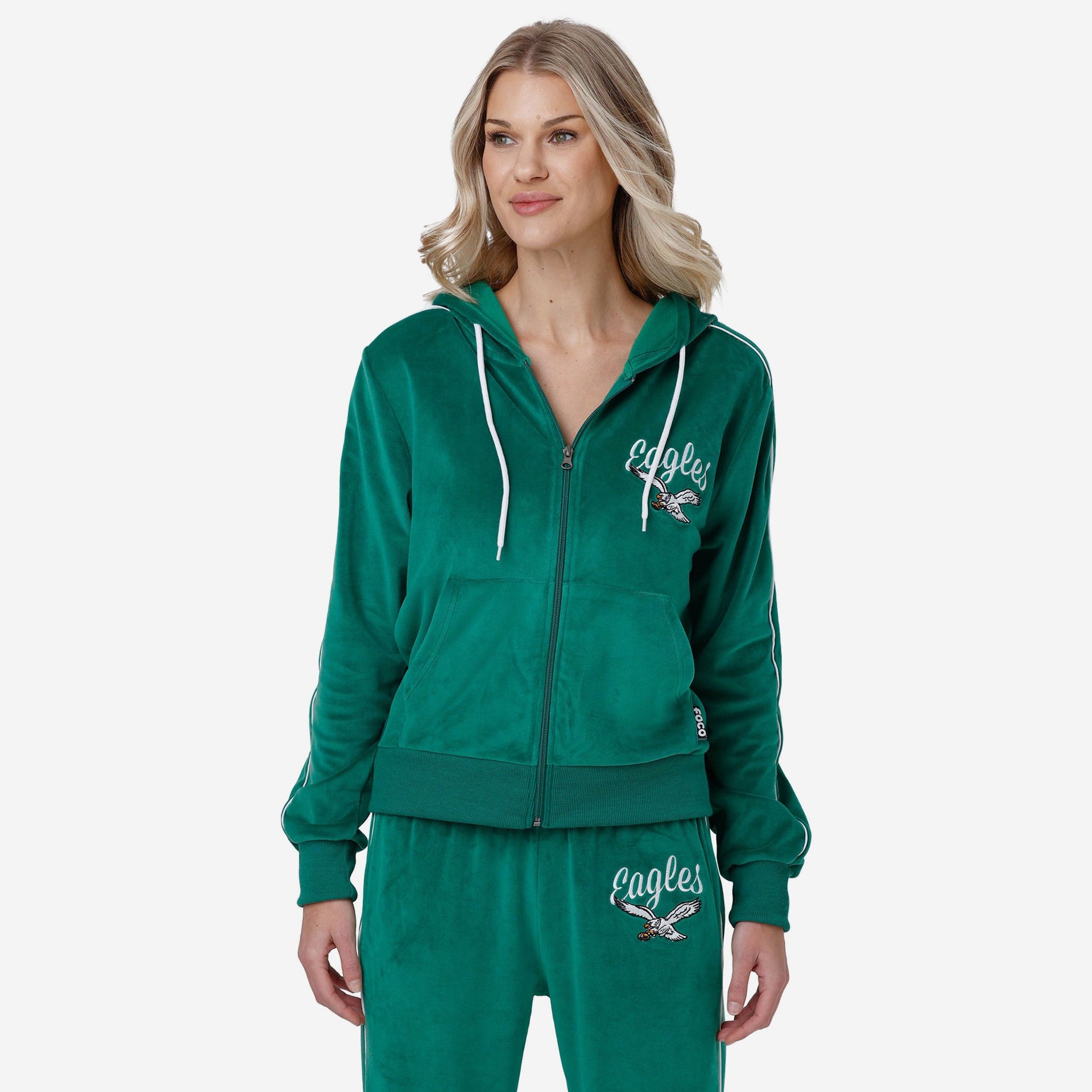 Philadelphia Eagles Womens Kelly Green Velour Zip Up Top FOCO - FOCO.com