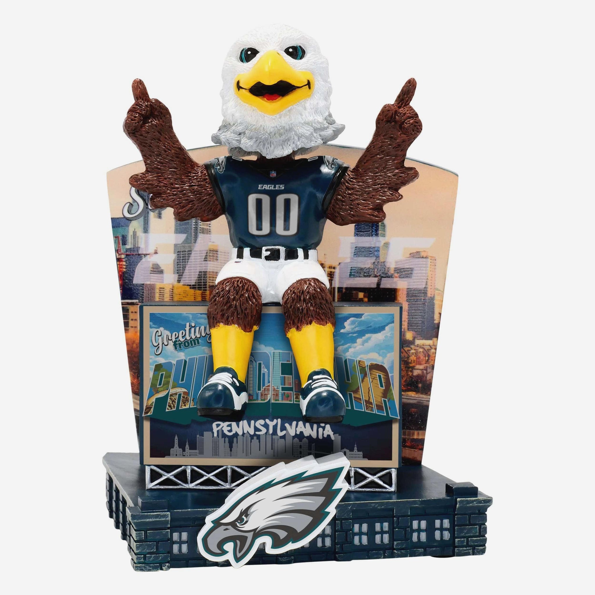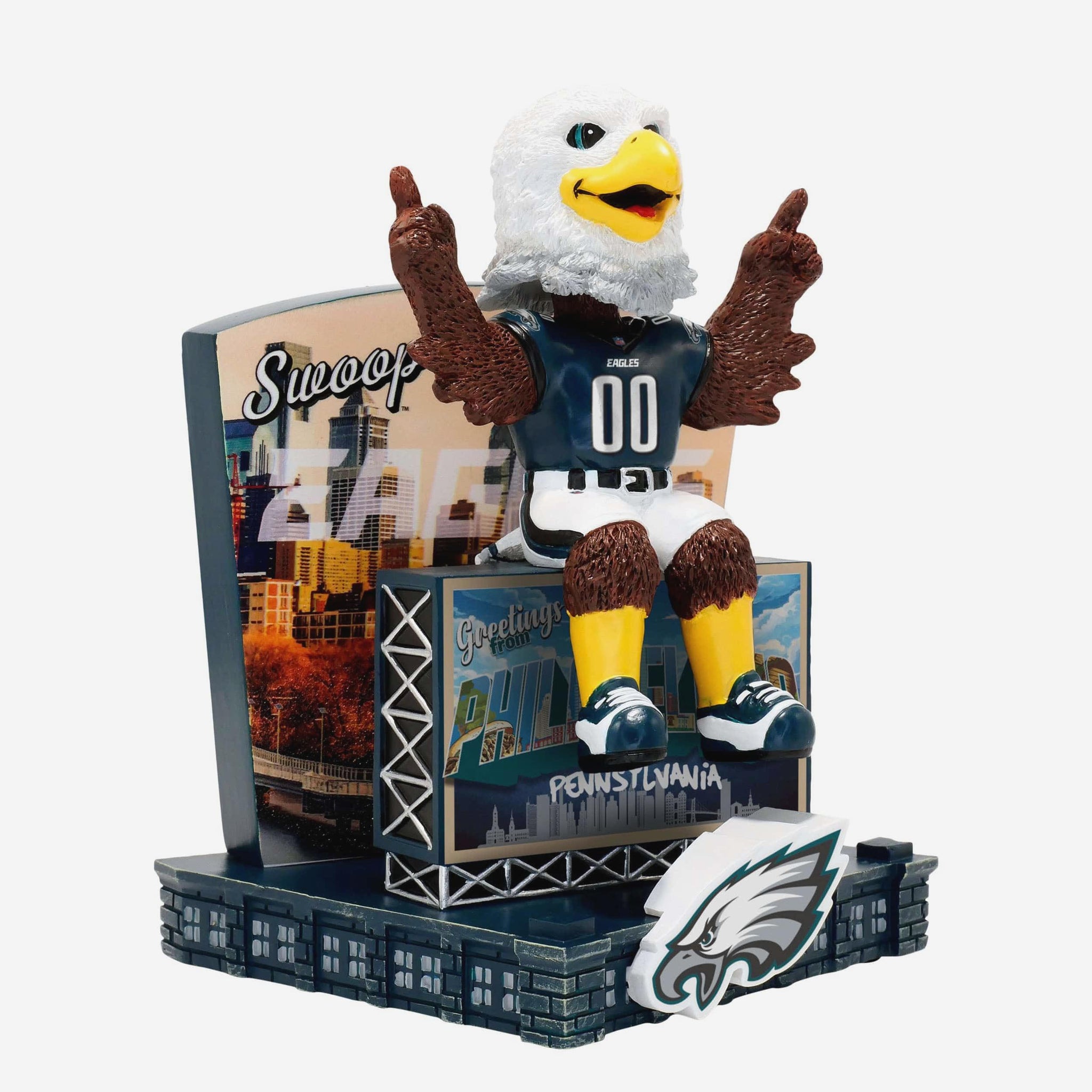 Fly, Eagles, Fly! The Philadelphia Eagles Greetings From Mascot Bobblehead brings Swoop’s energy and Philly pride to your collection.