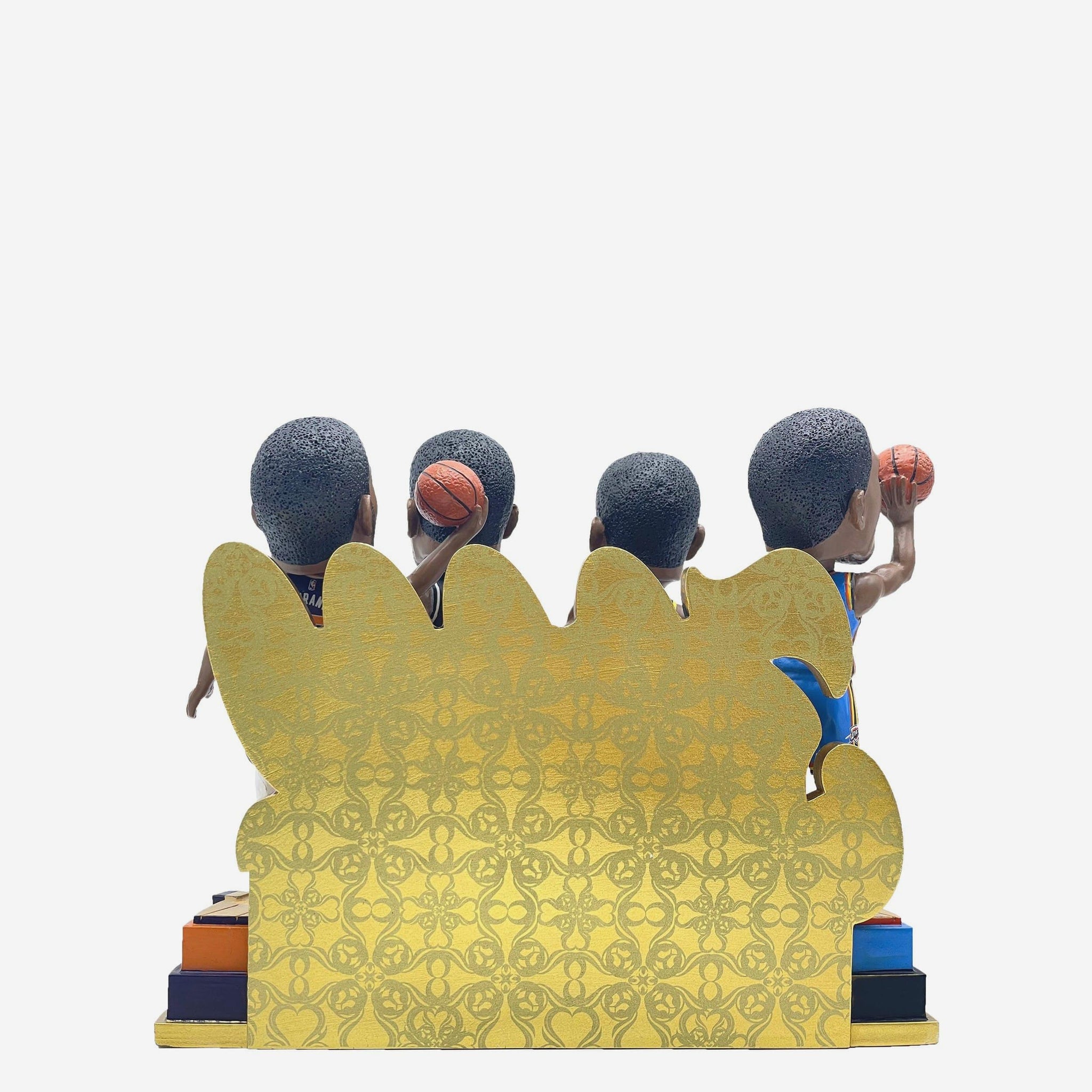 - Portrays Durant wearing his white Thunder, Warriors, Nets, and Suns gameday uniforms in action poses, ready to write his name in the history books