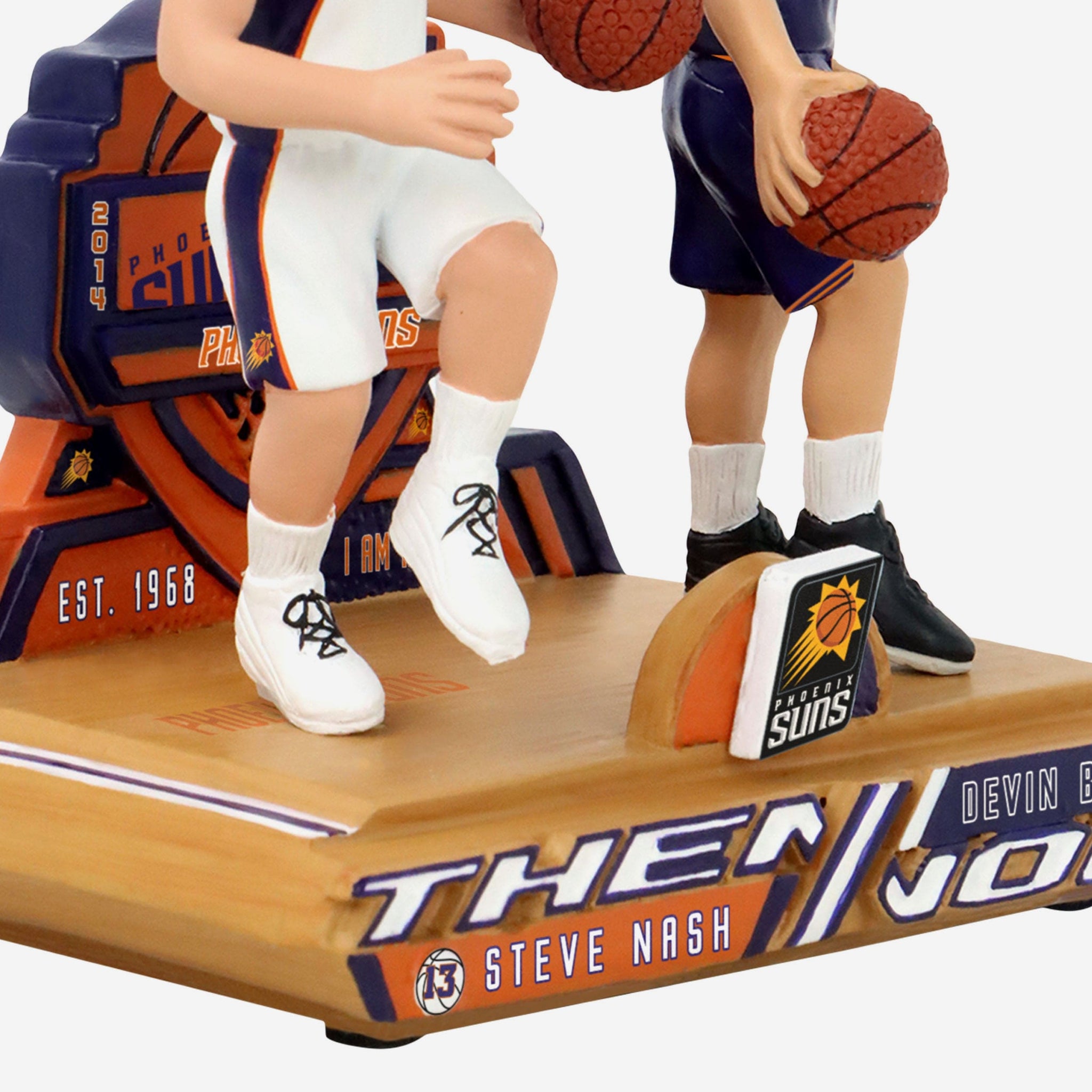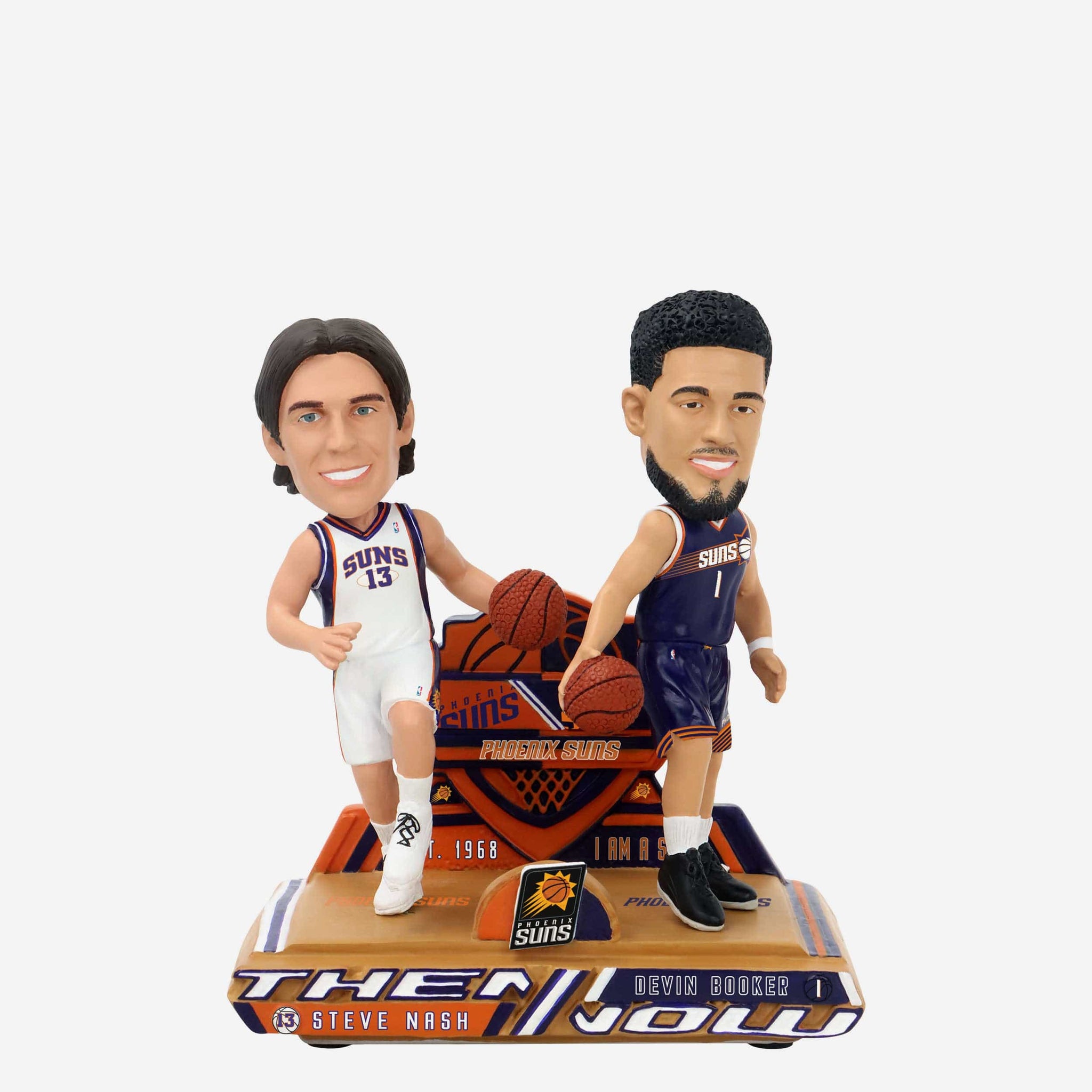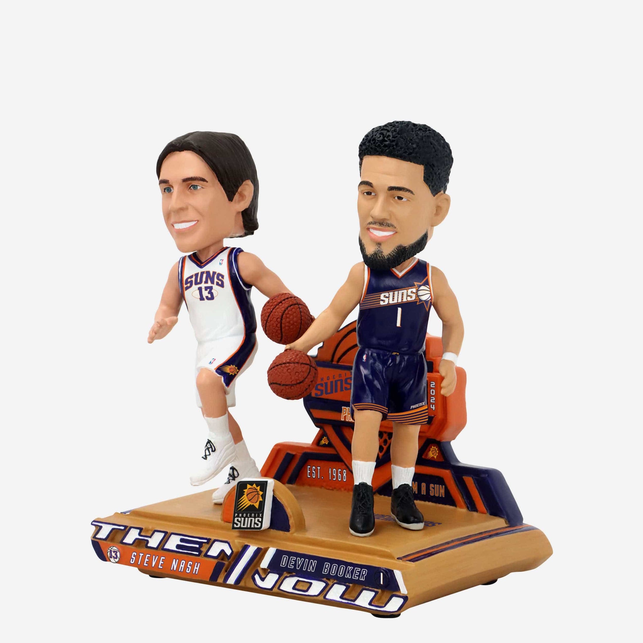 Two guards past and present, together on one timeless bobble! Give your roster an upgrade with the Steve Nash & Devin Booker Phoenix Suns Then And Now Bobblehead.