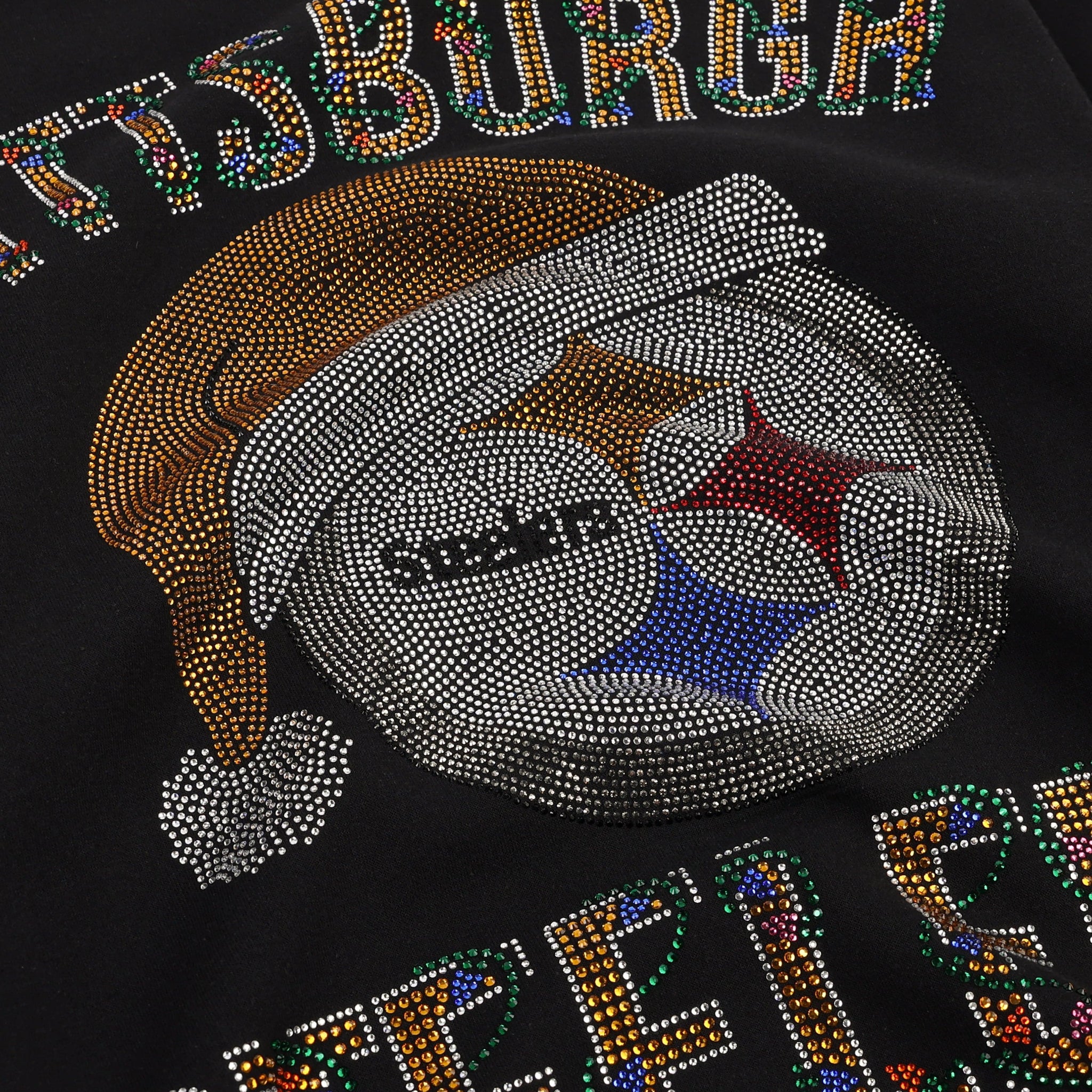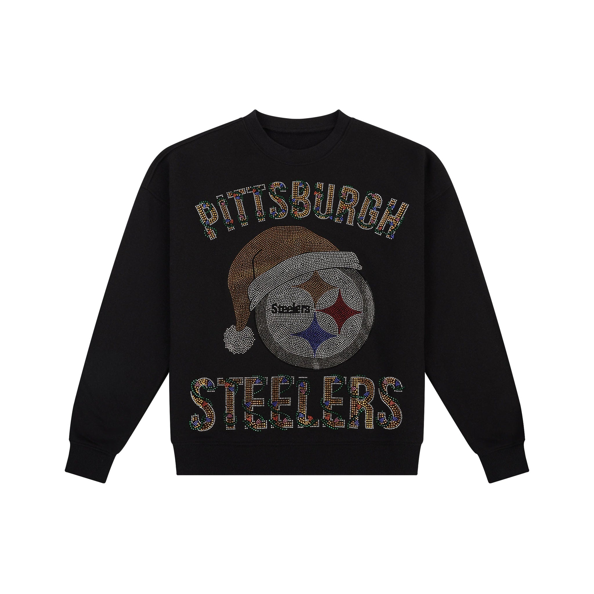 Santa's making a list, and he’s checking it twice! Bling it on! It's time to turn up the twinkle and let your fan fit do the talking. This Pittsburgh Steelers Womens Rhinestone Logo Oversized Holiday Crew Neck Sweatshirt is made for those who like their cozy with a little extra shine. From game day to every day, it’s the perfect way to stay warm and wow-worthy during the holiday season.