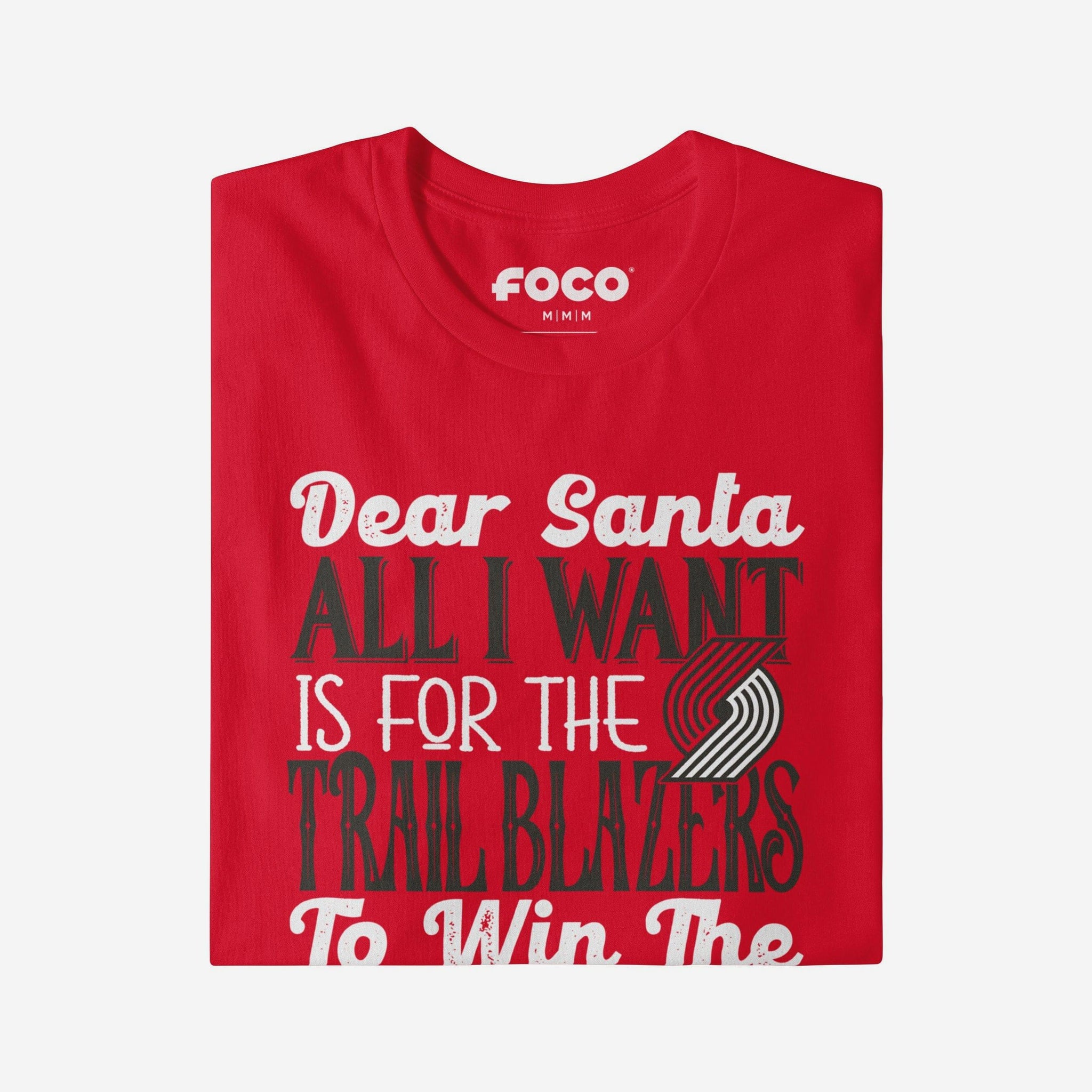 - Festive, team-colored design: This traditional t-shirt shows off the official Portland Trail Blazers colors in an all-over design with a festive message to Santa, so you can combine your team spirit with holiday spirit.