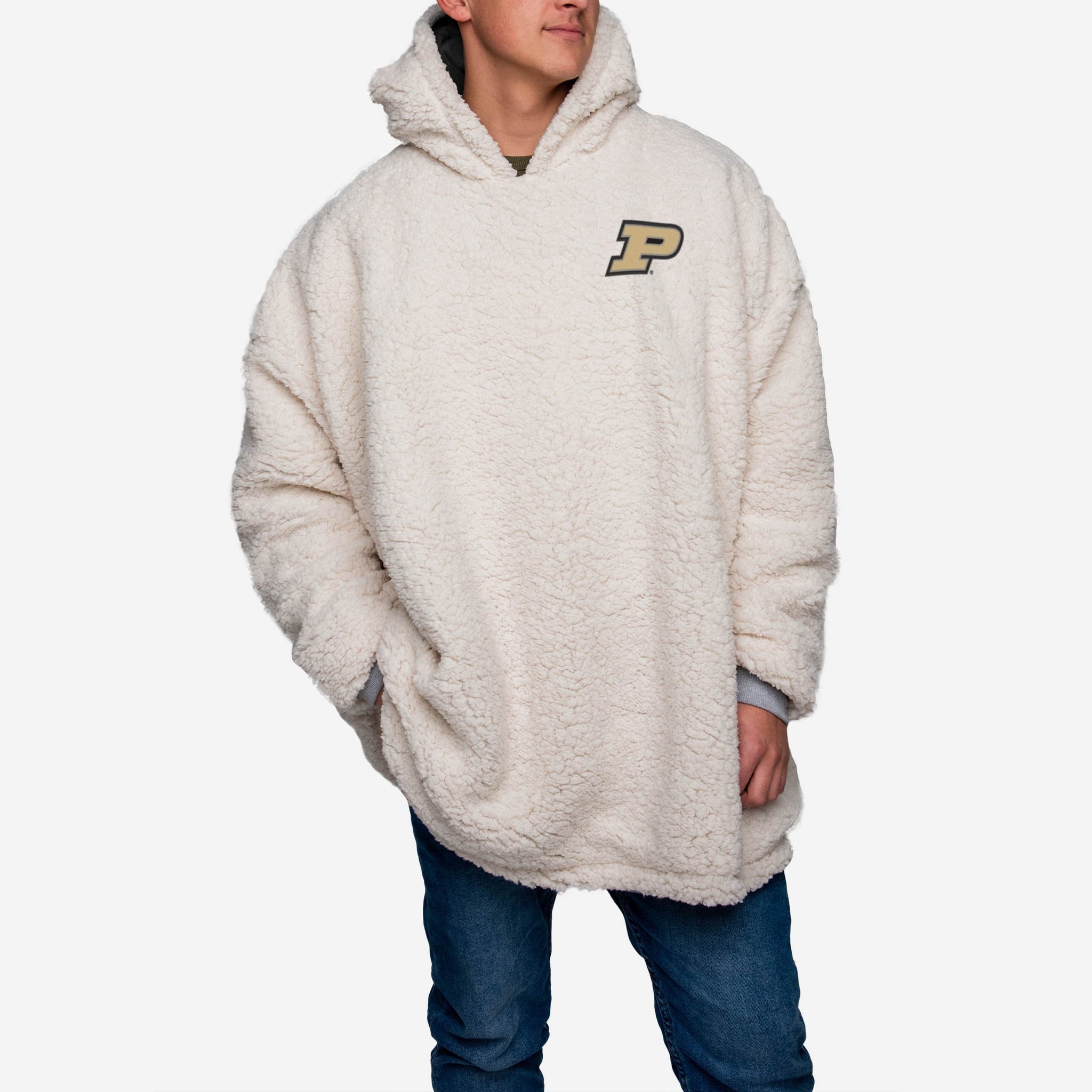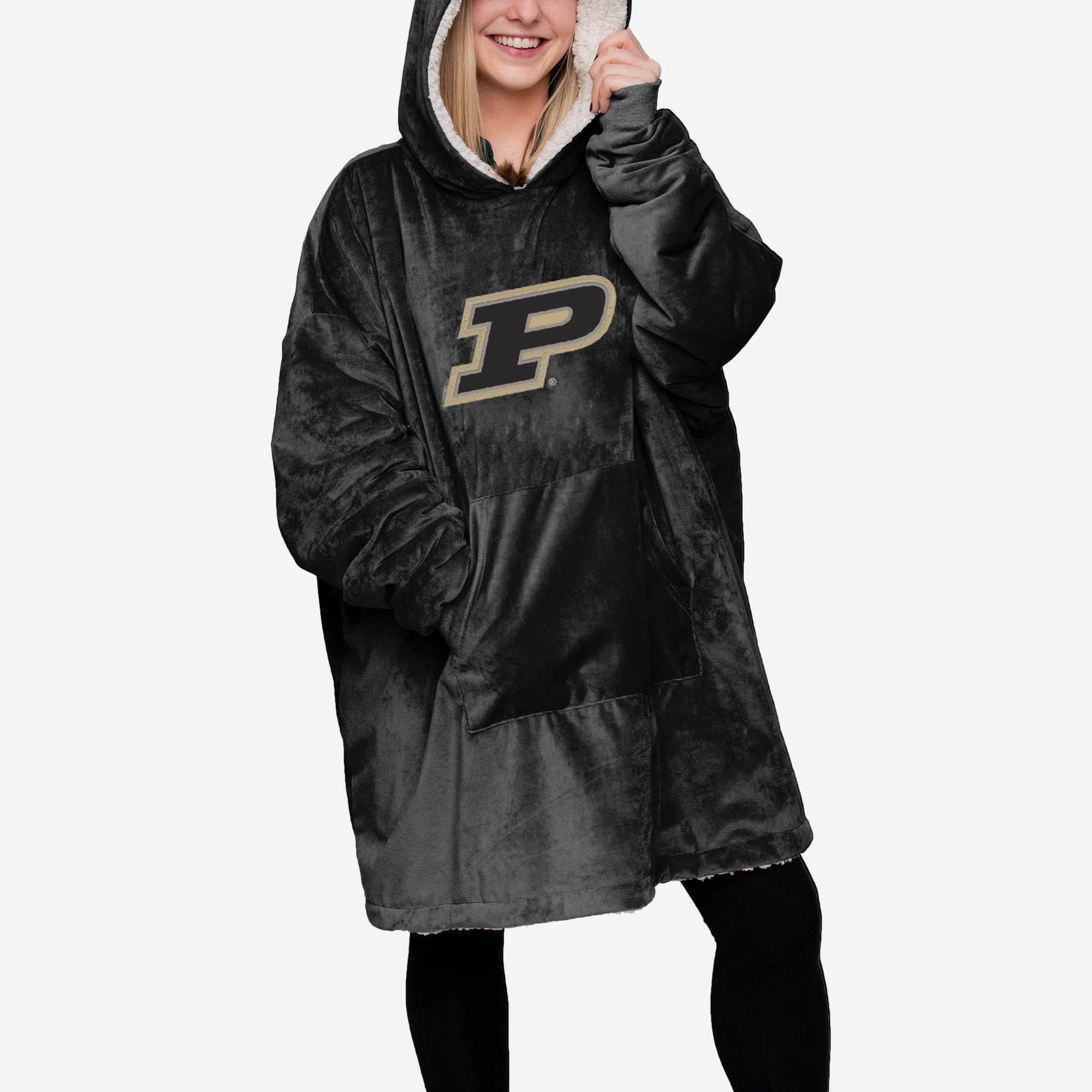 Choosing between showing off your team spirit, looking good, and enjoying some elite relaxation is a tough decision. Borderline impossible. Good news. You don't have to choose. Because you can enjoy that triple threat of fan awesome when you rock this Purdue Boilermakers Reversible Big Logo Hoodeez.