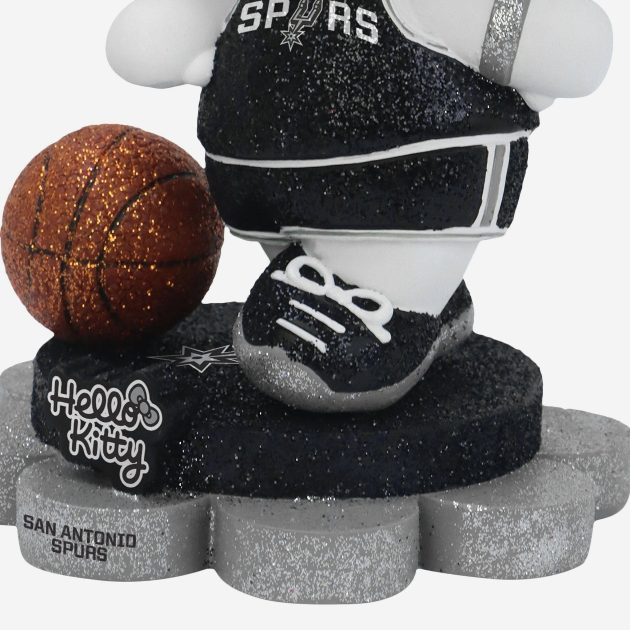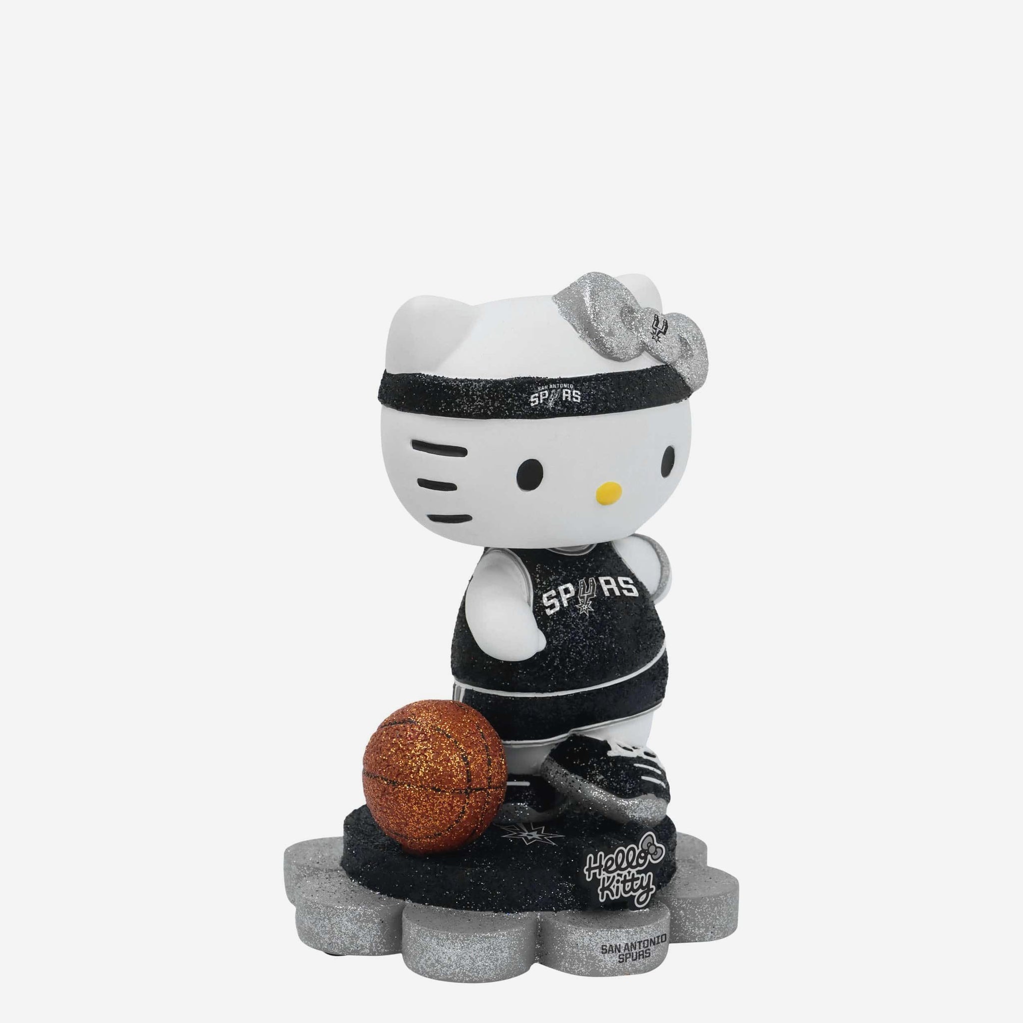 Cute, collectible, and courtside-ready! Hello Kitty® is officially hitting the hardwood and your collection in sparkle style with the San Antonio Spurs Hello Kitty® Glitter Mini Bobblehead.