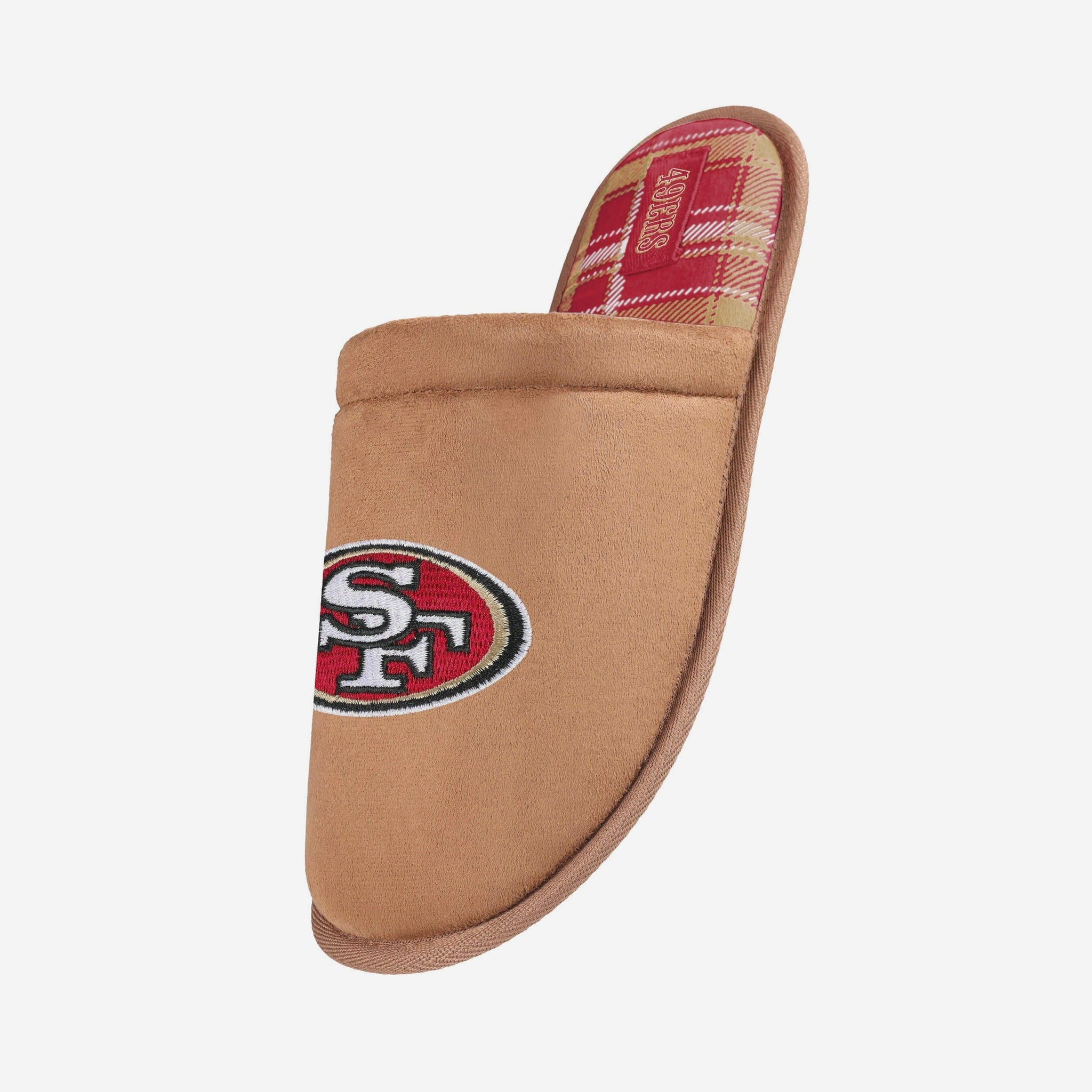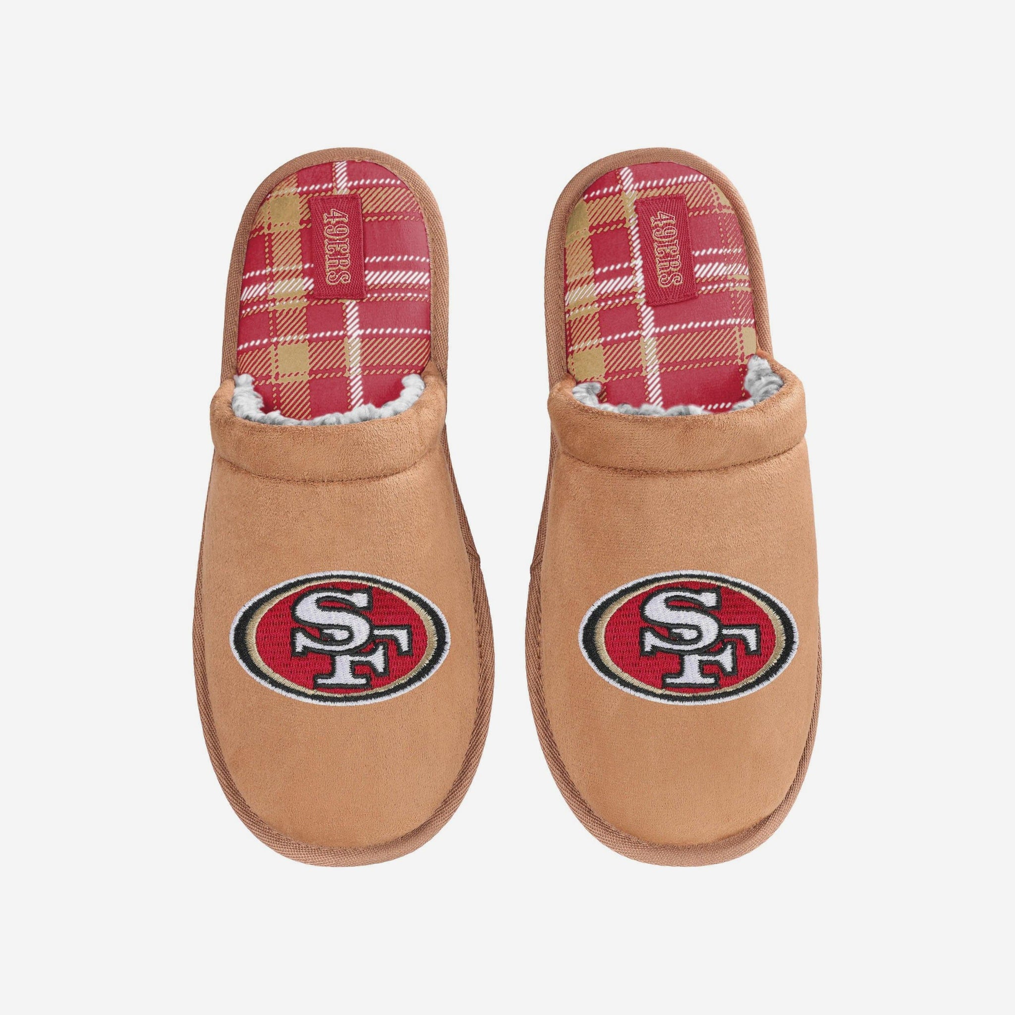San Francisco 49ers Flannel Lined Brown Suede Scuff Slipper FOCO S - FOCO.com