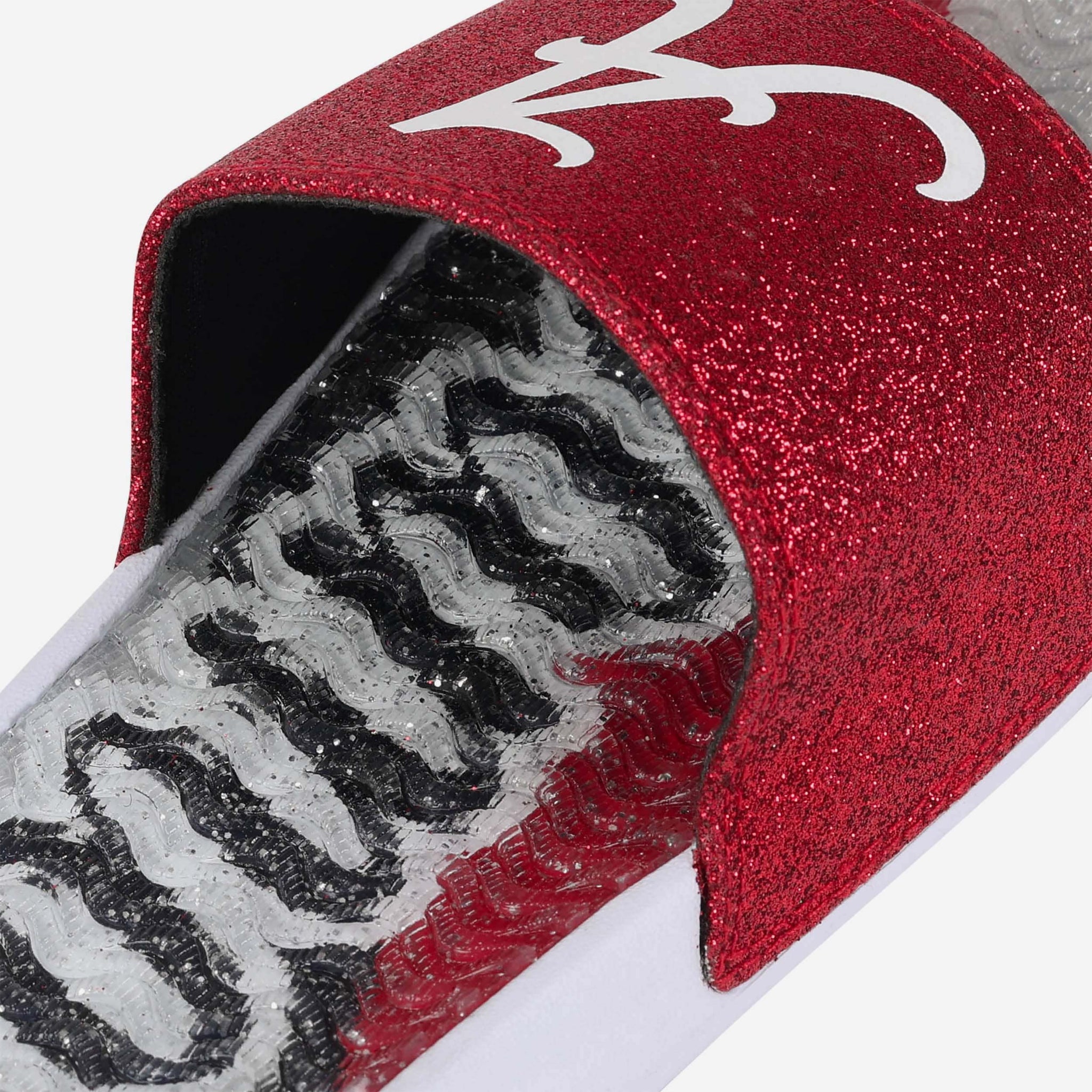 Fan footwear that will make you the pick of the glitter. Let your team spirit shine with every step in these Alabama Crimson Tide Women's Glitter Gel Slides!