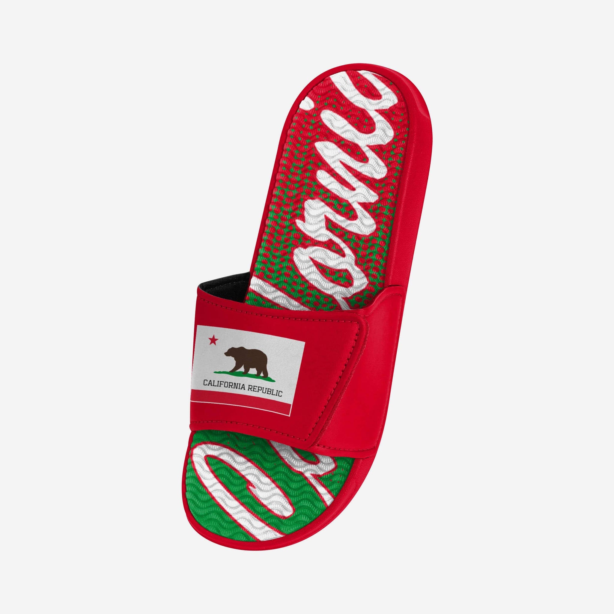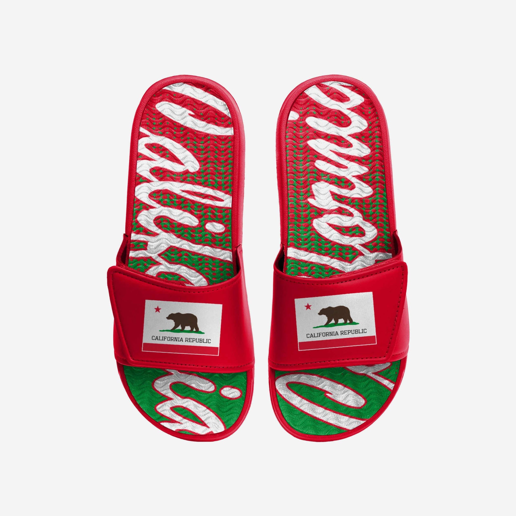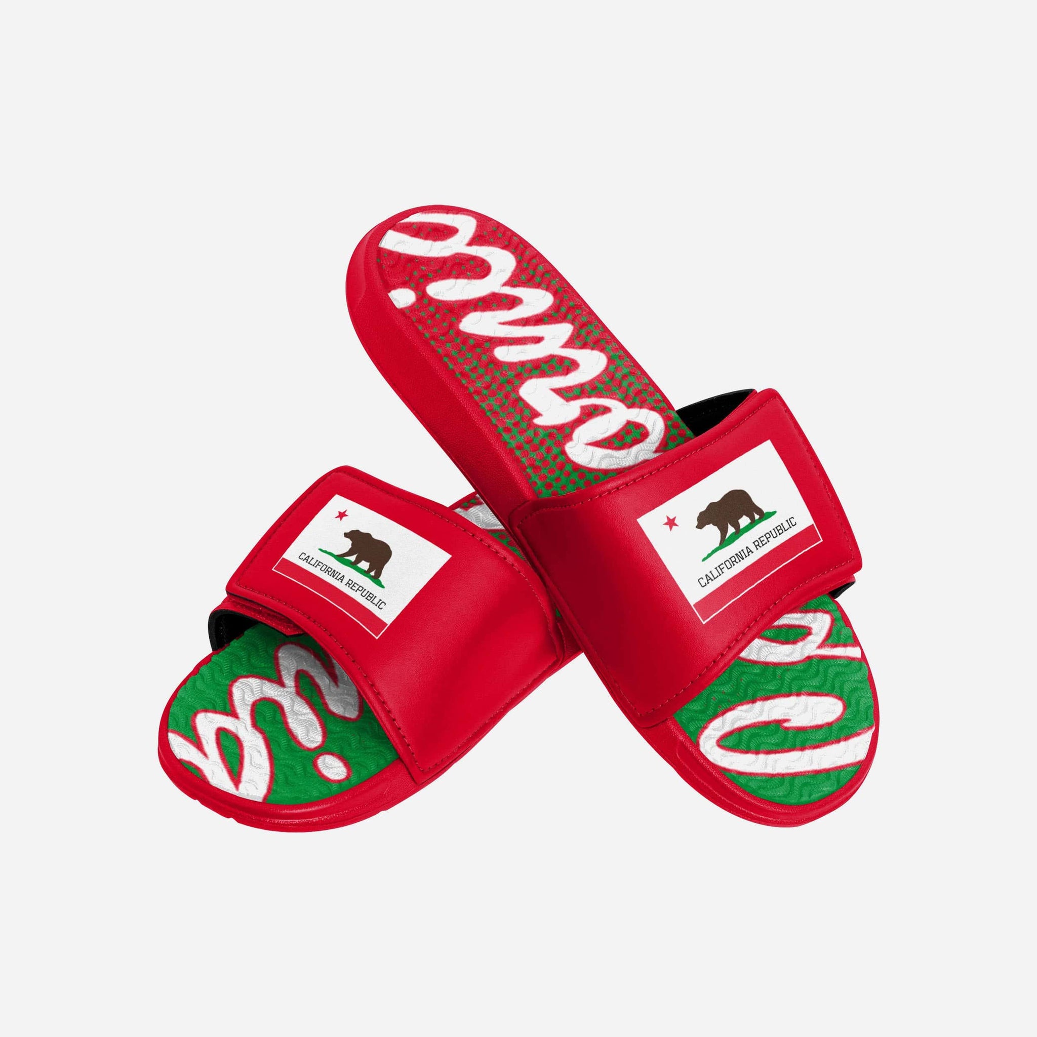 There are 50 states, but you know yours is the best. Make sure everyone else knows it too by repping your state with every step in these California Flag Gradient Wordmark Gel Slides!