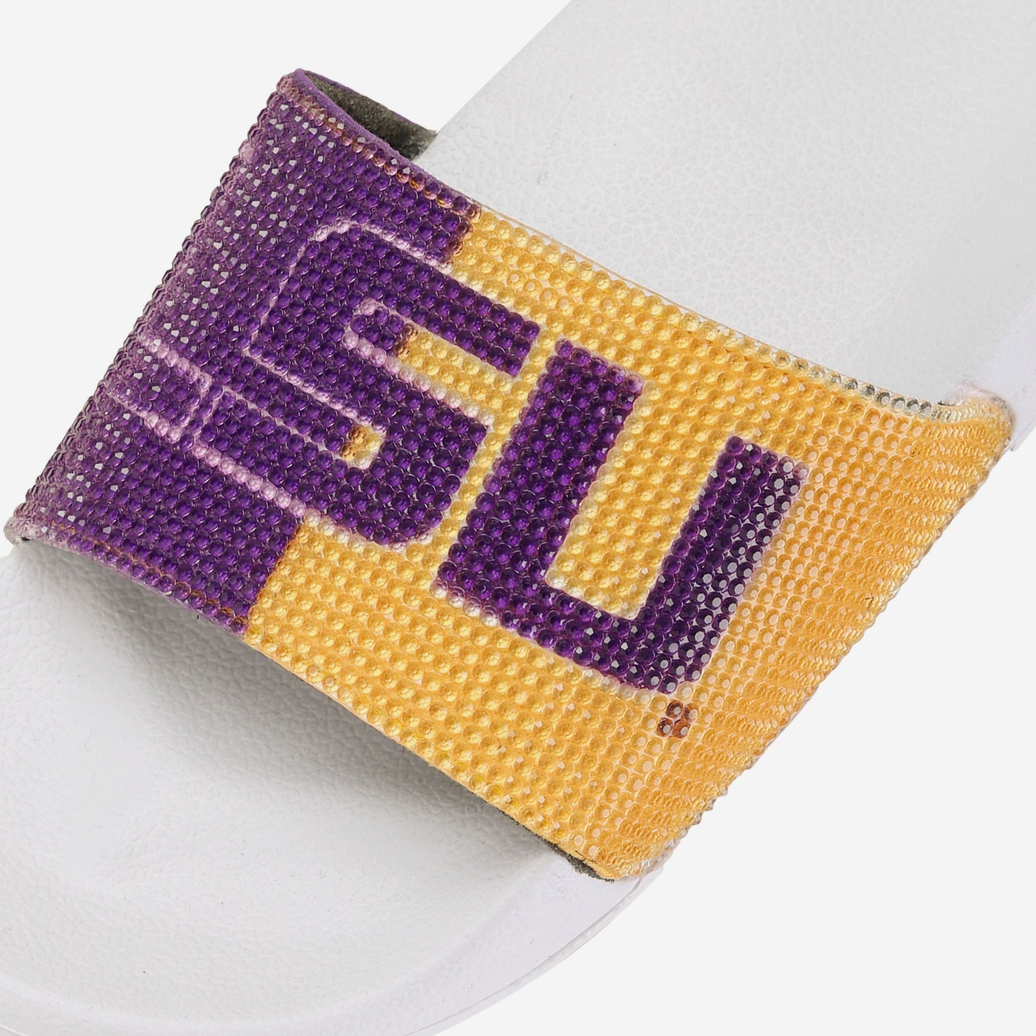 These LSU Tigers Women's Big Logo Shimmer Slides are the jewel of fresh fan footwear! Let your team spirit shine like a beacon of awesome!