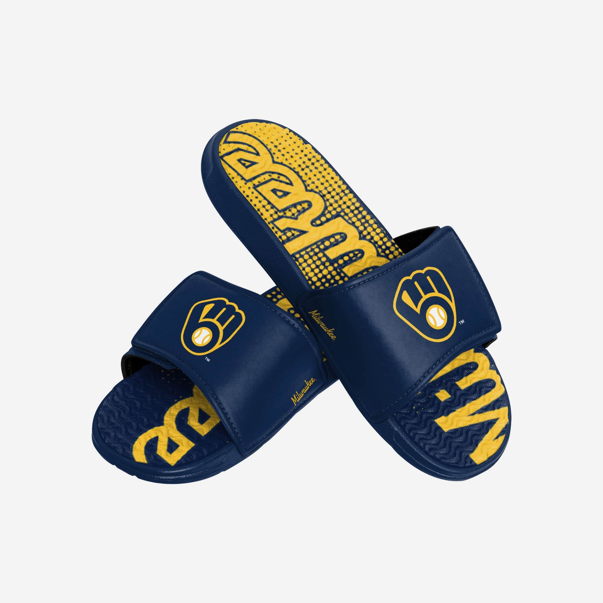 Milwaukee Brewers Gradient Wordmark Gel Slide FOCO S - FOCO.com