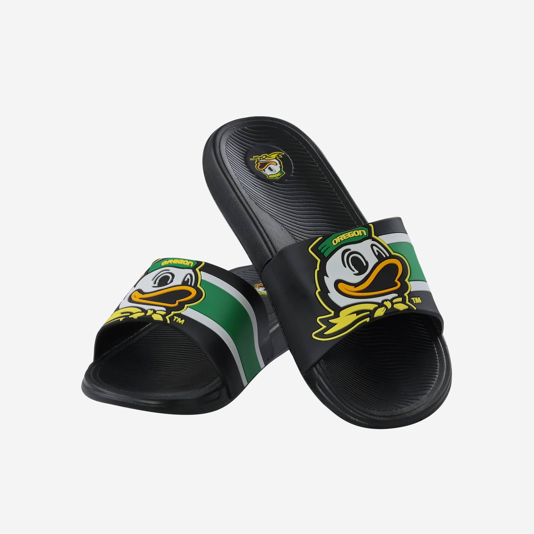 These Oregon Ducks Striped Big Logo Raised Slides give a whole new meaning to the idea of putting some pep in your step.