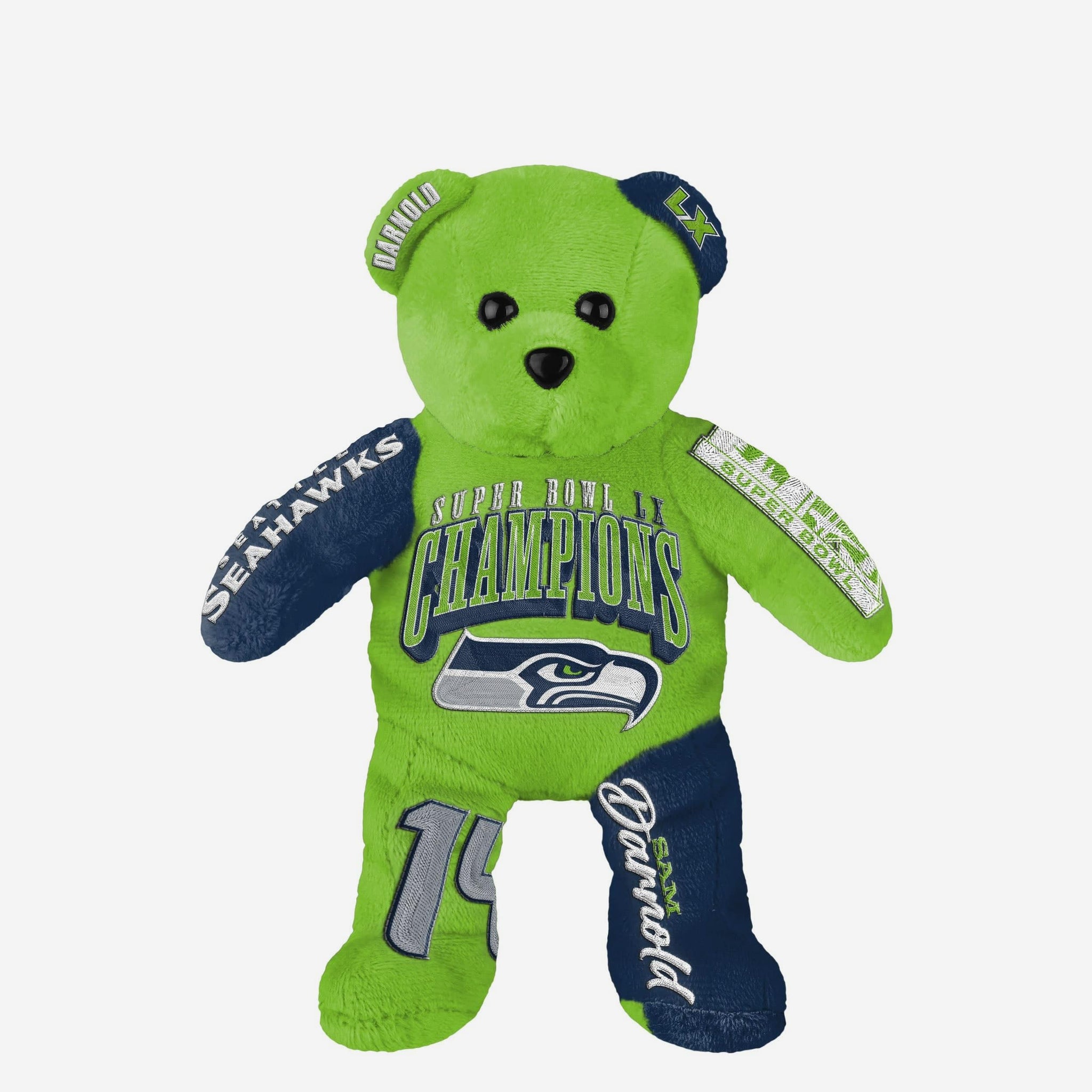 Cuddly. Cute. Super Bowl Champion! Kick off your celebration by cuddling up to this Sam Darnold Seattle Seahawks Super Bowl LX Champions Team Beans Embroidered Player Bear.