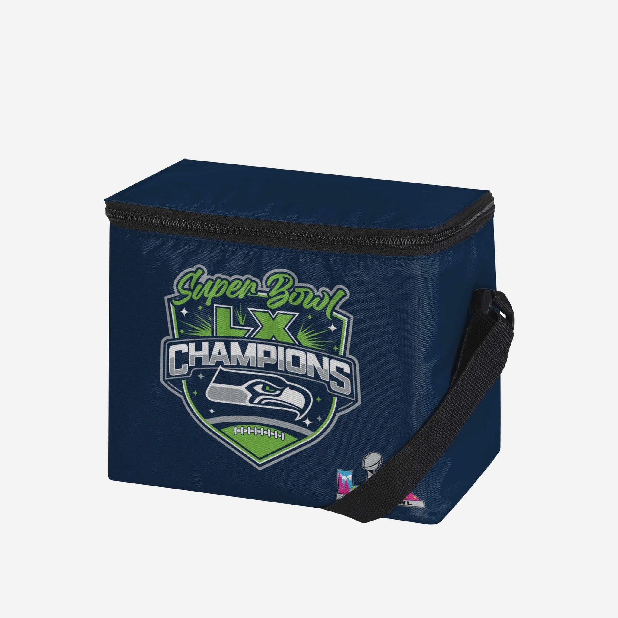 Tailgates. The beach. Road trips. No matter where you go, take your fandom (and your beverages) along for the ride with the Seattle Seahawks Super Bowl LX Champions 6 Pack Cooler.