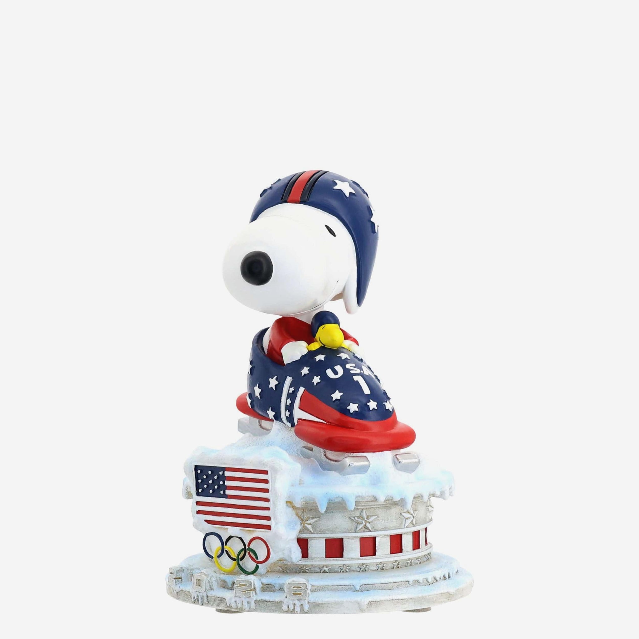 Bring Olympic spirit and Peanuts charm together with this Team USA Snoopy & Woodstock Peanuts Bobsled Mini Bobblehead Scene, featuring the beloved duo racing toward gold in red, white, and blue style.