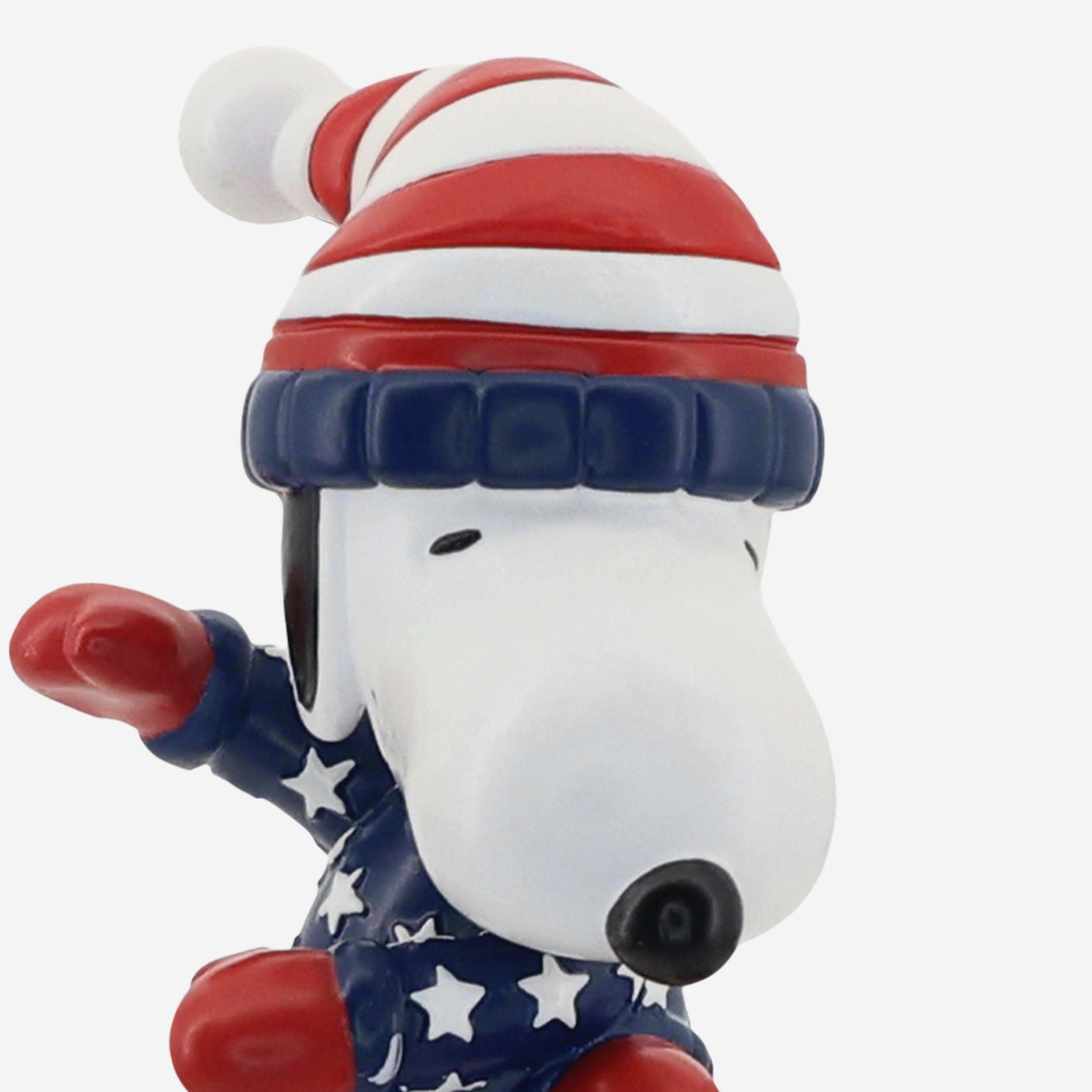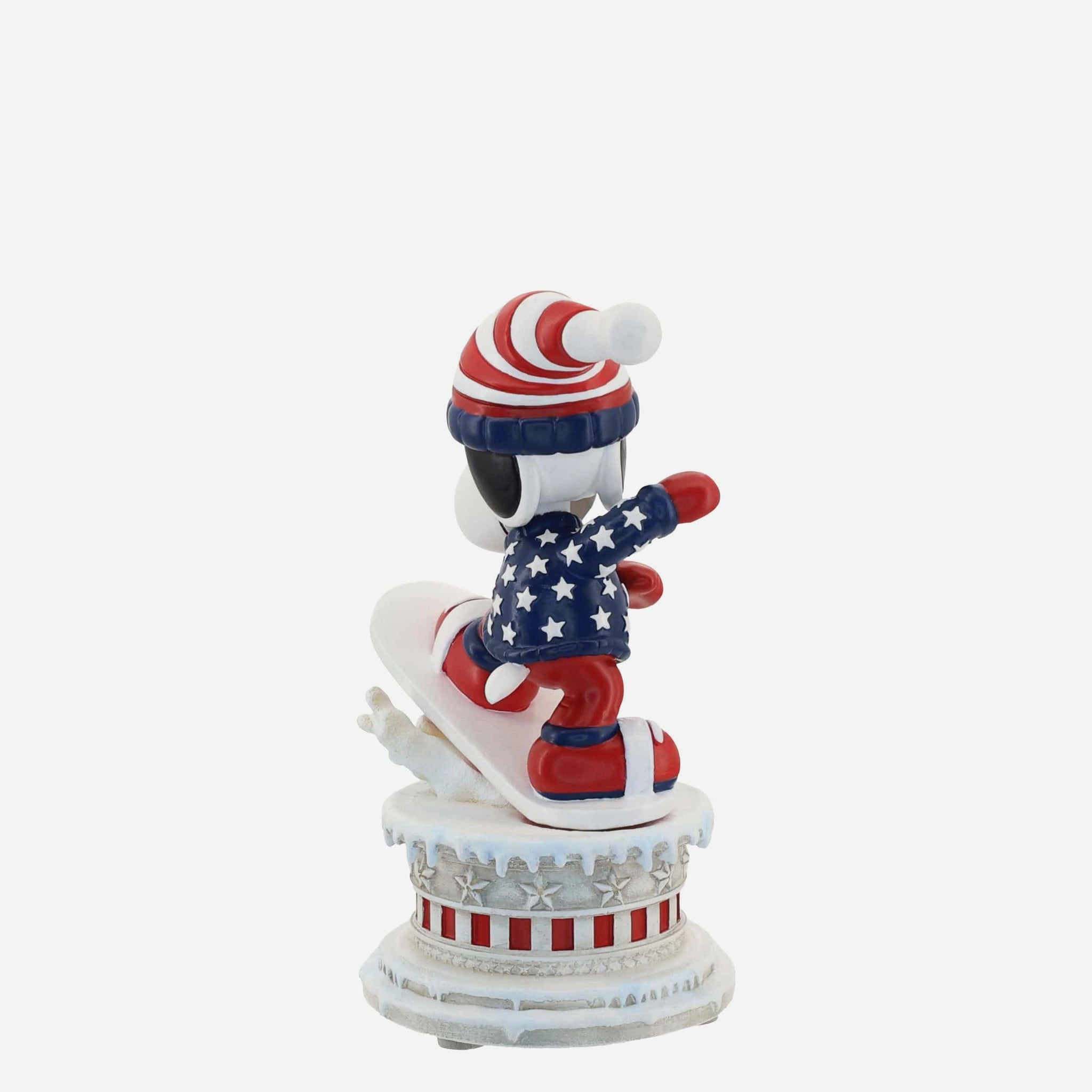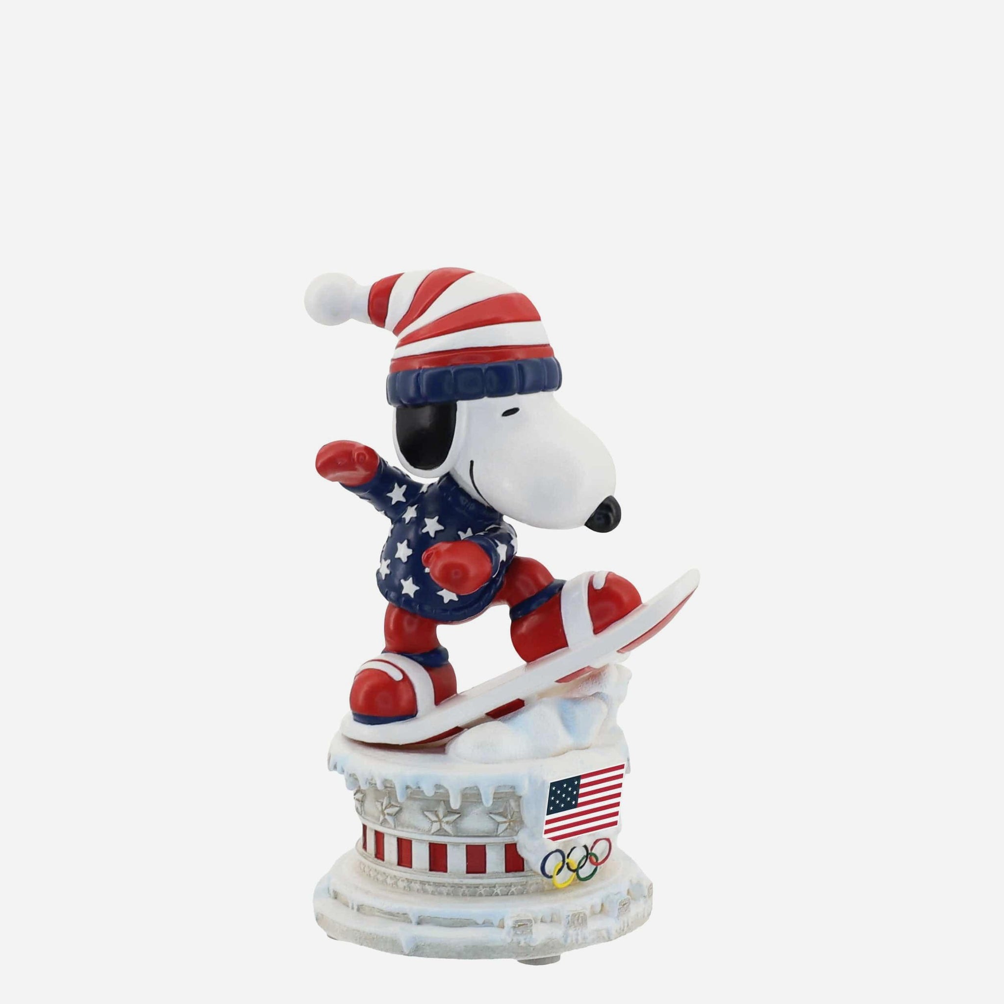 Hit the slopes in red, white, and blue style with this Team USA Snoopy Peanuts Snowboarding Mini Bobblehead, capturing Snoopy mid-ride with Olympic-inspired flair.