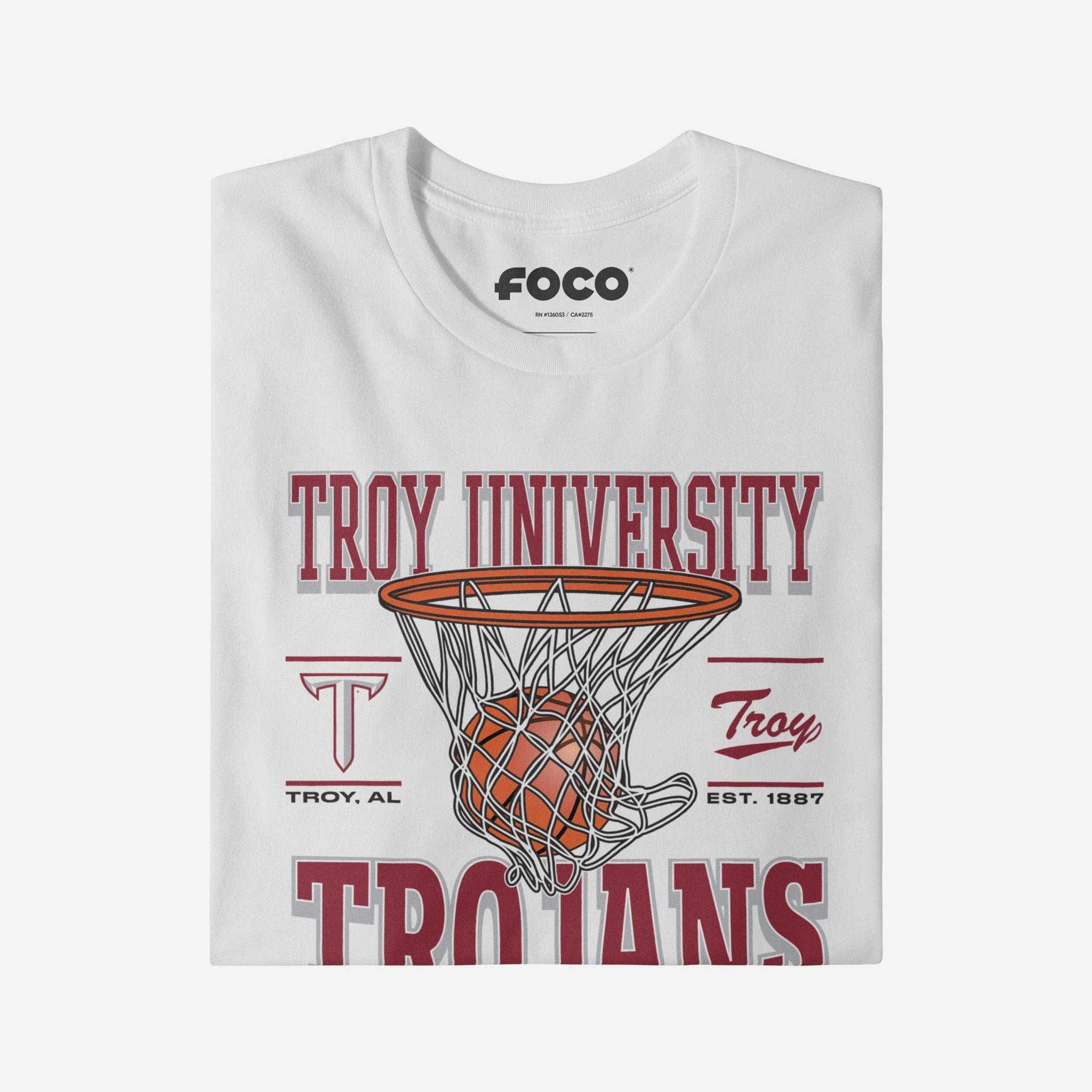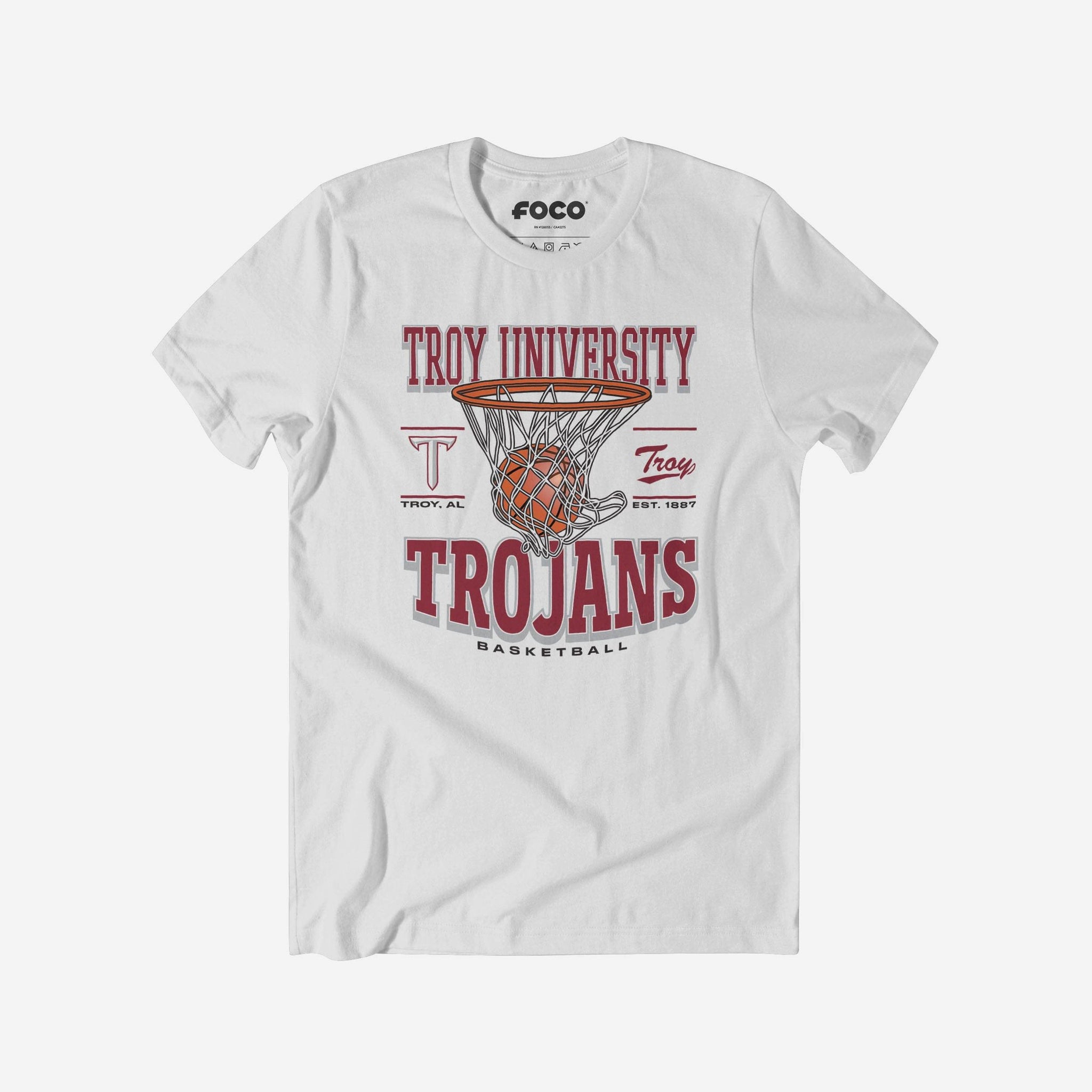 This top features a design that showcases your all-important team colors, a team logo display, a team wordmark name display, year of team establishment, and a basketball swishing through a net display meaning this t-shirt will prove your unmatched dedication to the Troy Trojans when you're at the game or watching at home. In other words, this graphic tee is about to be your new favorite teammate.