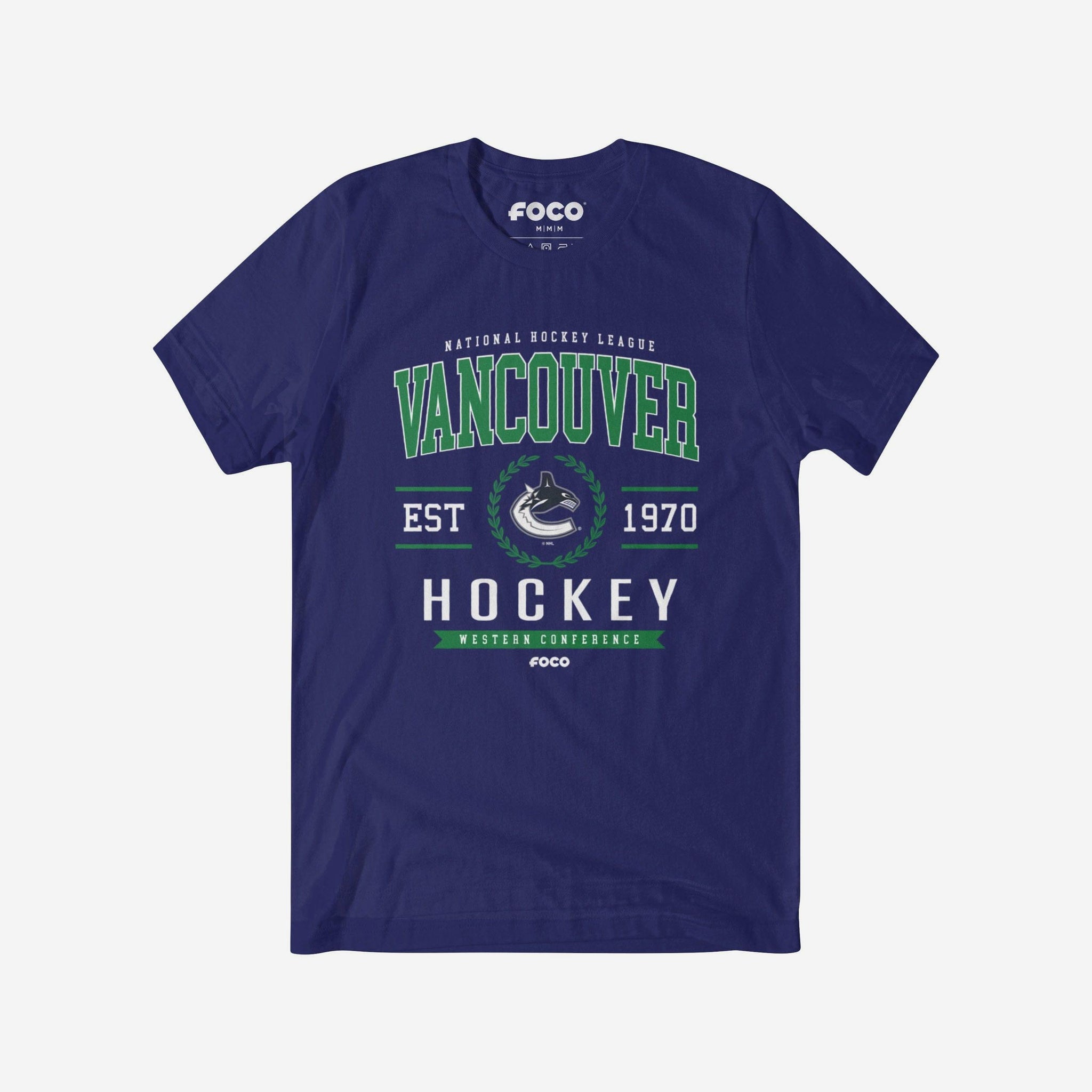 Vancouver Canucks Hockey Legacy Crest T-Shirt FOCO Team Navy S - FOCO.com