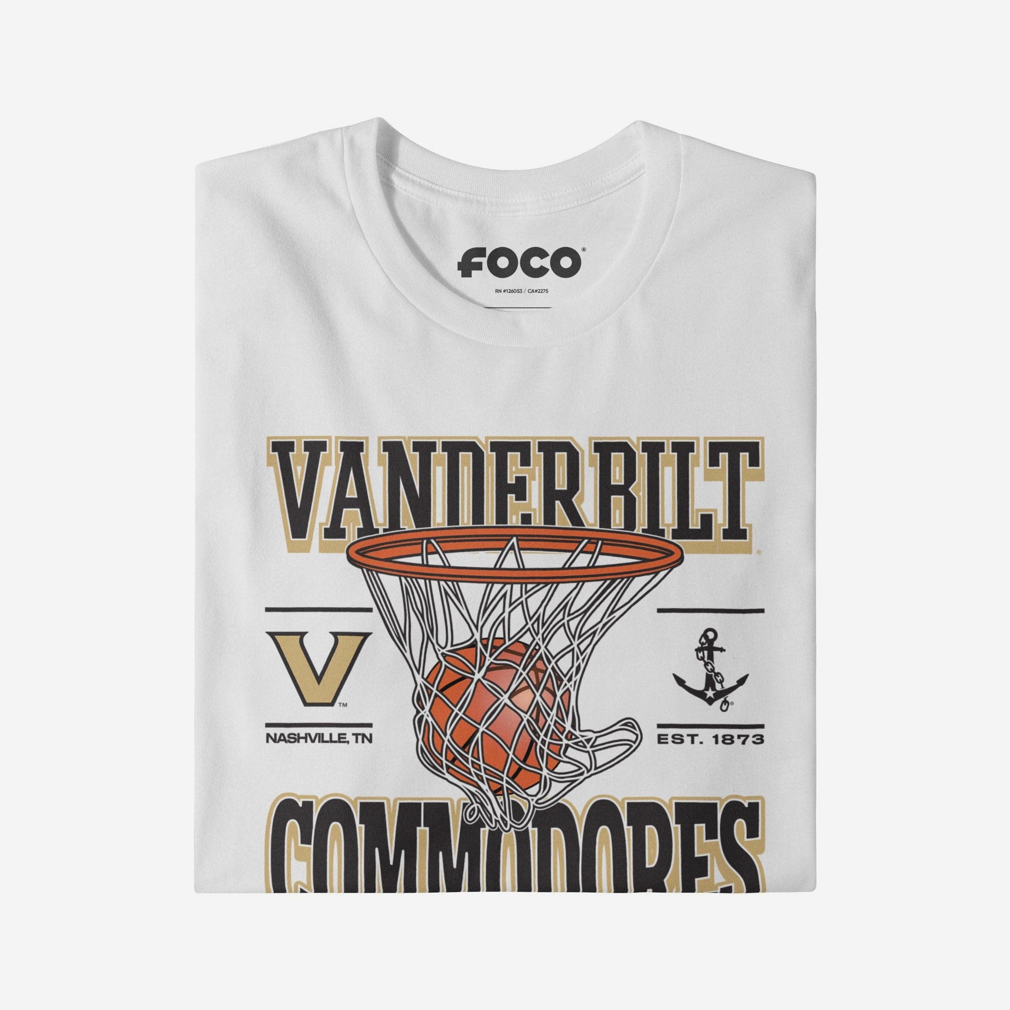 This top features a design that showcases your all-important team colors, a team logo display, a team wordmark name display, year of team establishment, and a basketball swishing through a net display meaning this t-shirt will prove your unmatched dedication to the Vanderbilt Commodores when you're at the game or watching at home. In other words, this graphic tee is about to be your new favorite teammate.