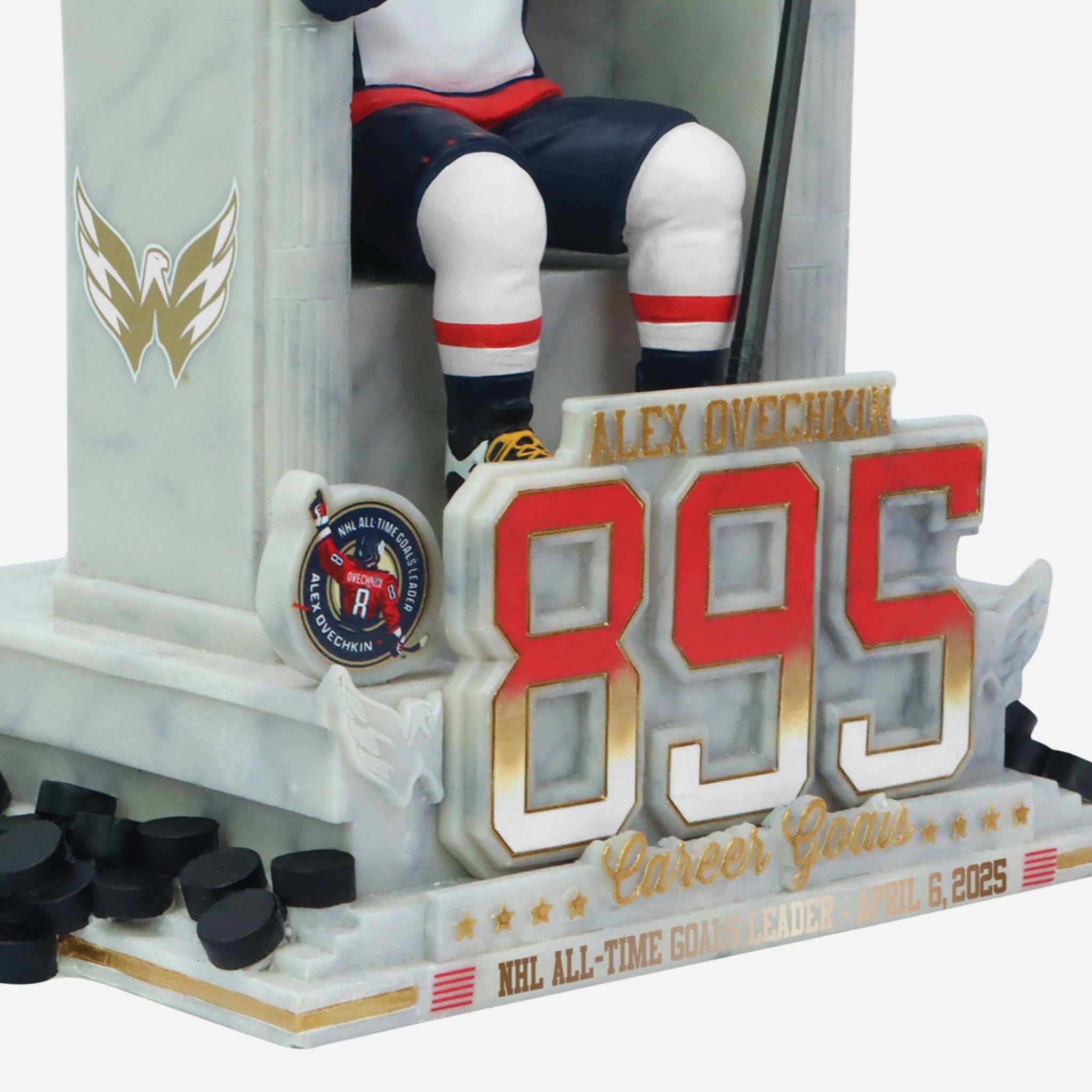 • Portrays Ovechkin in a seated pose inspired by the Lincoln Memorial, cementing his place as a hockey legend