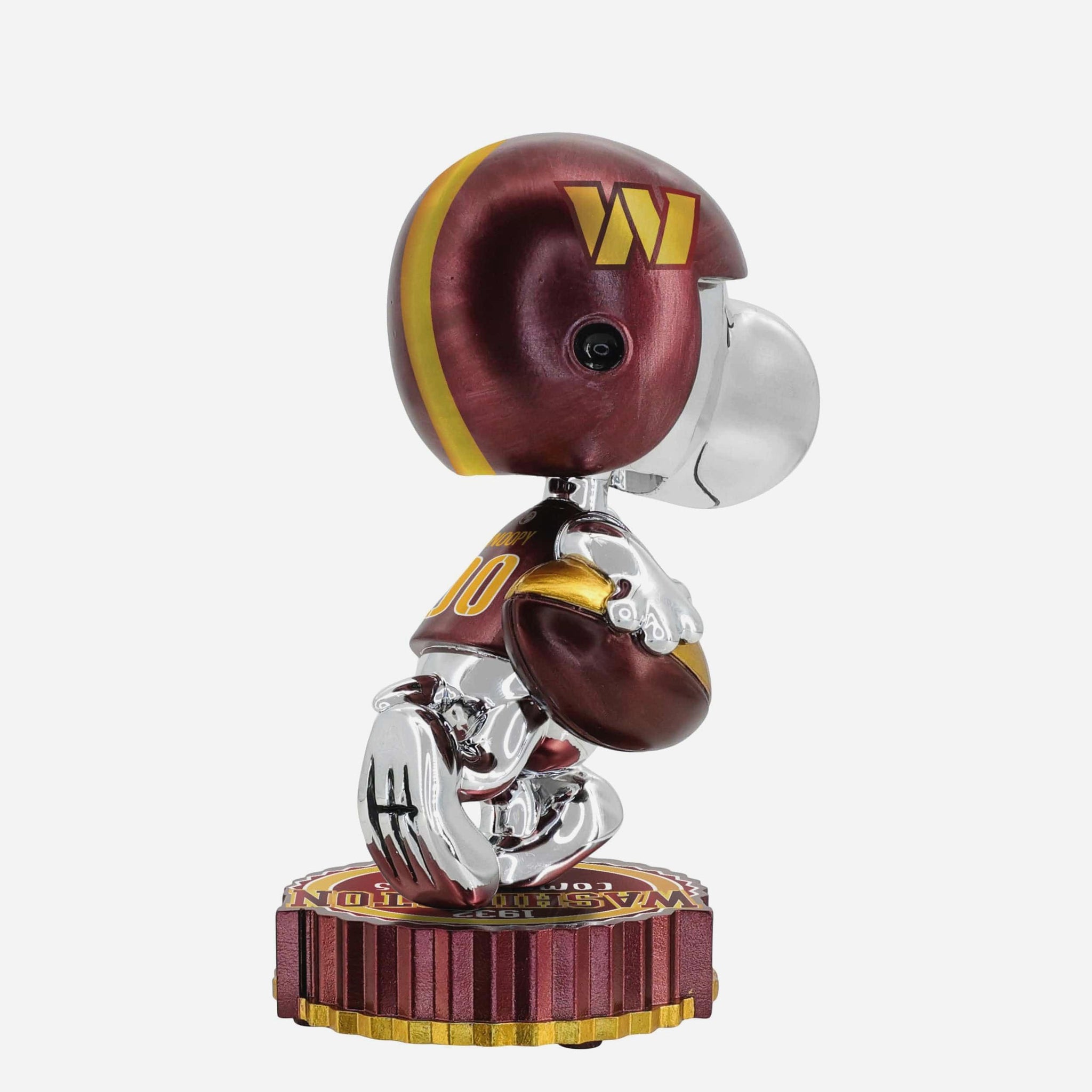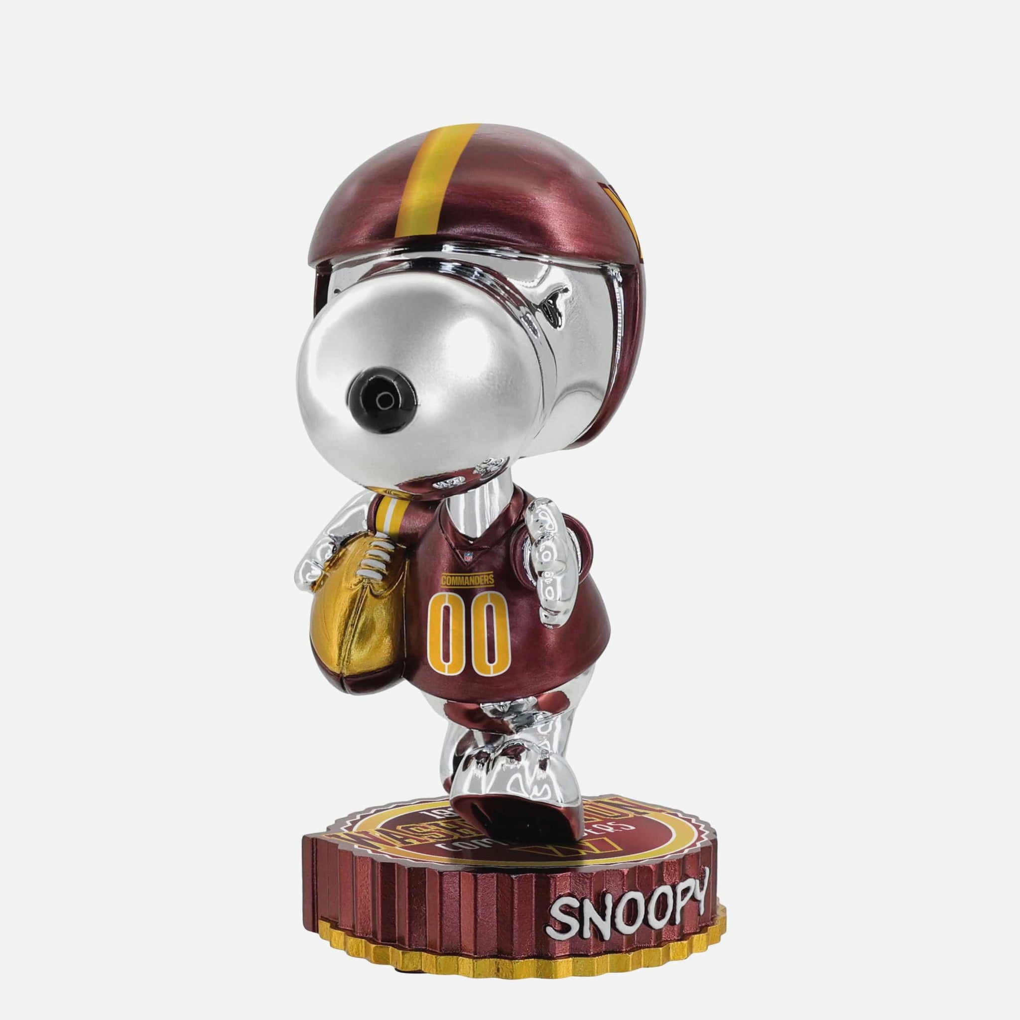 Snoopy is suiting up for game day in dazzling style! Add a little gridiron glow to your collection with this Washington Commanders 2025 Snoopy Electroplated Medium Bighead Bobblehead.