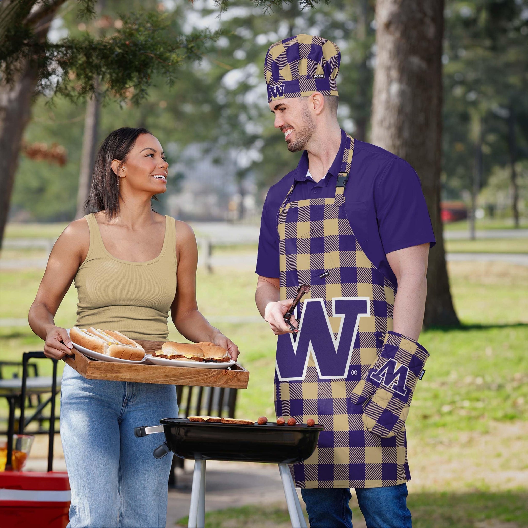 Get ready to serve up the best food in the greatest fan fit. From the kitchen, to the table, to game day, do it all in style with the Washington Huskies Plaid Chef Set.