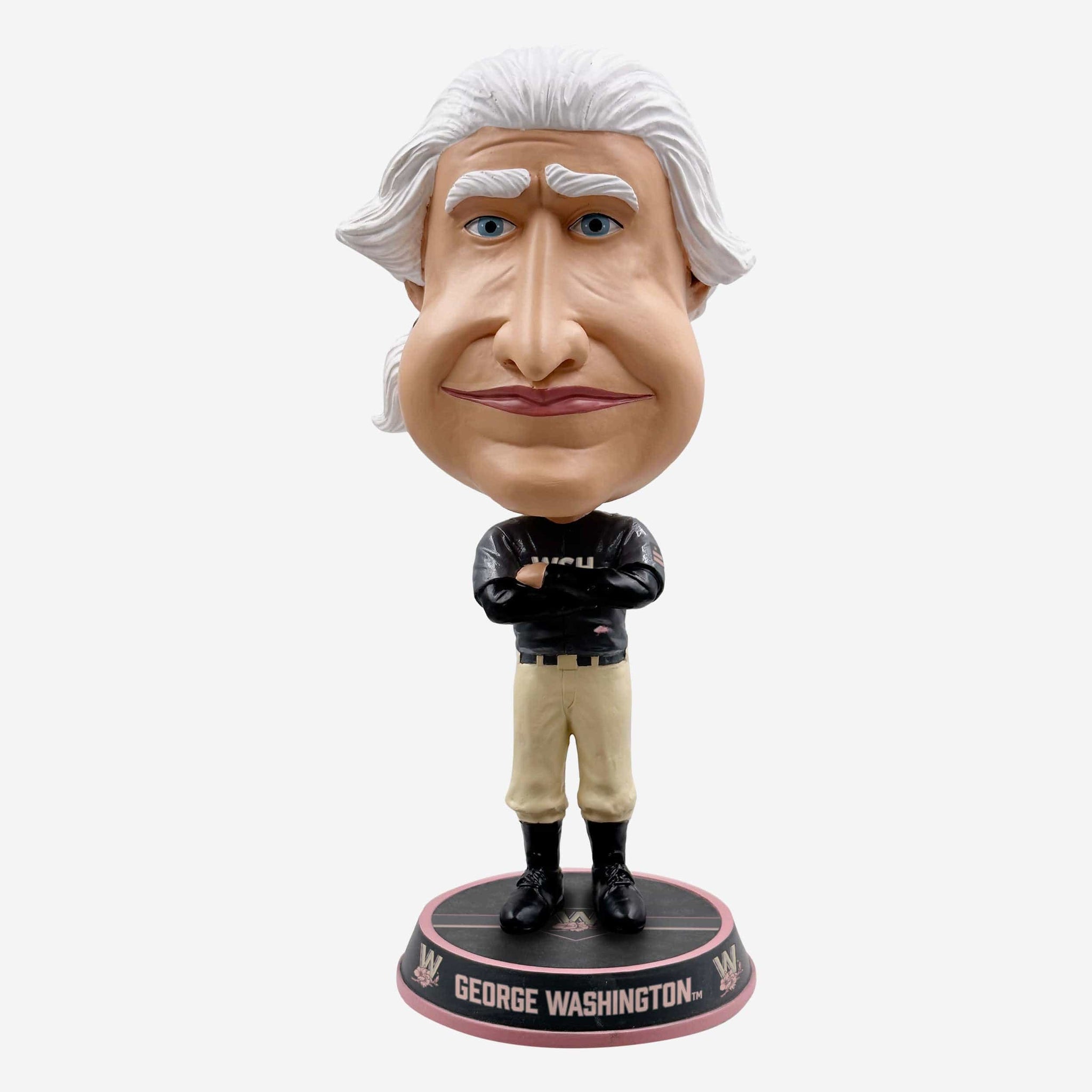 America’s first president is also determined to come in first in this presidential race. Speed to the finish line with the George Washington Washington Nationals 2023 City Connect Field Stripe Mascot Bighead Bobblehead.