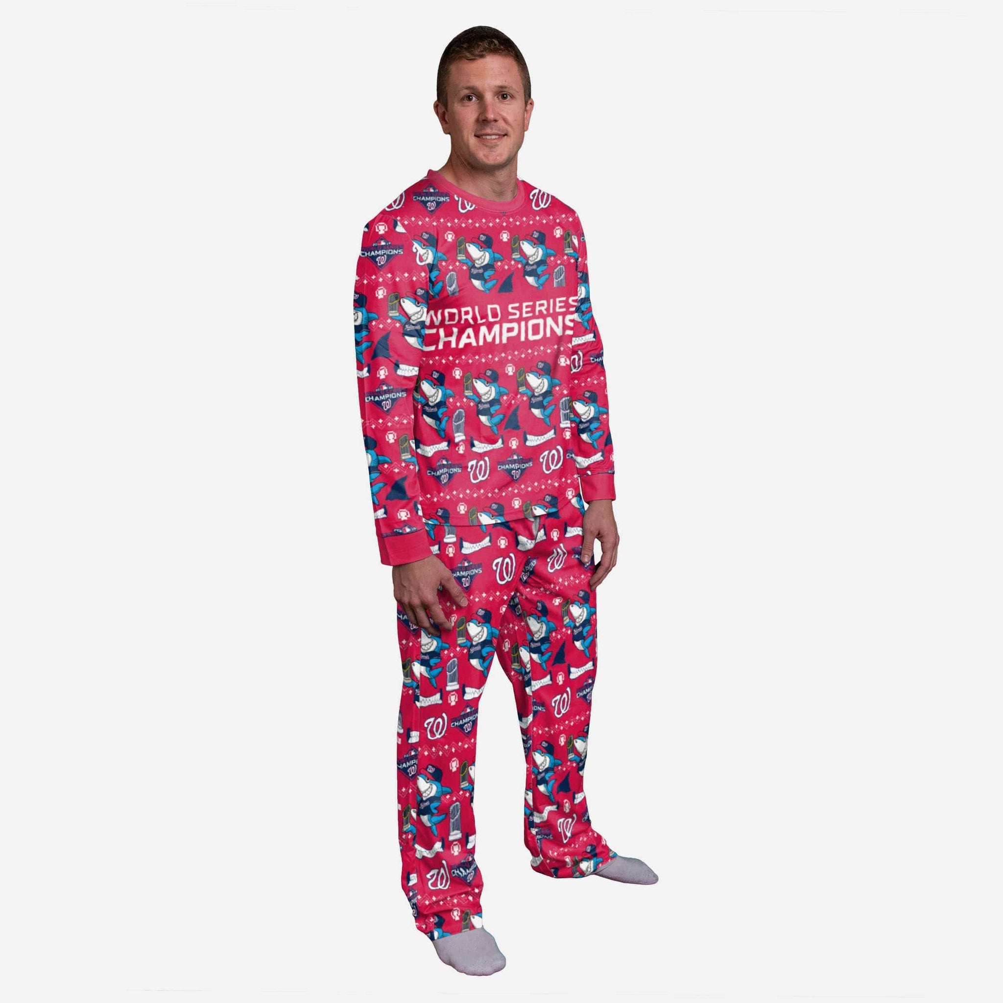 Get some matching family pajamas to turn your good night's sleep into a champion night's sleep. You won't want to miss these championship pajamas. These PJ's are comfortable and show off your champ spirit in the form of some sweet jammies. Introducing Washington Nationals 2019 World Series Champions Shark Pajamas. Don't forget to take your holiday photo with the whole family wearing matching Christmas pajamas.