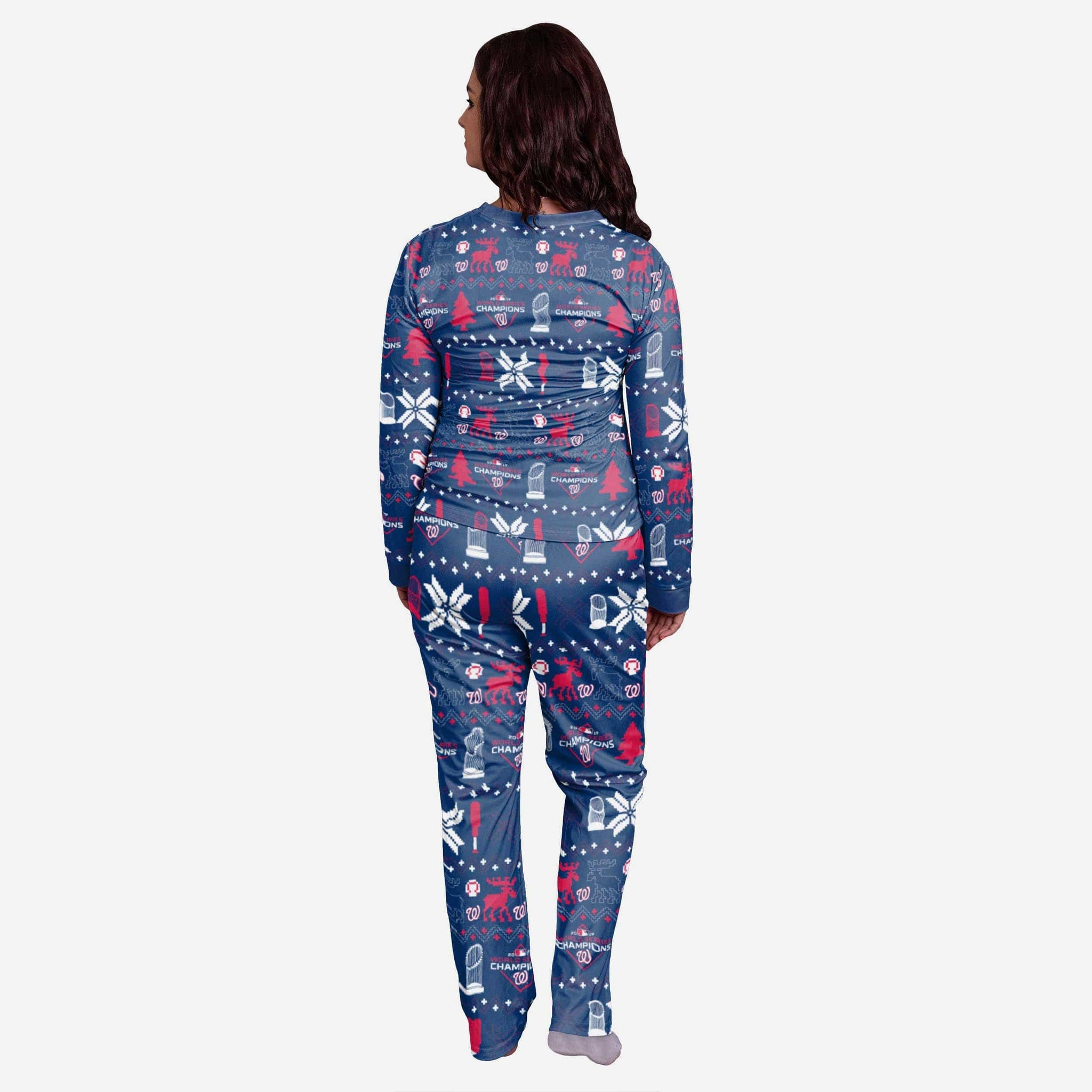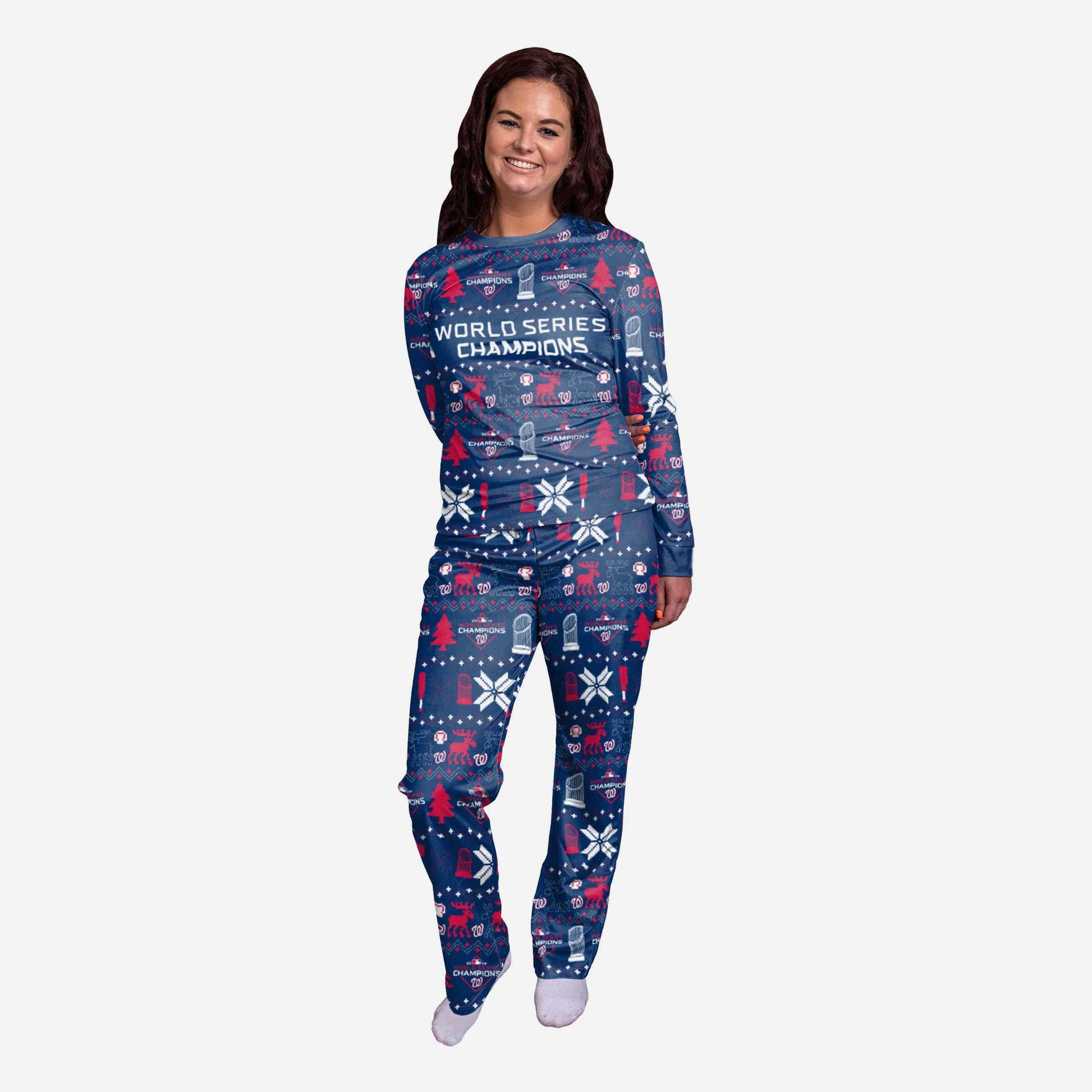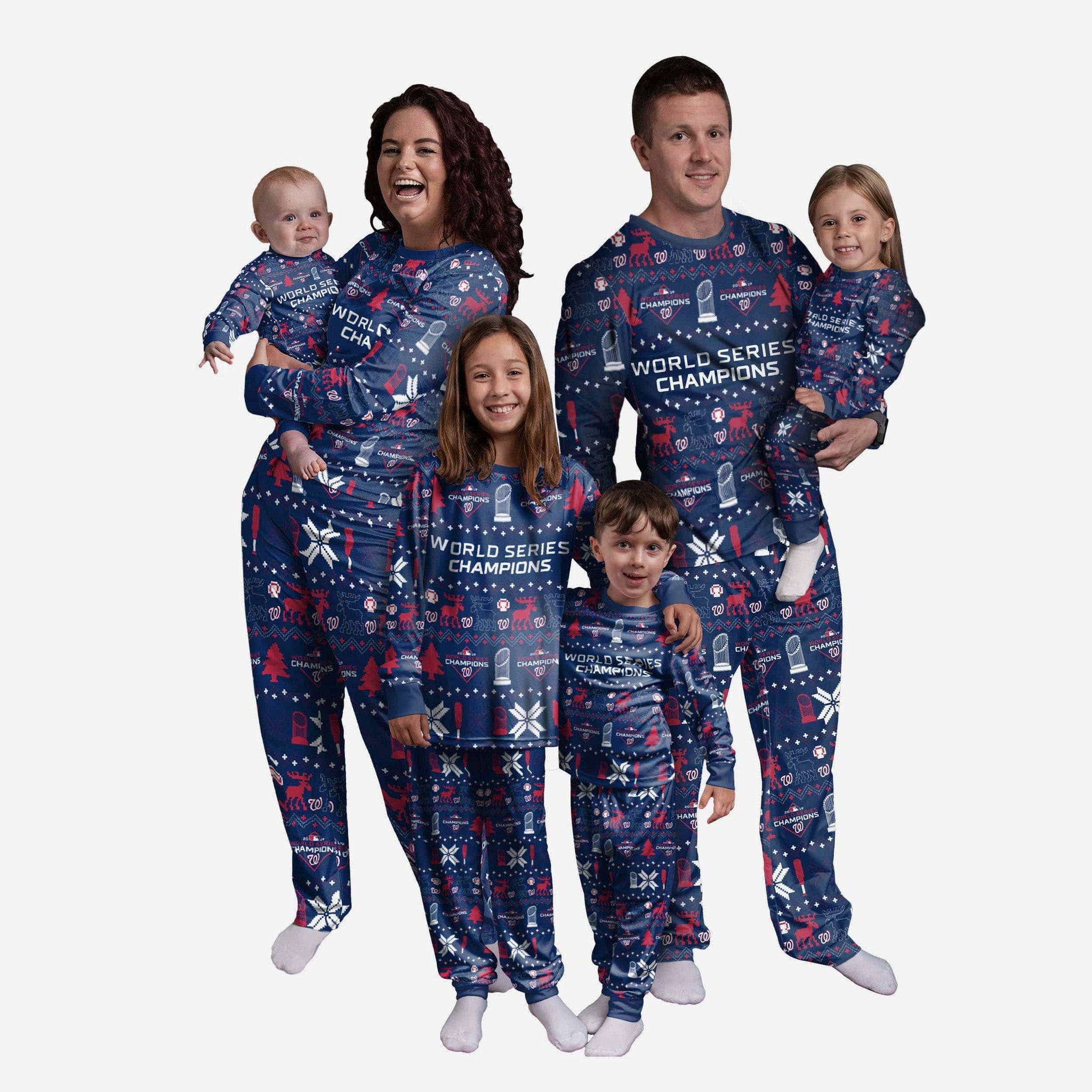 Get some matching family pajamas to turn your good night's sleep into a champion night's sleep. You won't want to miss these women's team pajamas. These women's PJ's are comfortable and show off your champ spirit in the form of some sweet women's jammies. Introducing Washington Nationals 2019 World Series Champions Women's Family Holiday Pajamas. Don't forget to take your holiday photo with the family wearing matching Christmas pajamas.