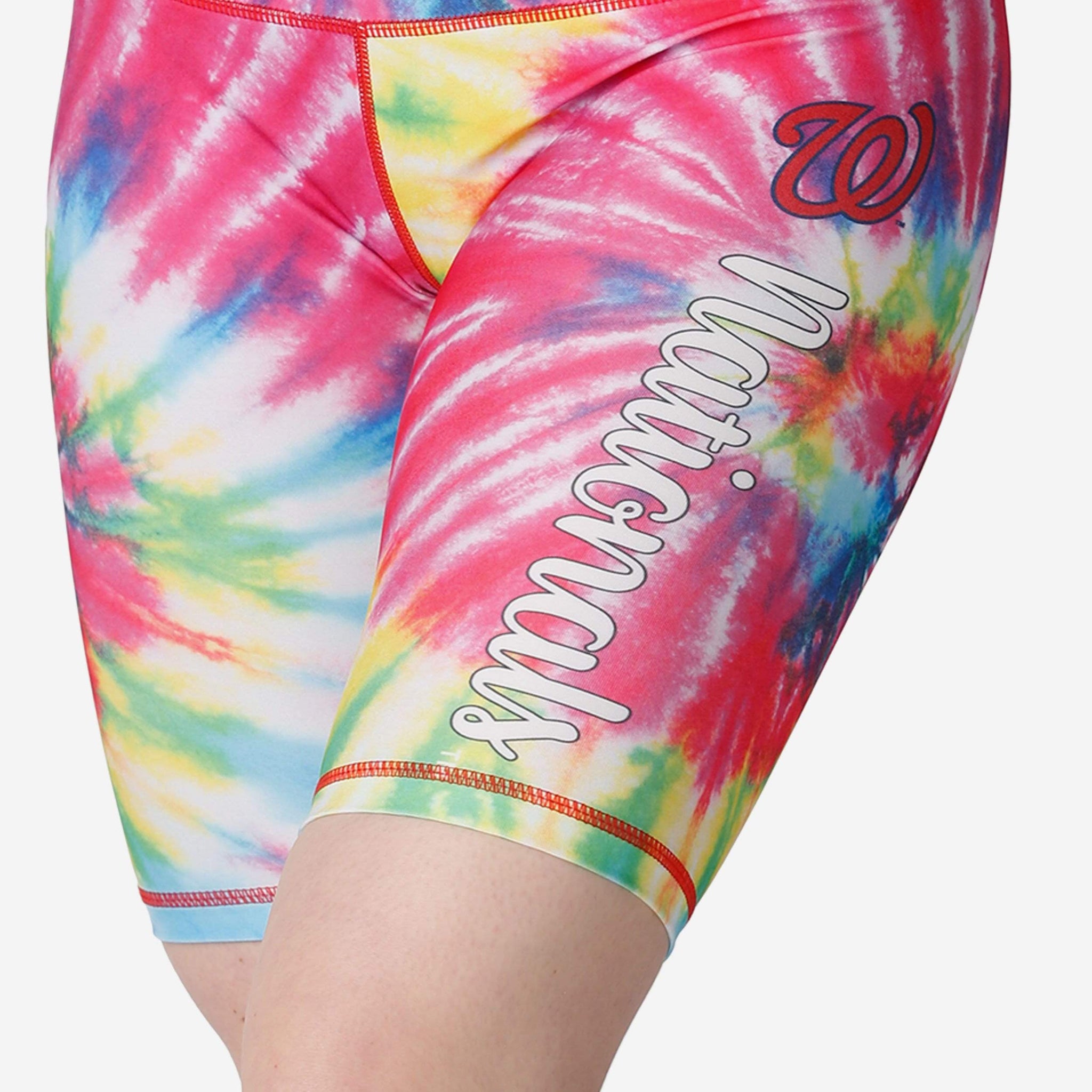 It's tie dye time! Work out your team spirit in these Washington Nationals Women's Tie-Dye Bike Shorts!