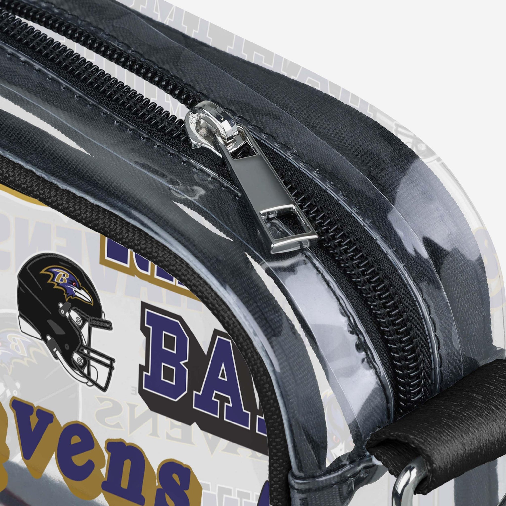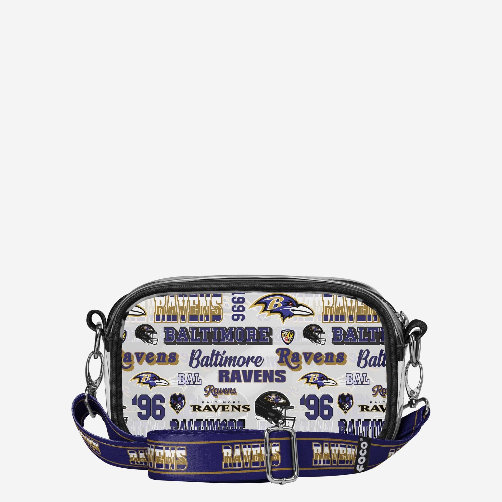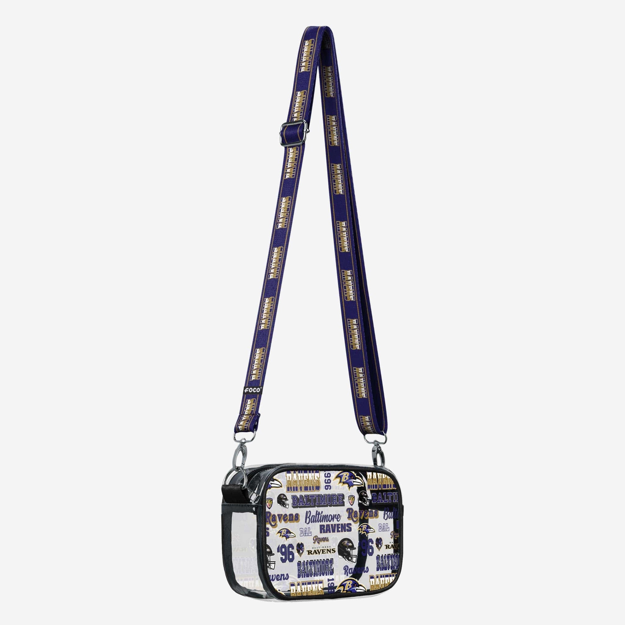 Over your shoulder and off to the game. Whether you're running errands on the town or running the tailgate in the parking lot, this Baltimore Ravens Repeat Retro Print Clear Crossbody Bag is the perfect way to carry the team like never before.