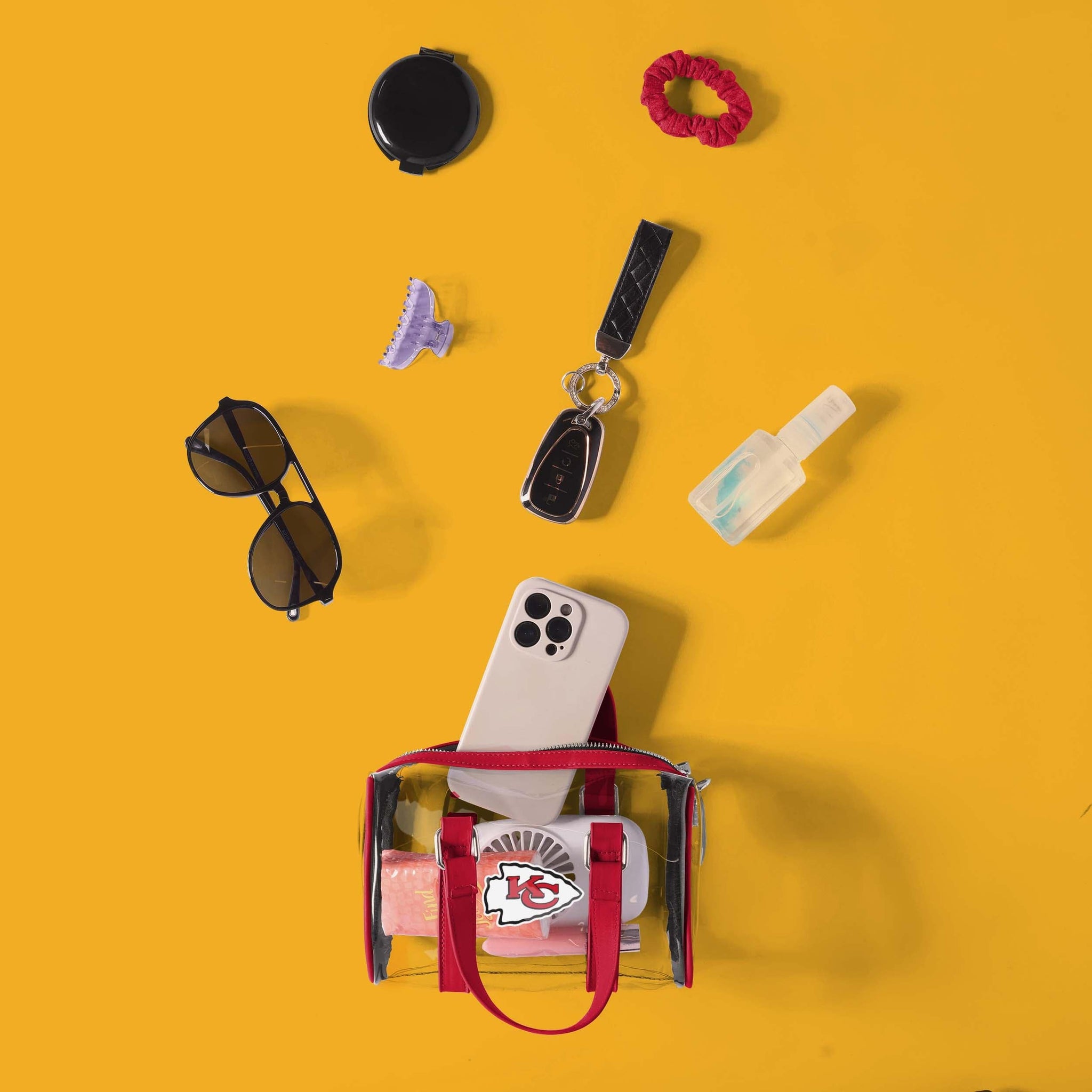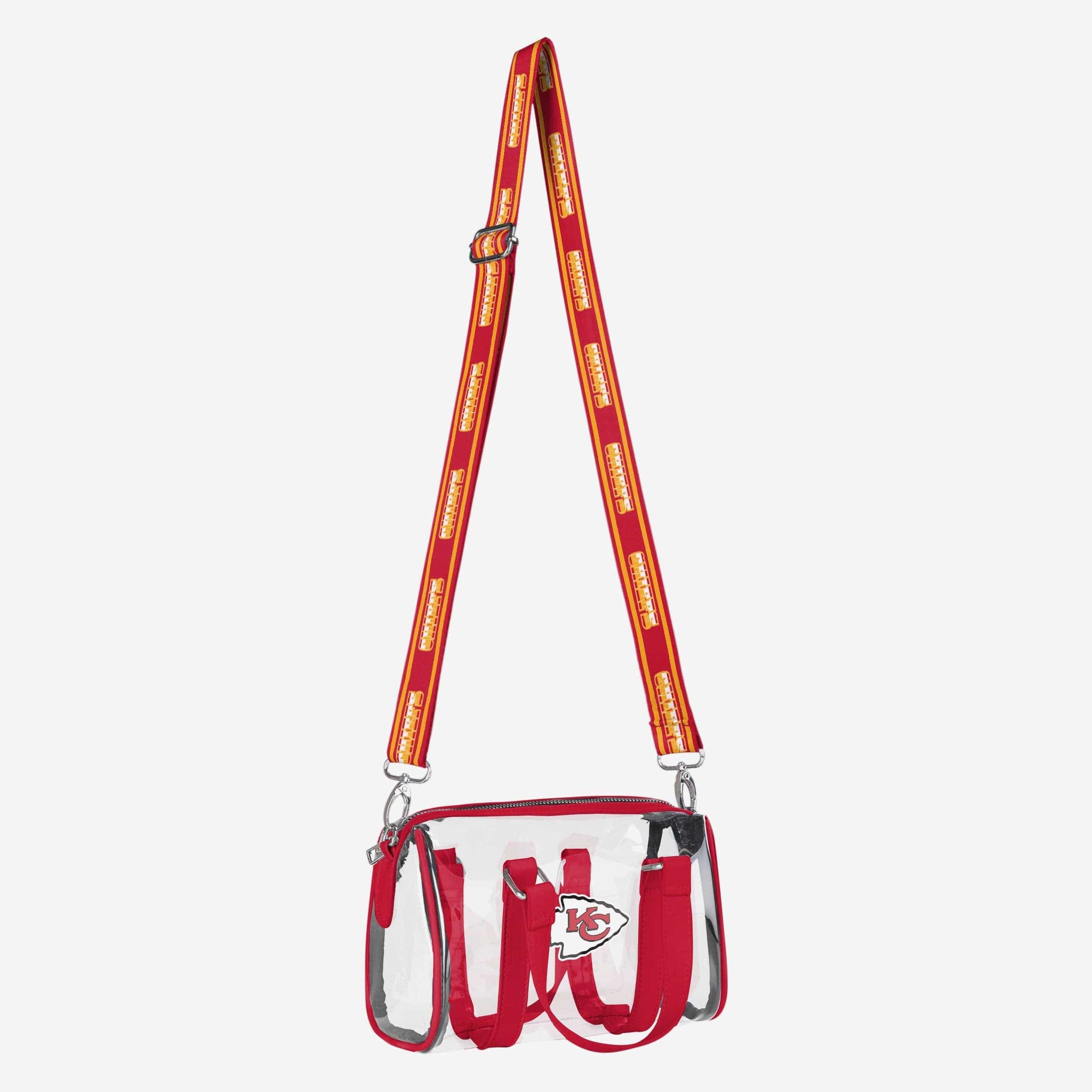 This bag holds your gameday essentials and a barrel of team fandom! Carry it clearly all on the go with the Kansas City Chiefs Clear Barrel Bag.